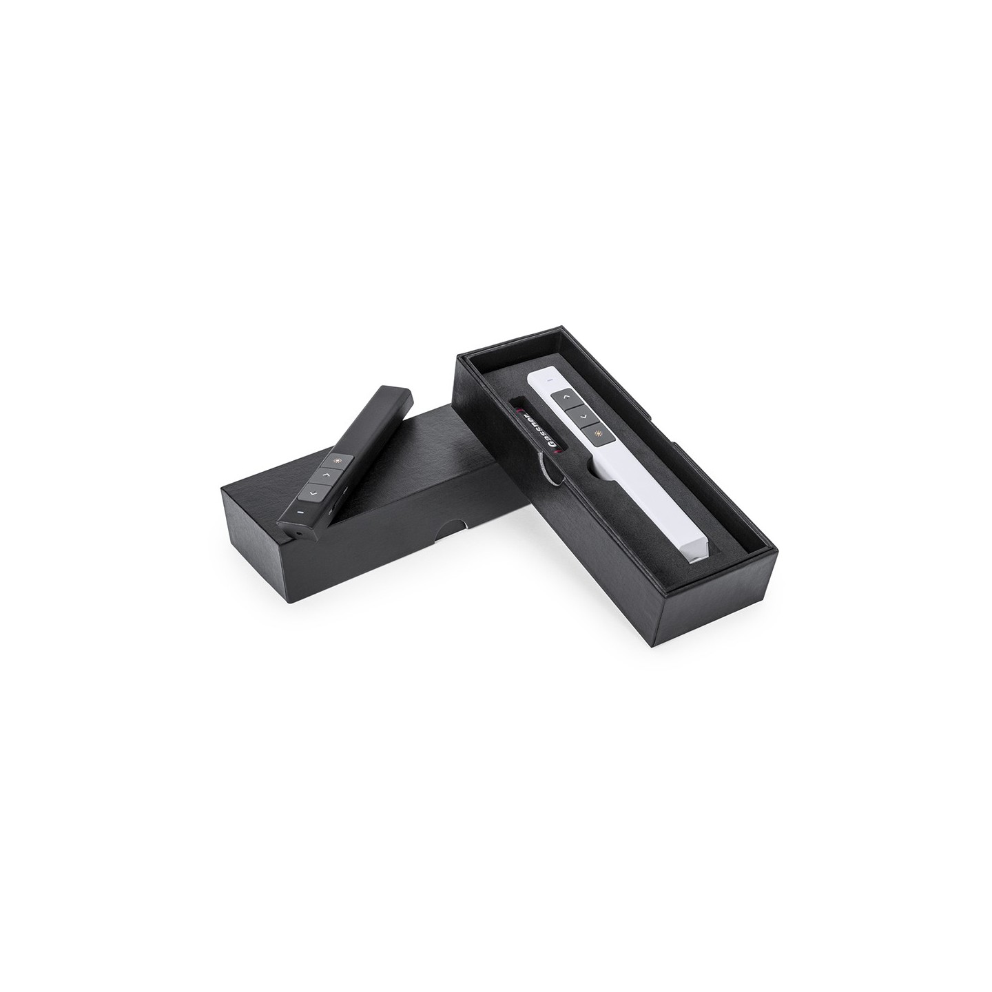 El Puntero Láser Haslam es elegante y funcional con pulsadores de activación, presentado en estuche de cartón negro. Ideal para presentaciones.