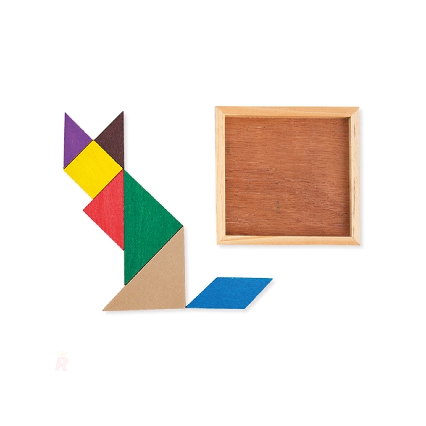 Rompecabezas clásico Tangram con 7 piezas de madera. Ideal para desarrollar creatividad, resolver problemas y explorar figuras geométricas
