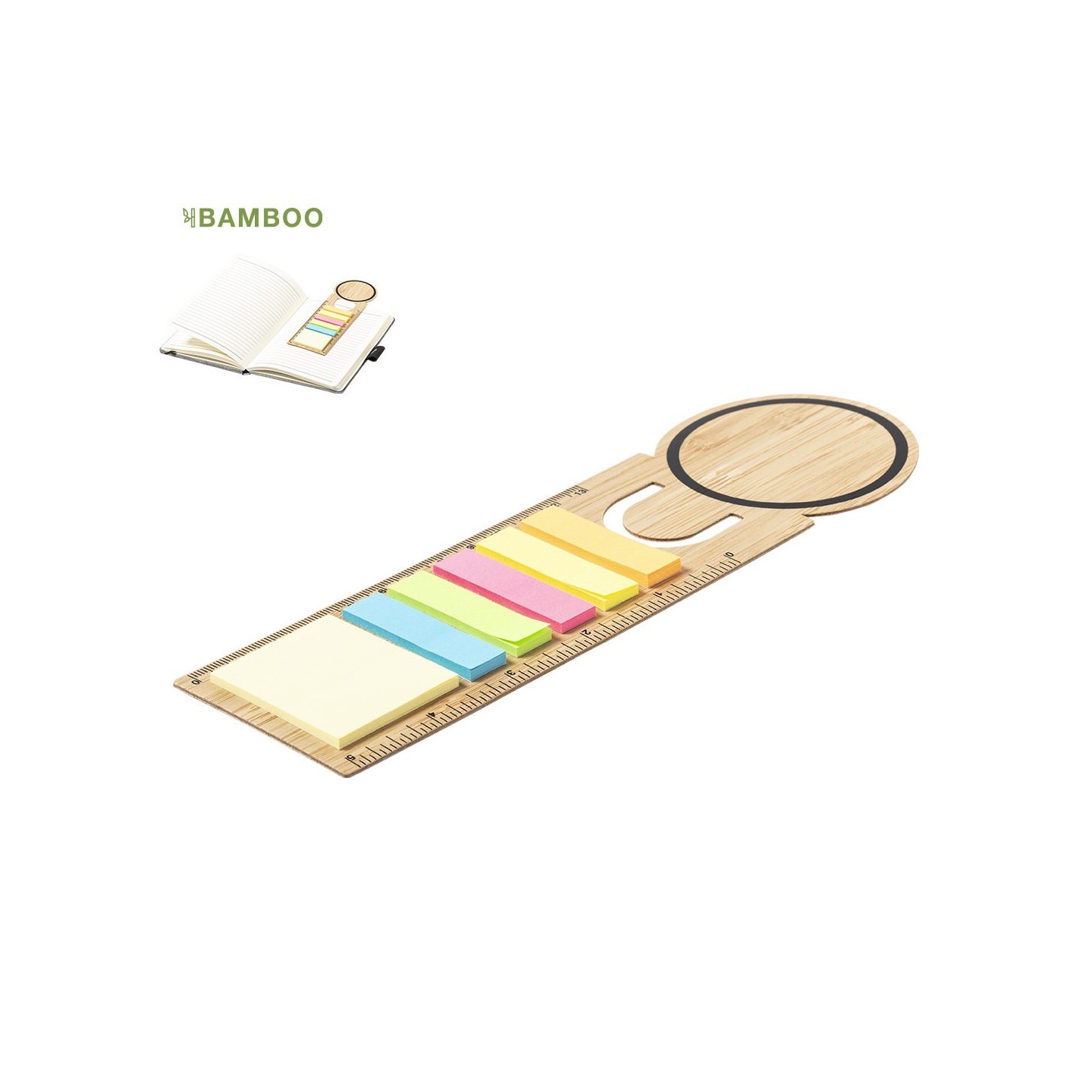 La Regla Marcapáginas Tecin es sostenible y funcional en bambú. Incluye notas adhesivas. Regalo personalizado ideal para empresas.