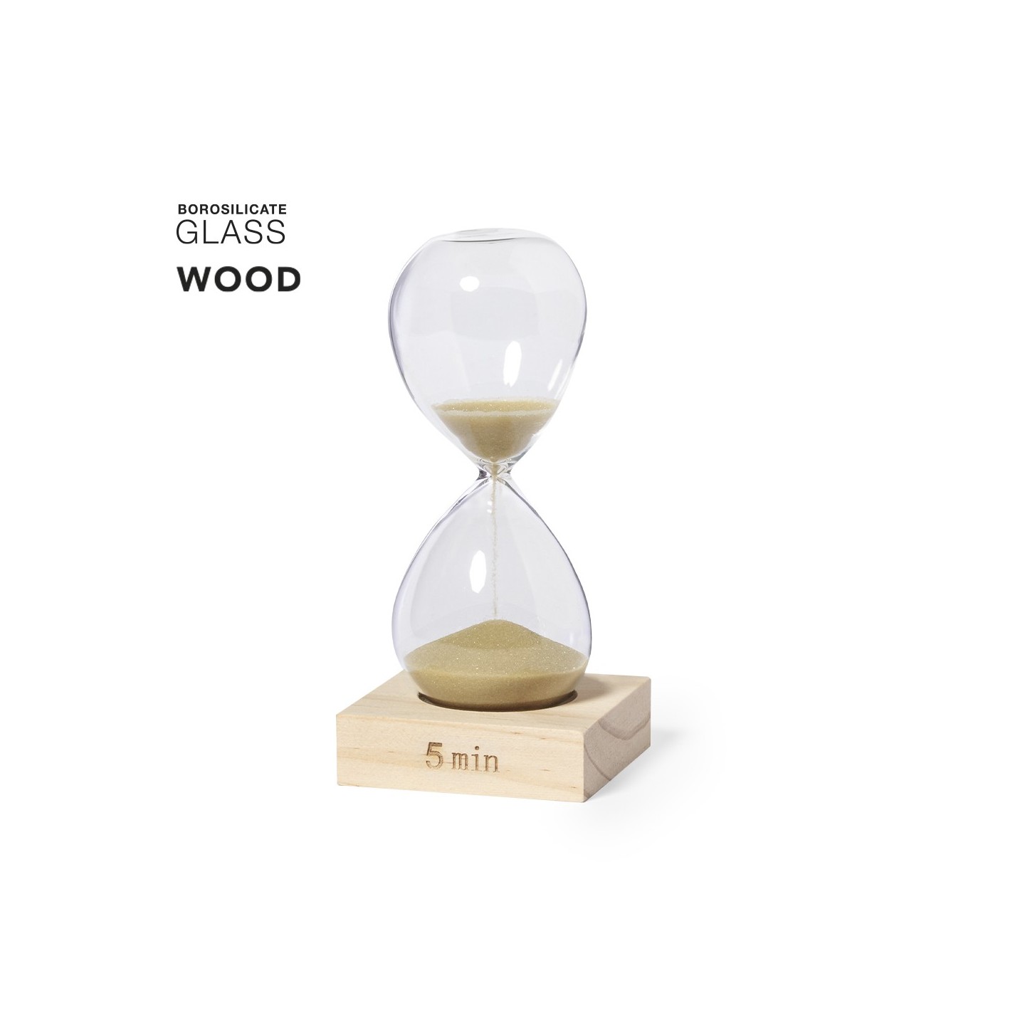 El Reloj de arena Faran es de duradero cristal de borosilicato y base en madera natural, un gadget decorativo y funcional para medir 5 minutos.