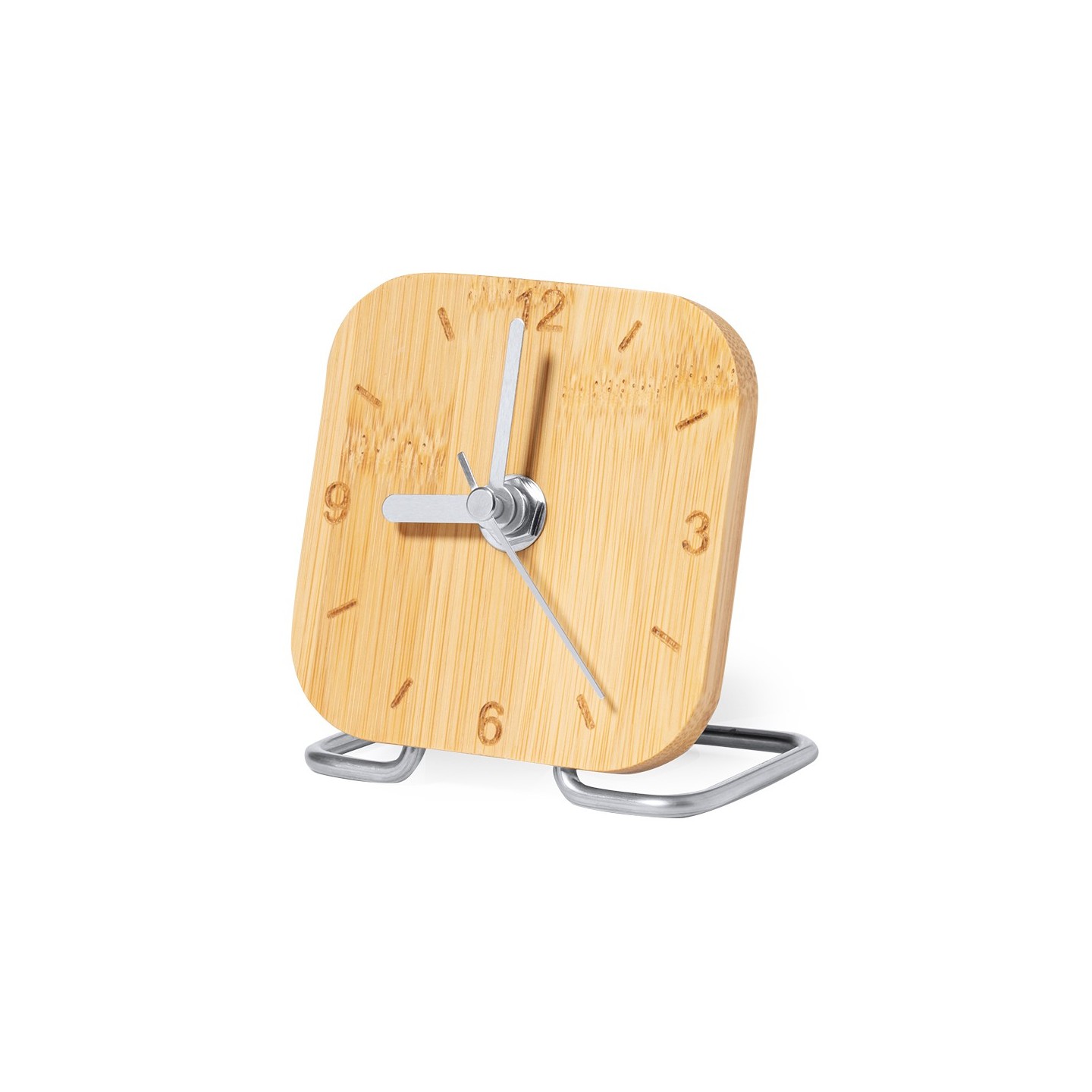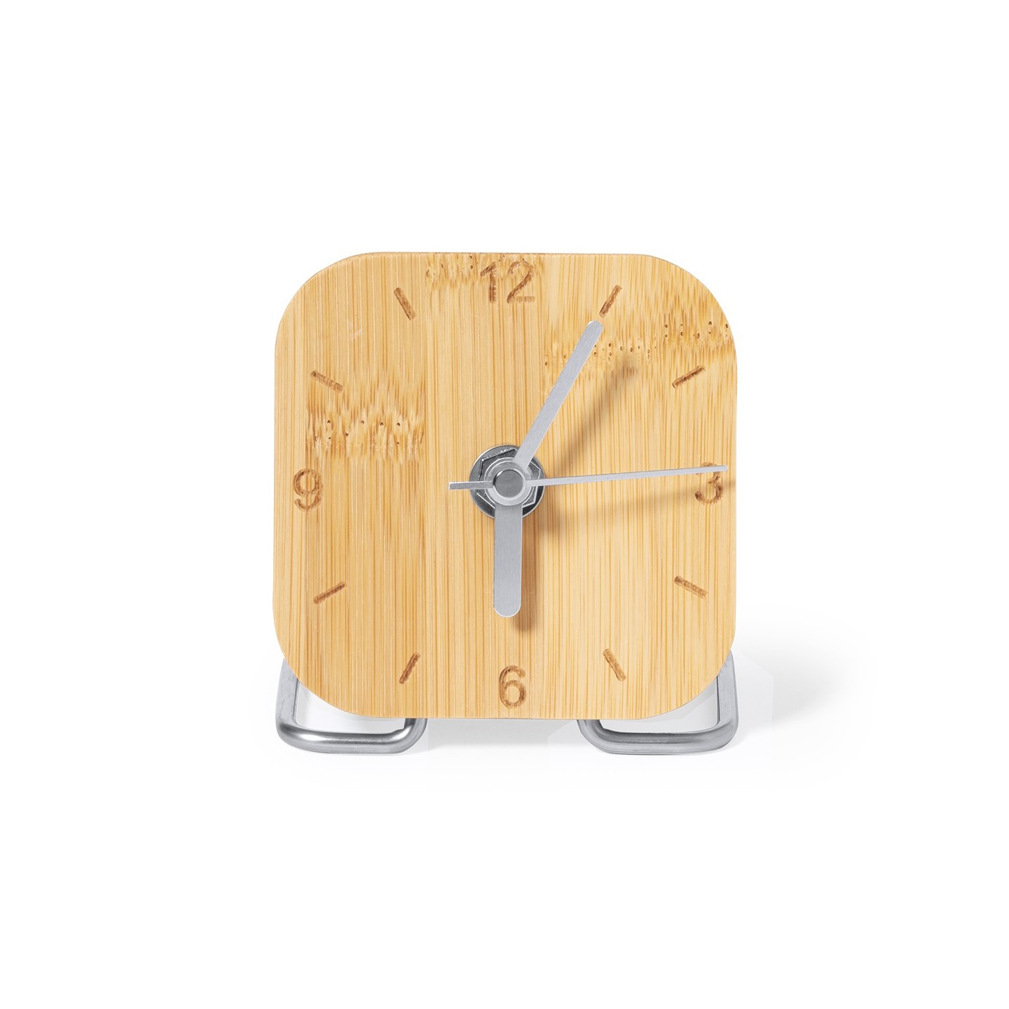 Reloj de mesa de bambú y acero inoxidable. Elegante y sostenible para su oficina