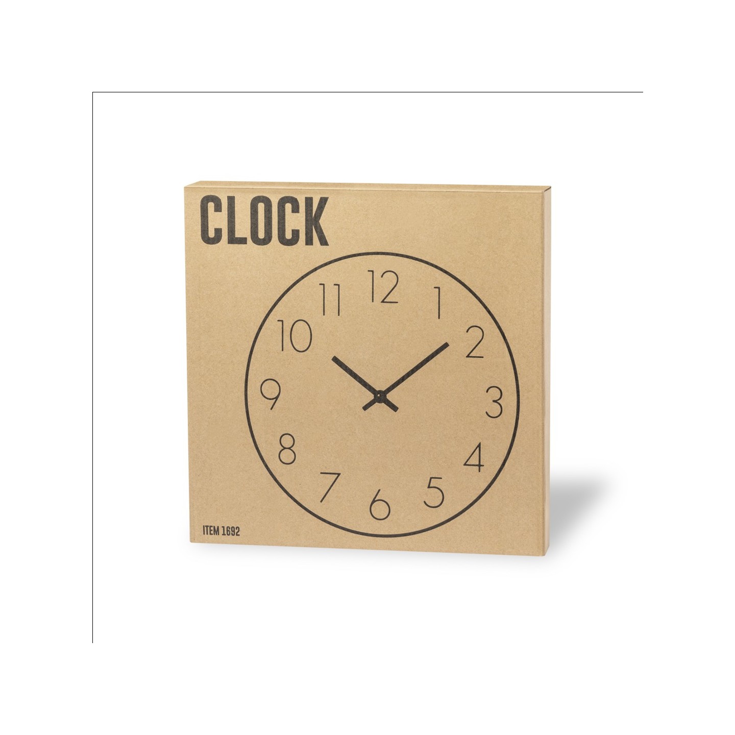 Reloj de pared de diseño moderno en madera MDF y dial blanco. Presentado en caja kraft. Funciona con 1 pila AA (no incluido).