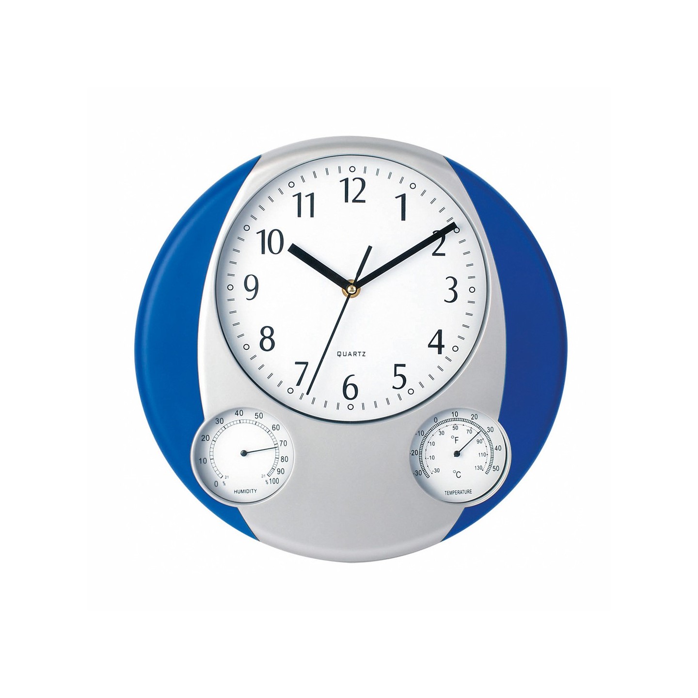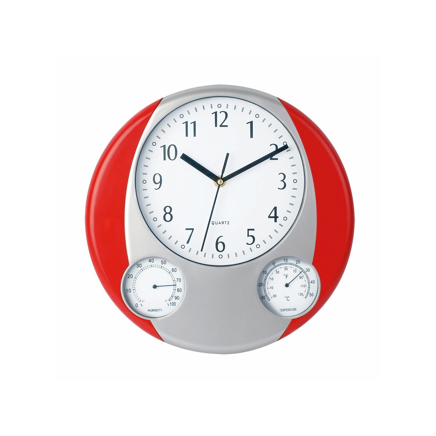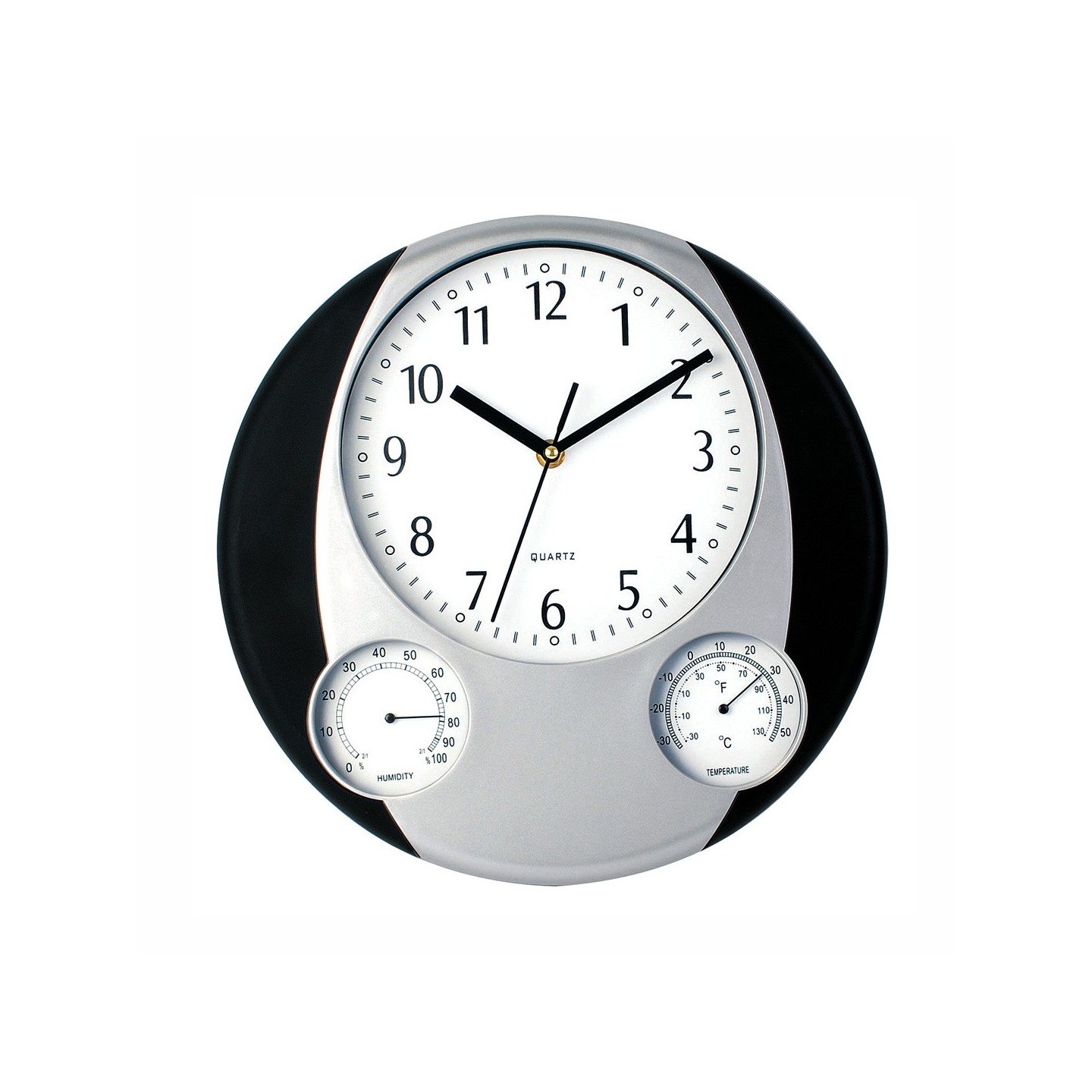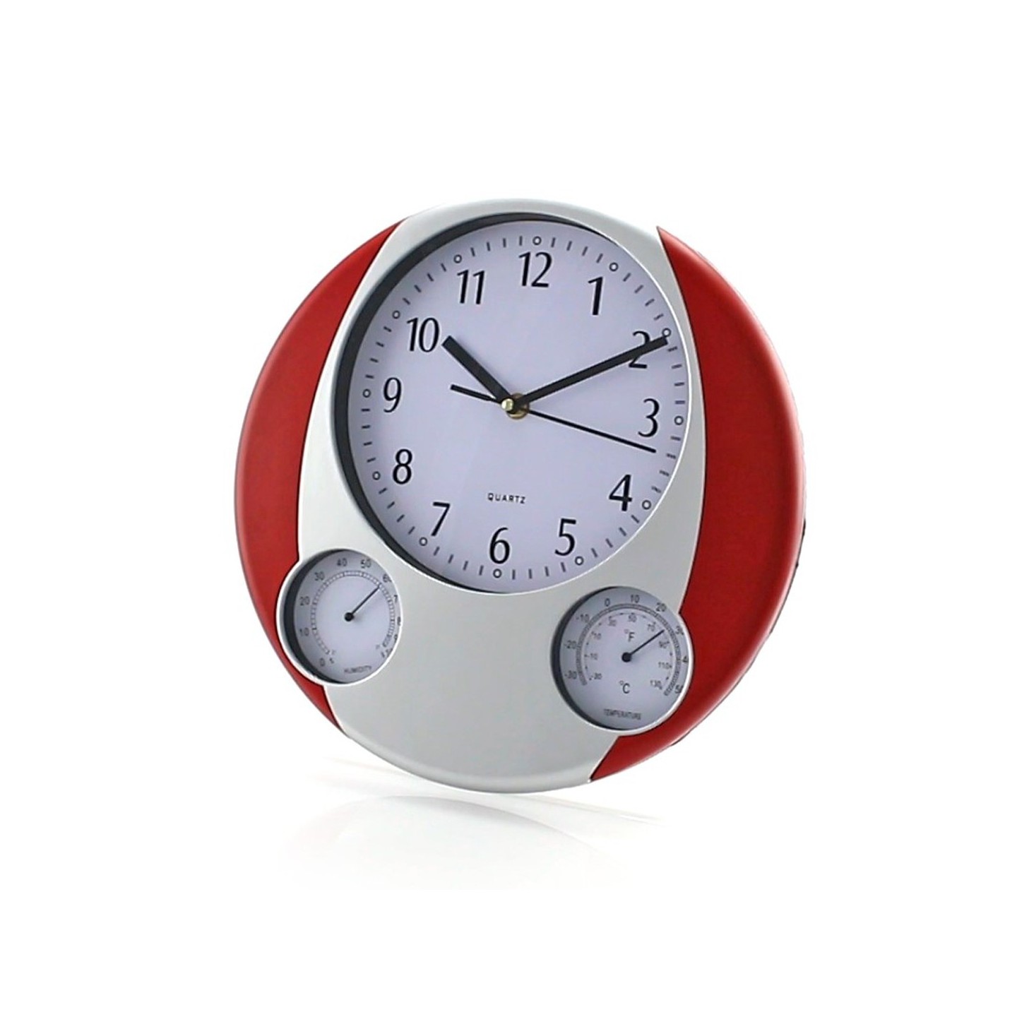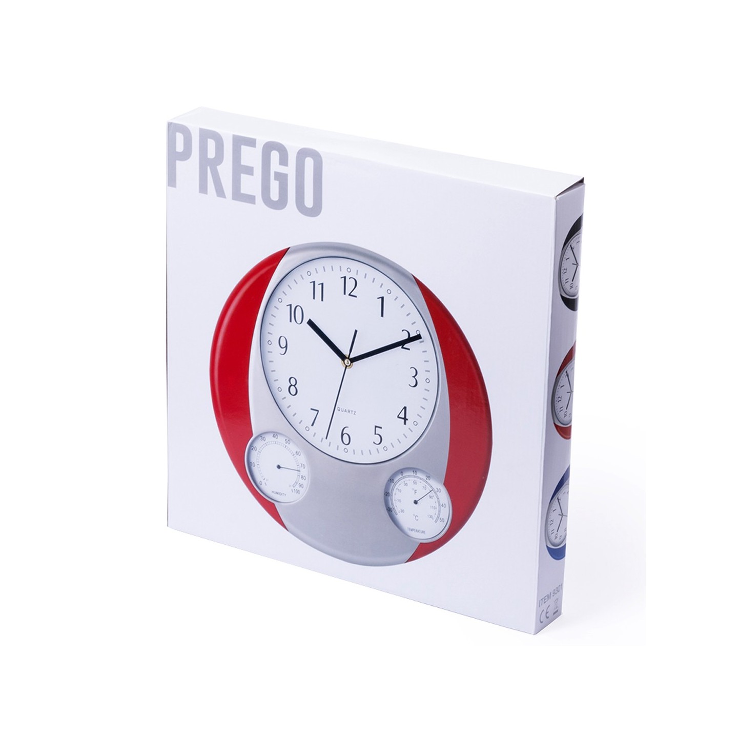 El Reloj Prego es de diseño circular con termómetro e higrómetro integrados. Funcionalidad y estilo en un reloj de pared único.