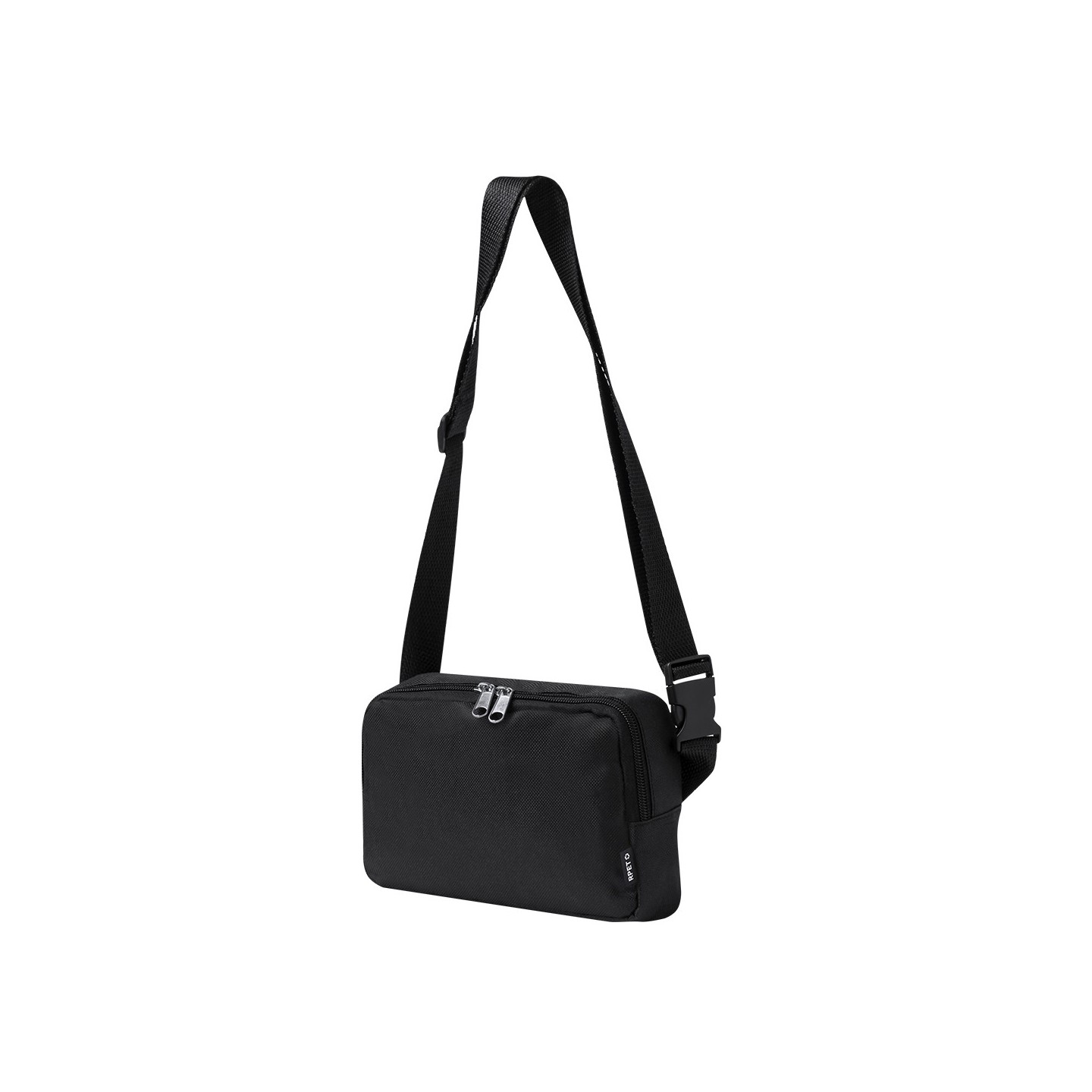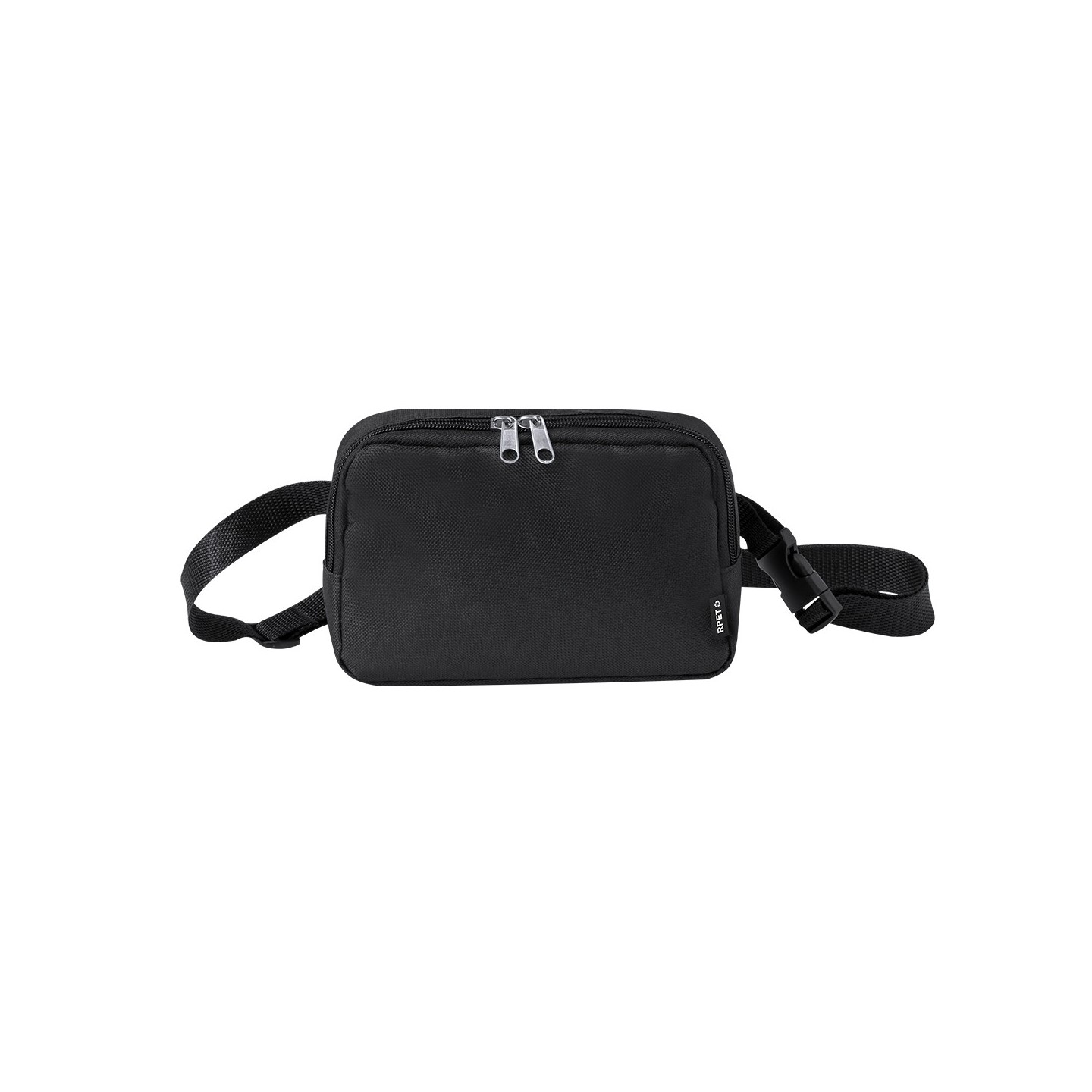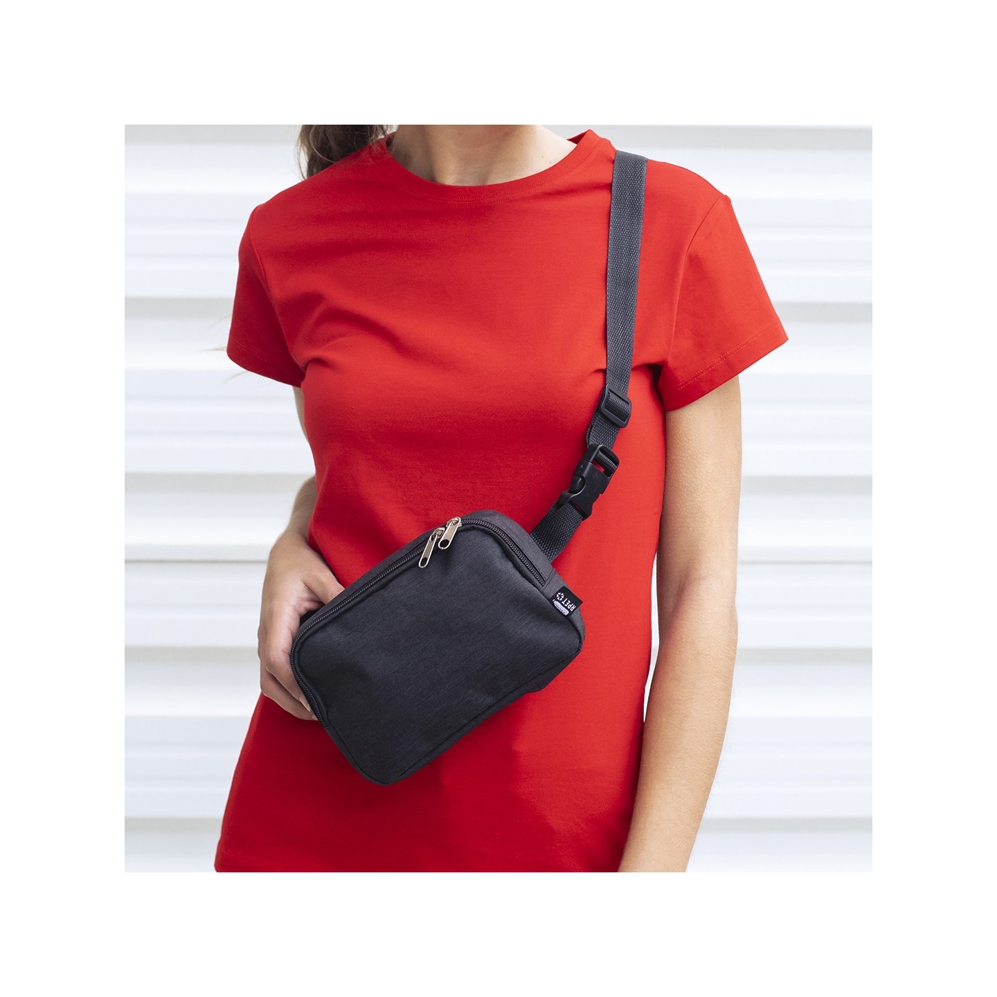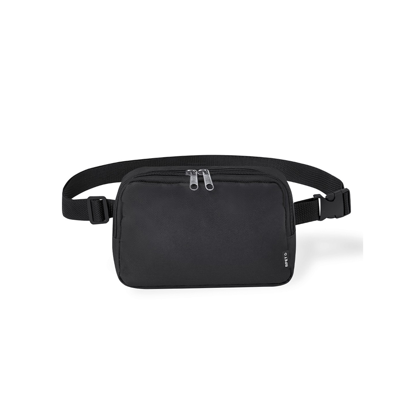 La cinta ajustable con cierre de hebilla garantiza un ajuste cómodo y personalizado, adaptándose a tus necesidades y preferencias. Además, la presencia de una etiqueta distintiva de RPET resalta el compromiso de esta riñonera con la sostenibilidad.