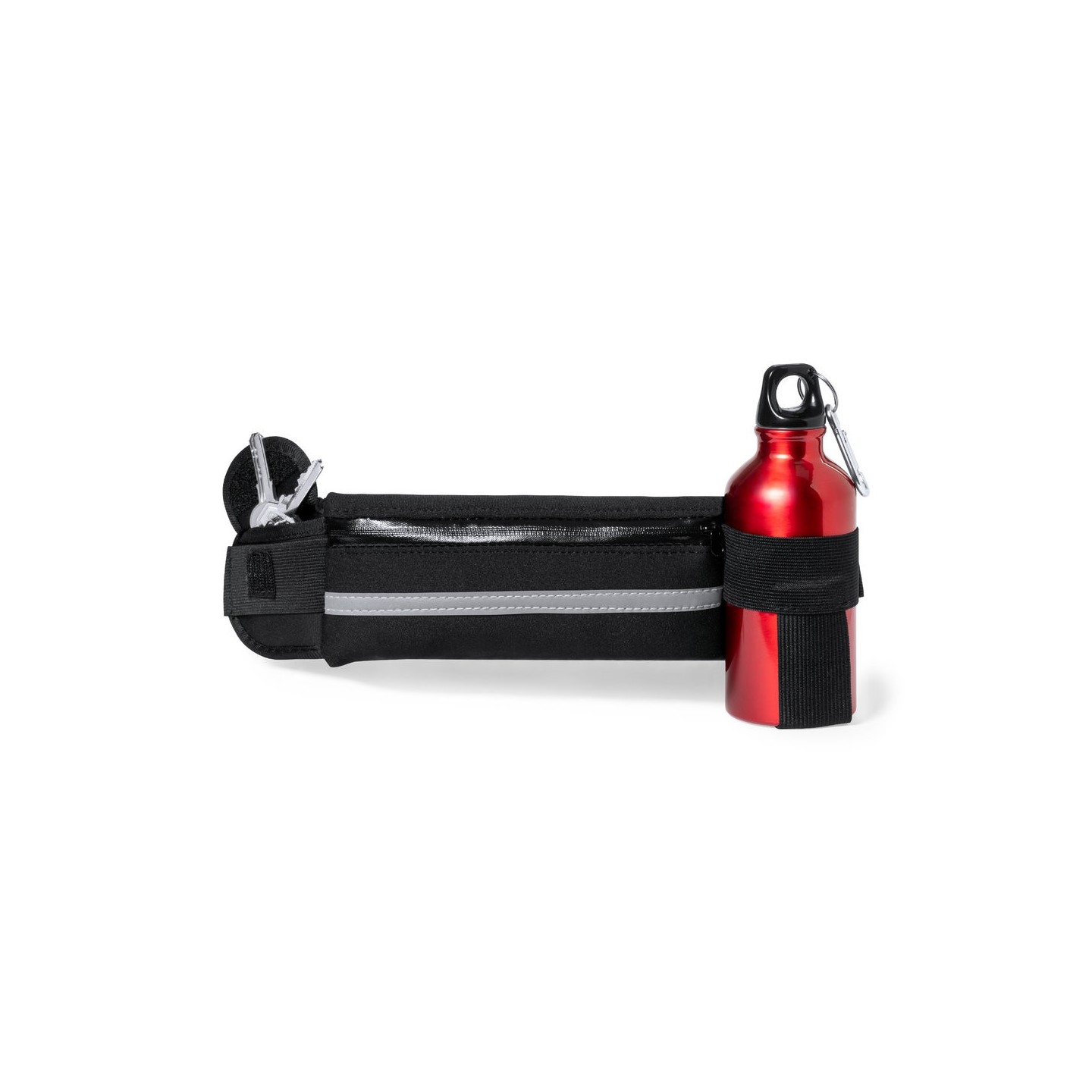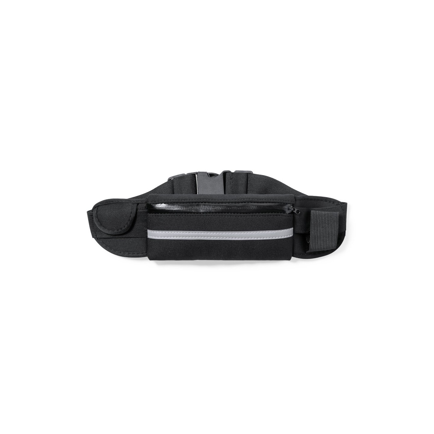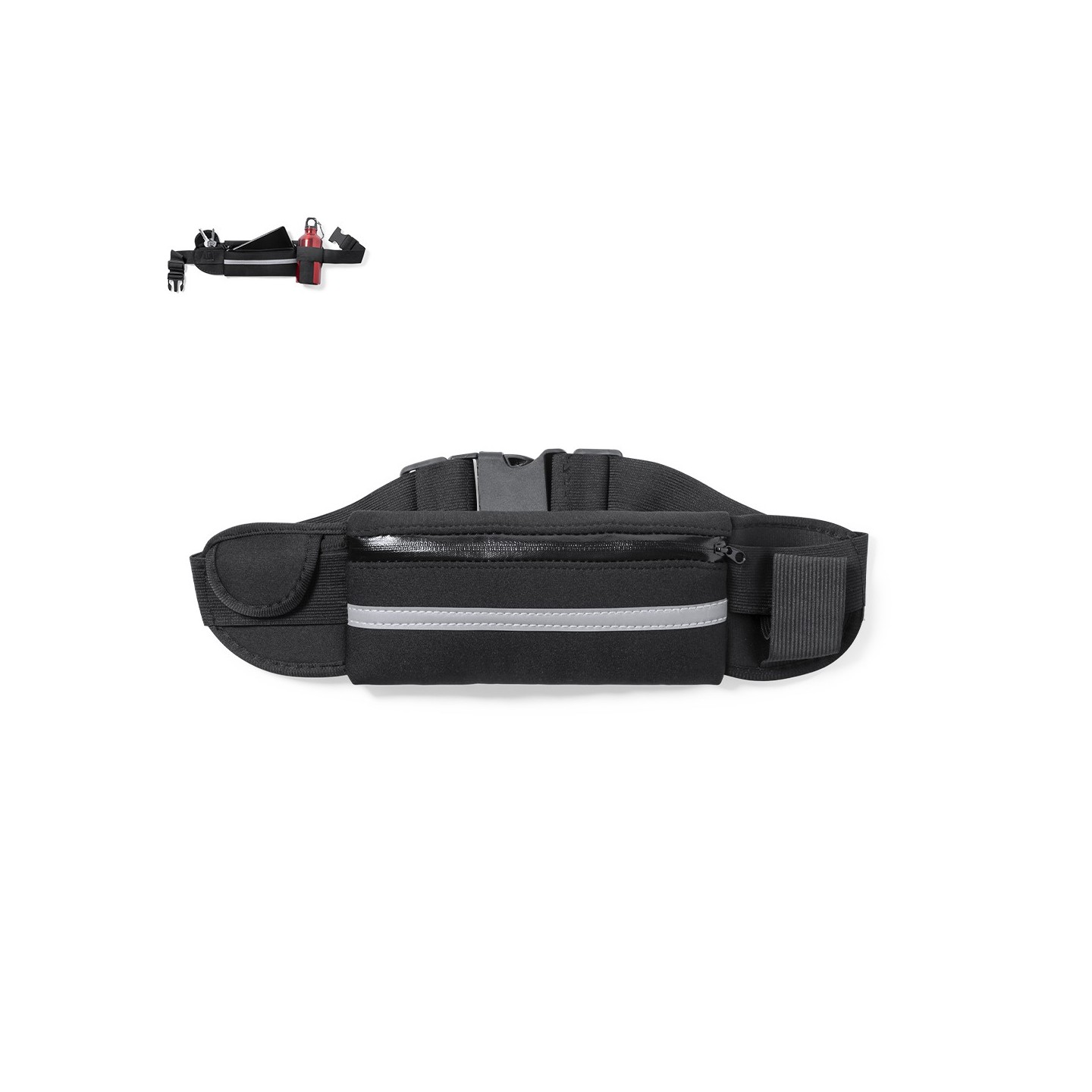 Riñonera de alta calidad en soft shell (neopreno) con tira reflectante. Compartimento principal con cremallera, soporte elástico para bidón y bolsillo para llaves. Diseño deportivo y cinta ajustable.