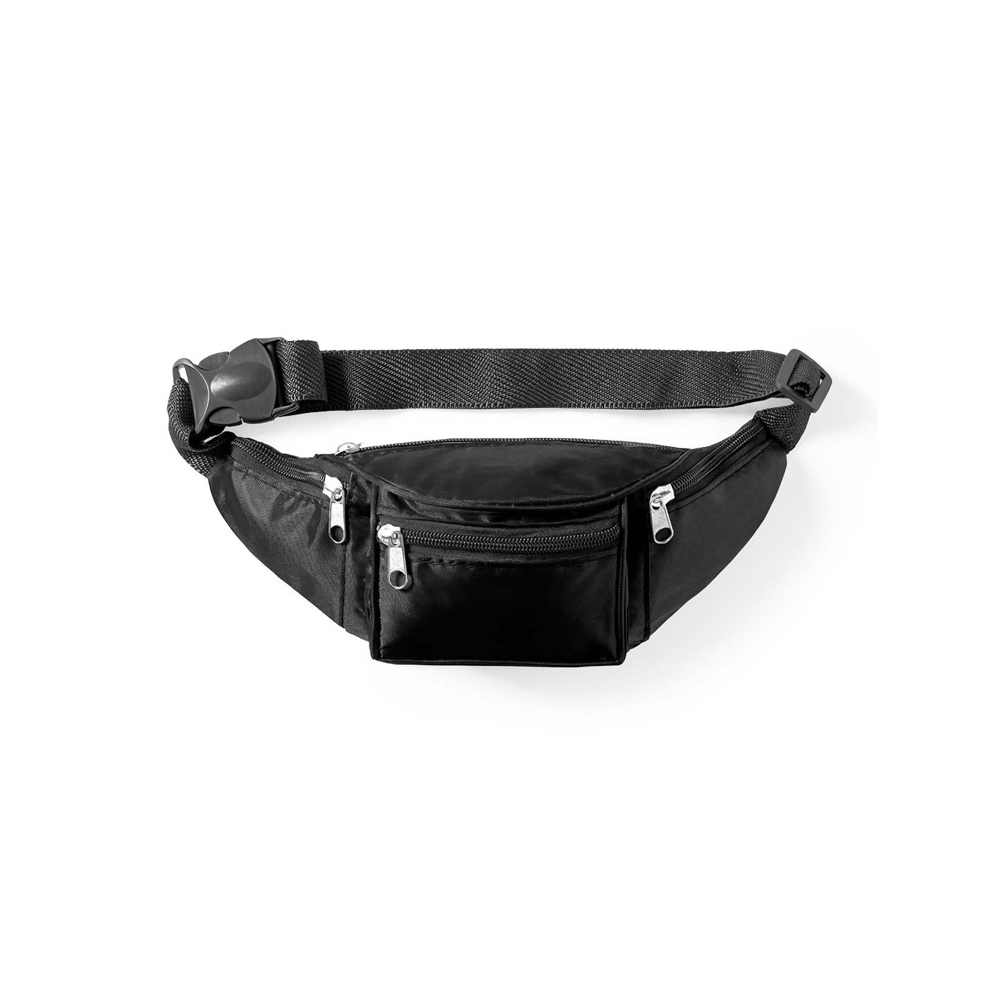 Riñonera Crown en poliéster 420D con 4 bolsillos y cintura ajustable. Ideal para actividades deportivas y de ocio.