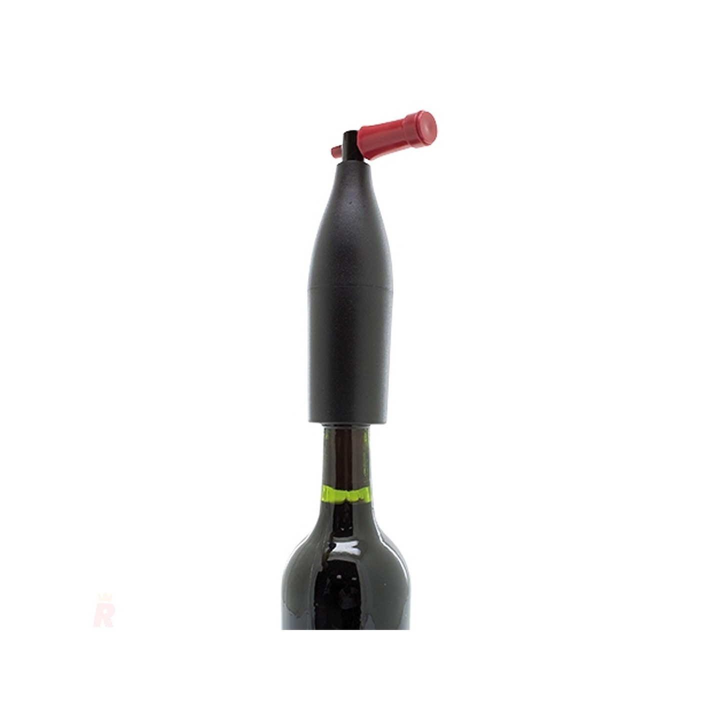 Con un diseño moderno, este sacacorchos tiene una forma estilizada que recuerda a una botella de vino, con un cuerpo negro y una palanca roja que añade un toque de color y distinción. Su aspecto no solo lo hace funcional, sino también atractivo, lo que lo convierte en un excelente regalo para amantes del vino o un accesorio de estilo para cualquier ocasión especial.