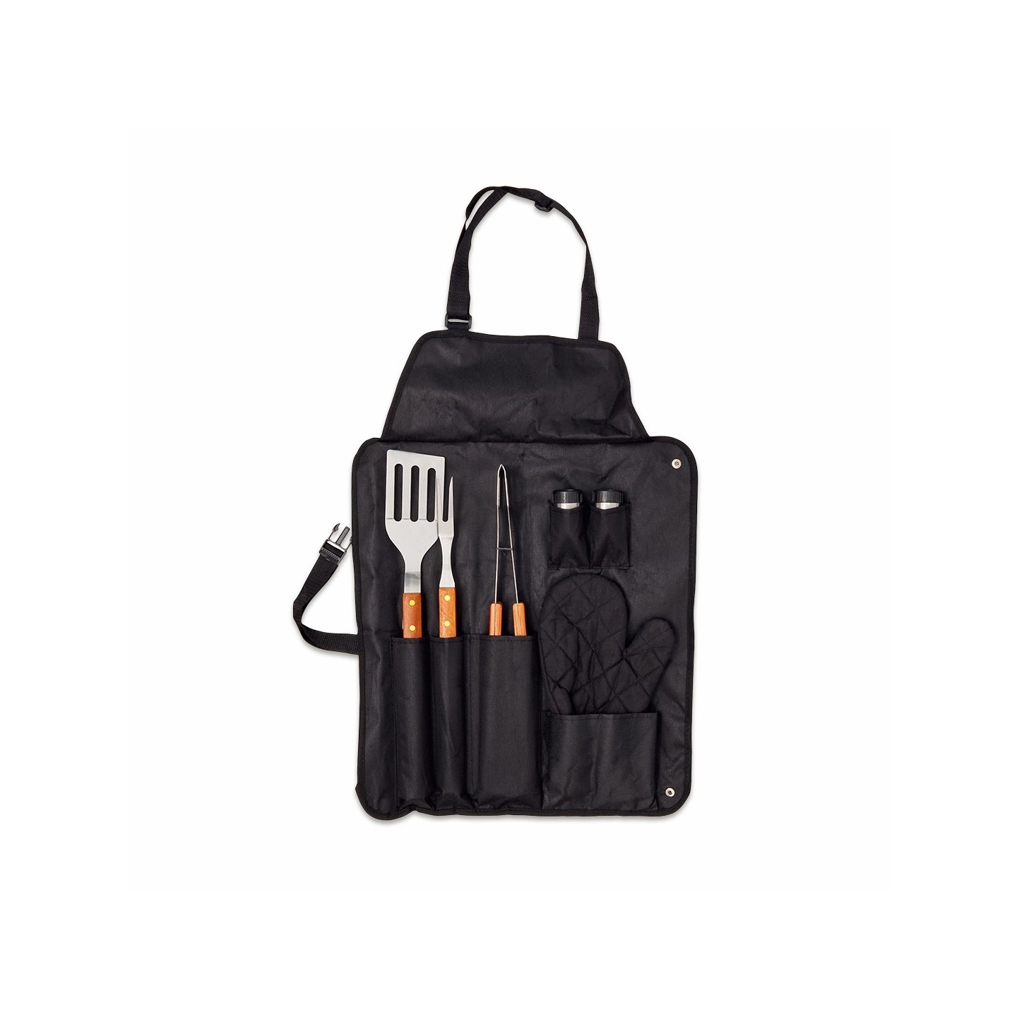 Además, este set de barbacoa viene acompañado de una manopla acolchada para proteger tus manos del calor, así como botes dosificadores para sal y pimienta, para sazonar tus platos a la perfección.