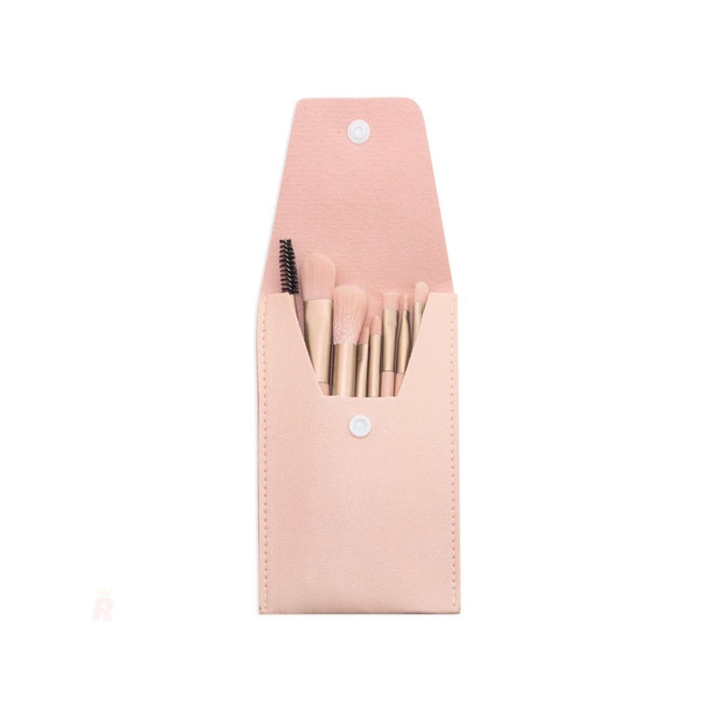 Set de brochas y pinceles en estuche de polipiel rosa pastel. Elegante y funcional, ideal para personalizar con logotipo como regalo promocional de calidad