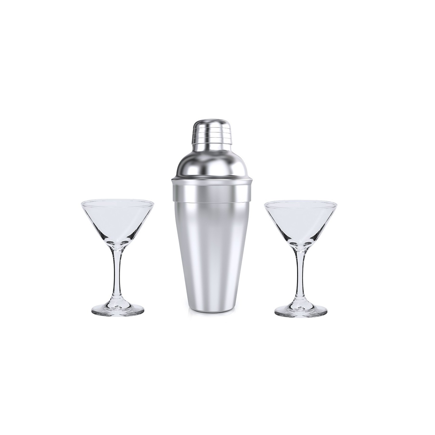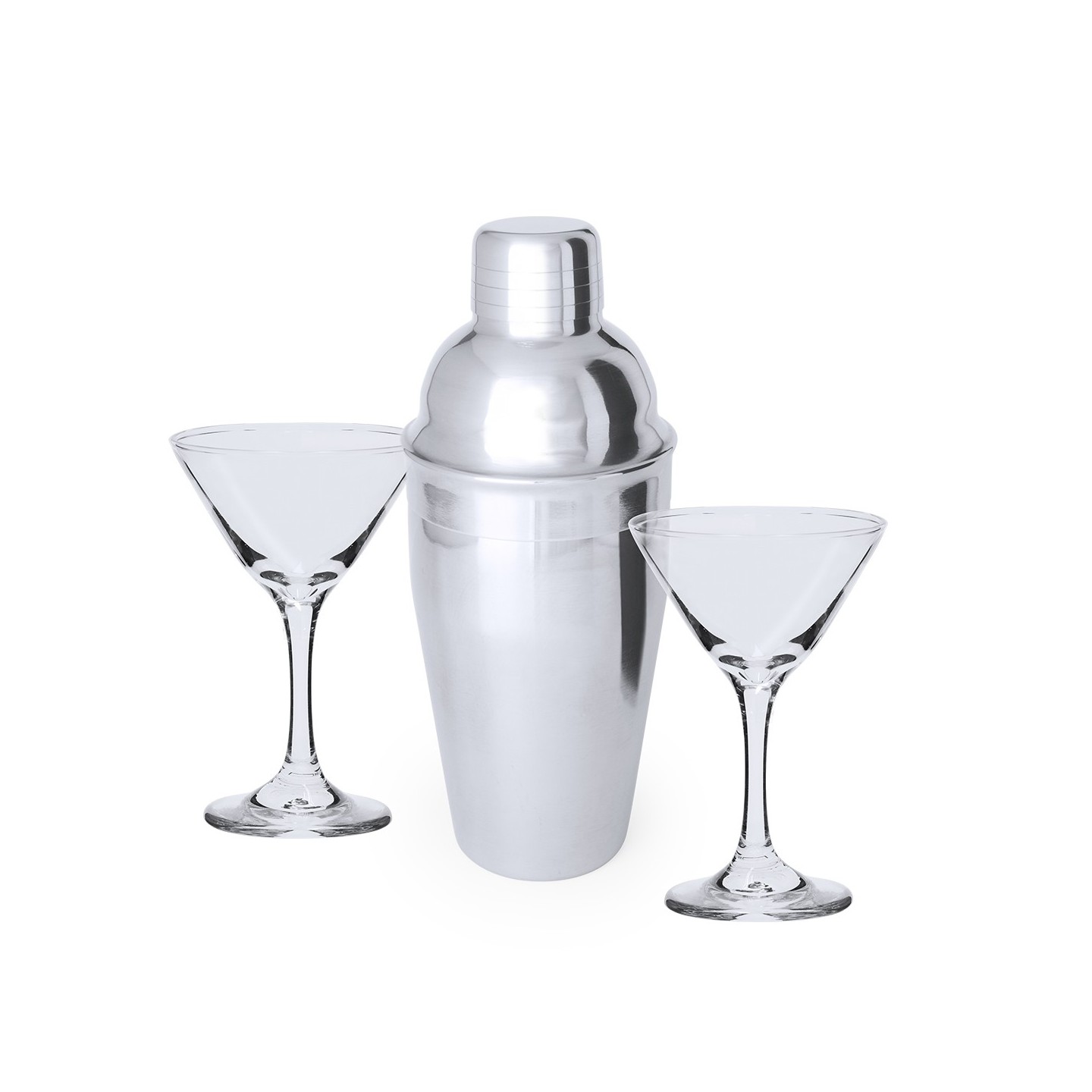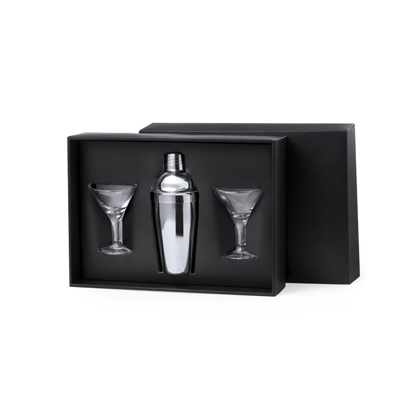 El Set Cóctel Cefiro trata de una elegante coctelera de acero inoxidable de 550 ml y 2 copas de cristal de diseño triangular. Ideal para regalos exclusivos