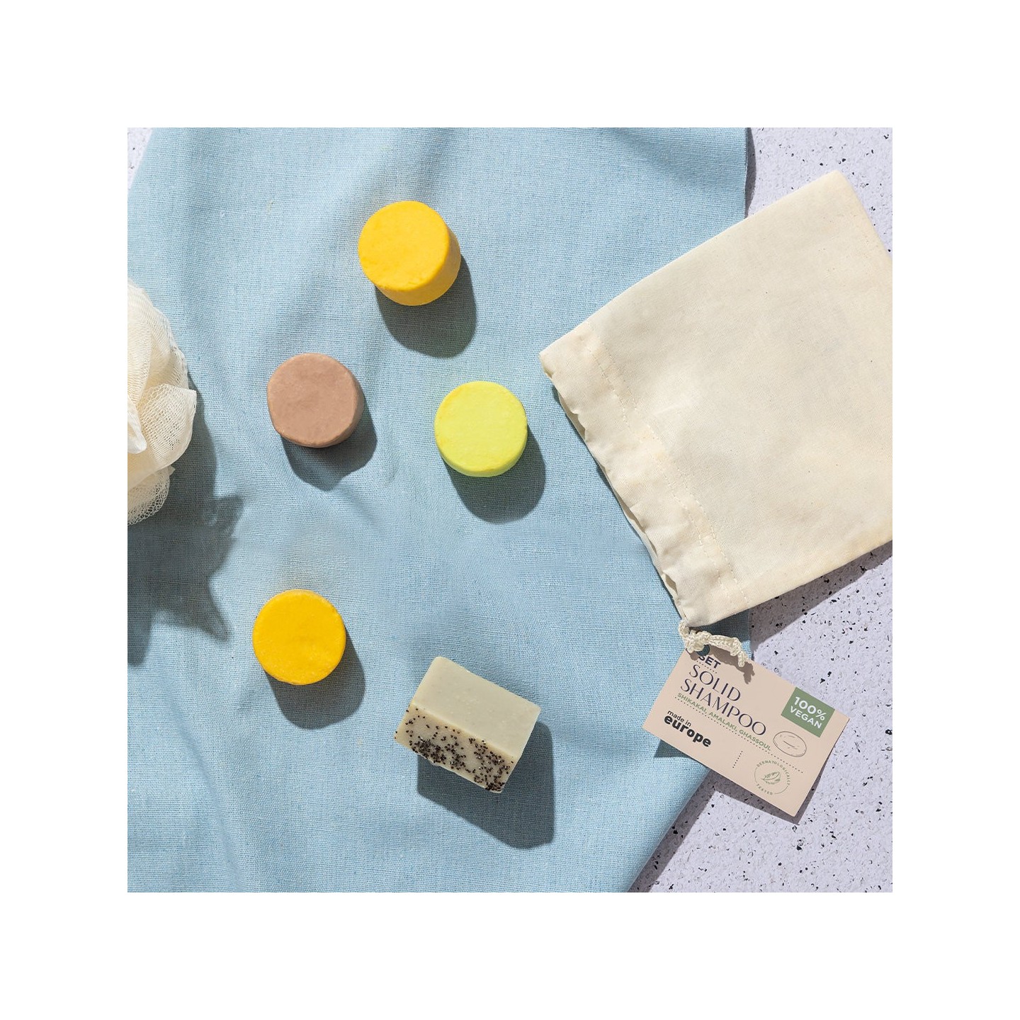 La presentación del Set Champús Turuen es igualmente impresionante. Cada champú se entrega en una bolsa individual de algodón con cierre de cordón y etiqueta distintiva, reflejando el cuidado y la calidad que ofrecen. Además de su eficacia y aroma, estos champús son dermatológicamente testados, fabricados en Europa y totalmente veganos, sin ingredientes de origen animal y sin pruebas en animales.