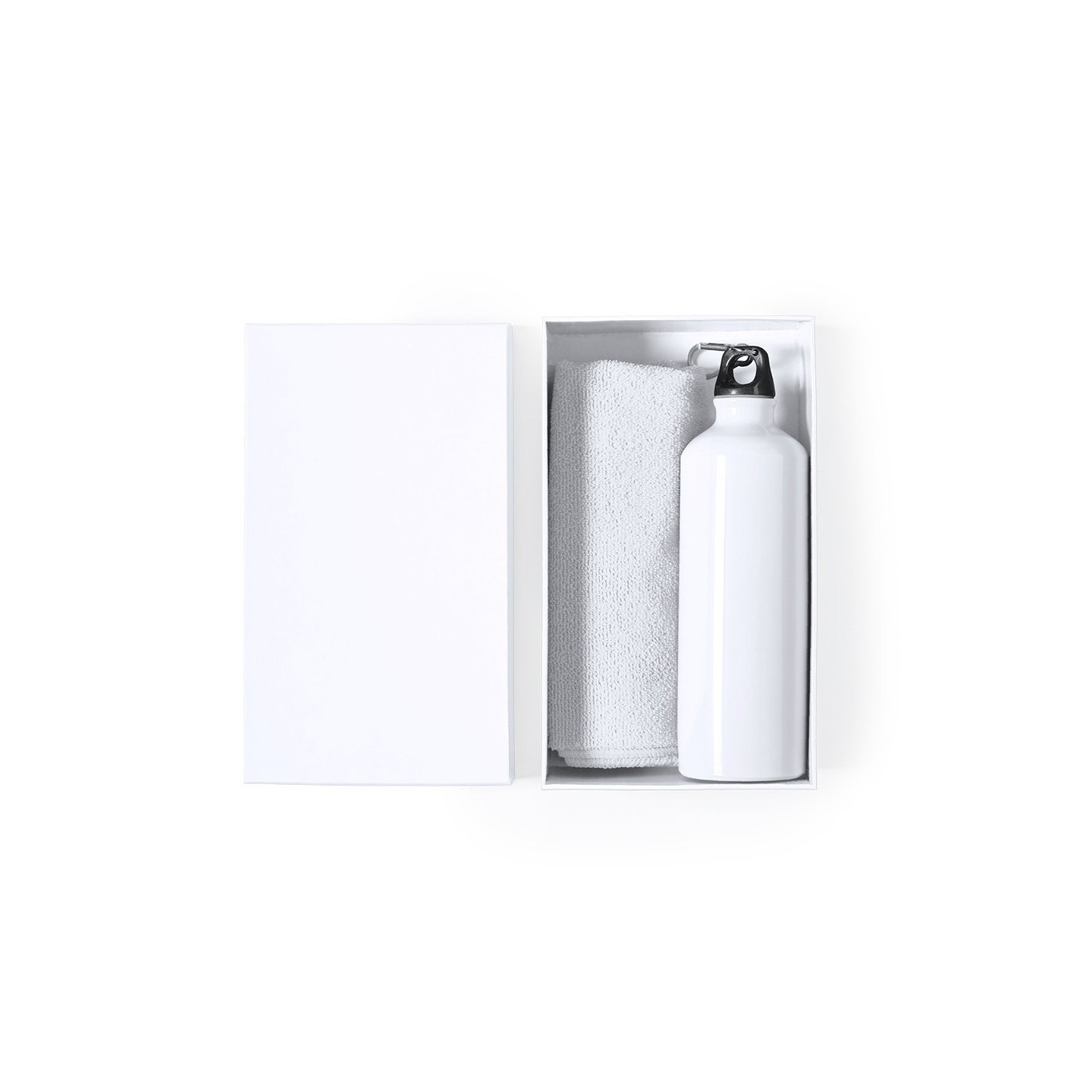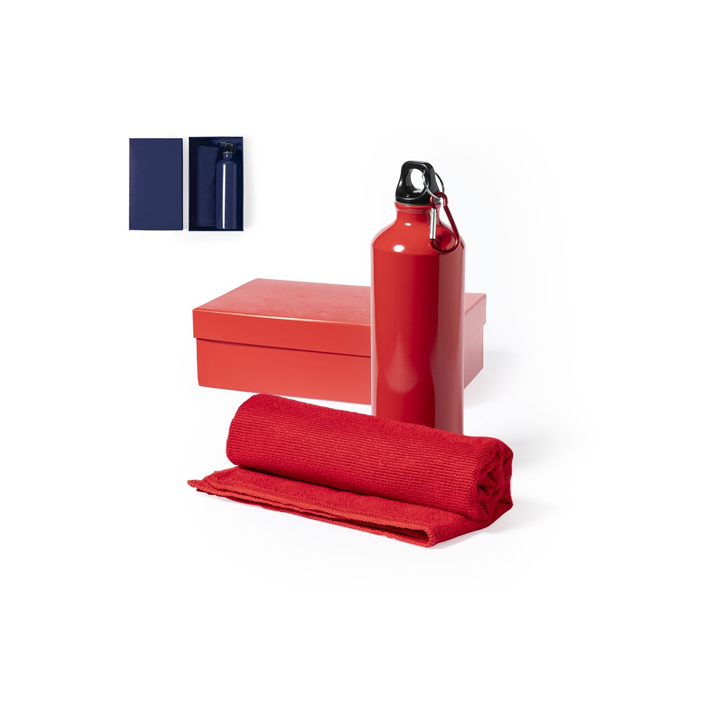 El Set Cloister consta de un bidón de 800 ml en aluminio brillante y una toalla de microfibra absorbente. Regalos personalizados que marcan la diferencia.