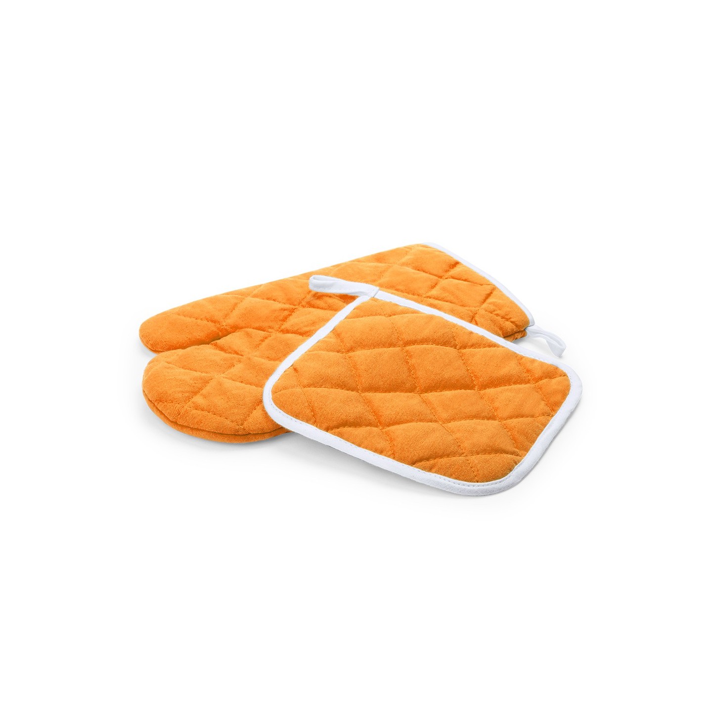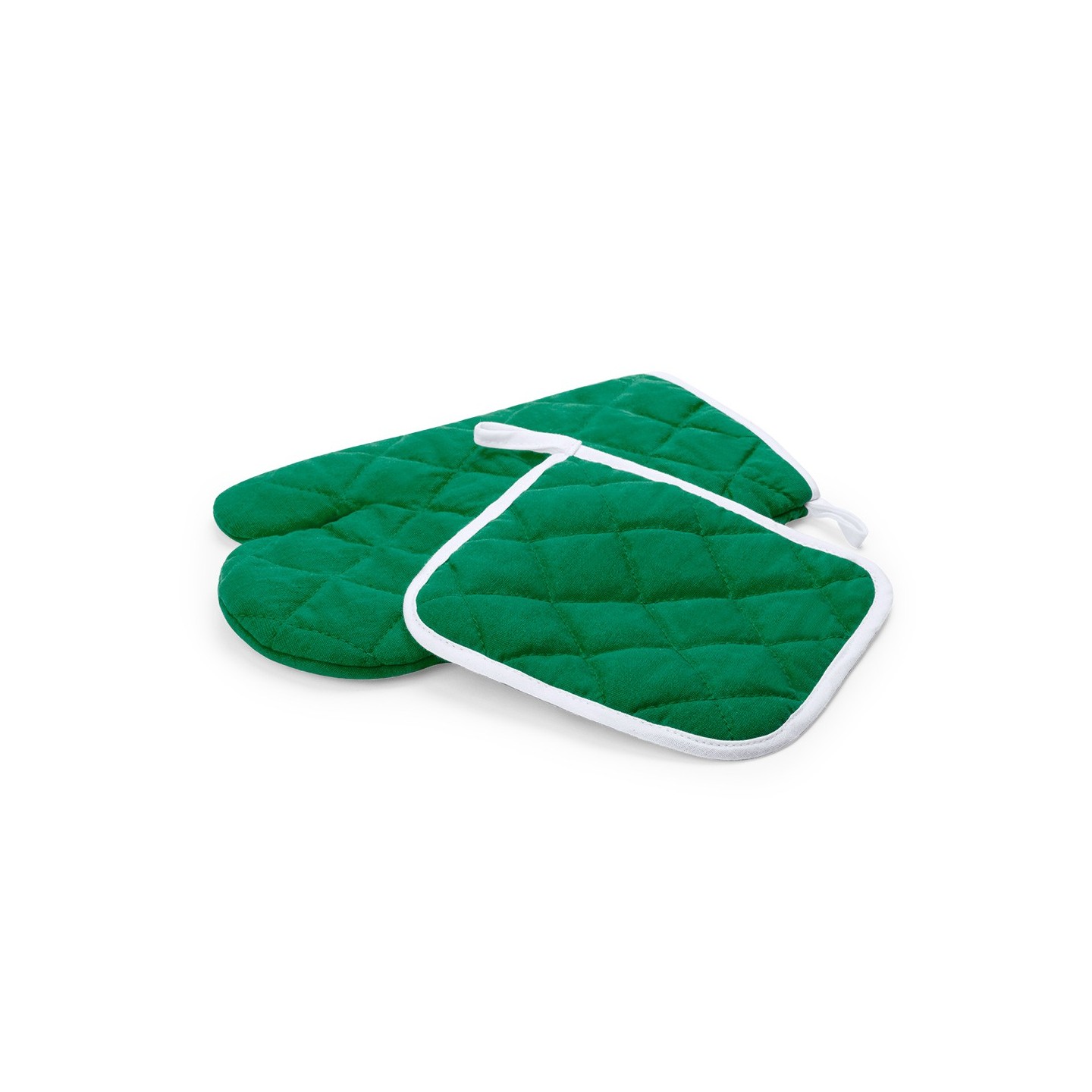 Set de cocina Leston con agarrador y manopla en material TC. Diseño combinado de colores vivos, ideal para regalos personalizados.