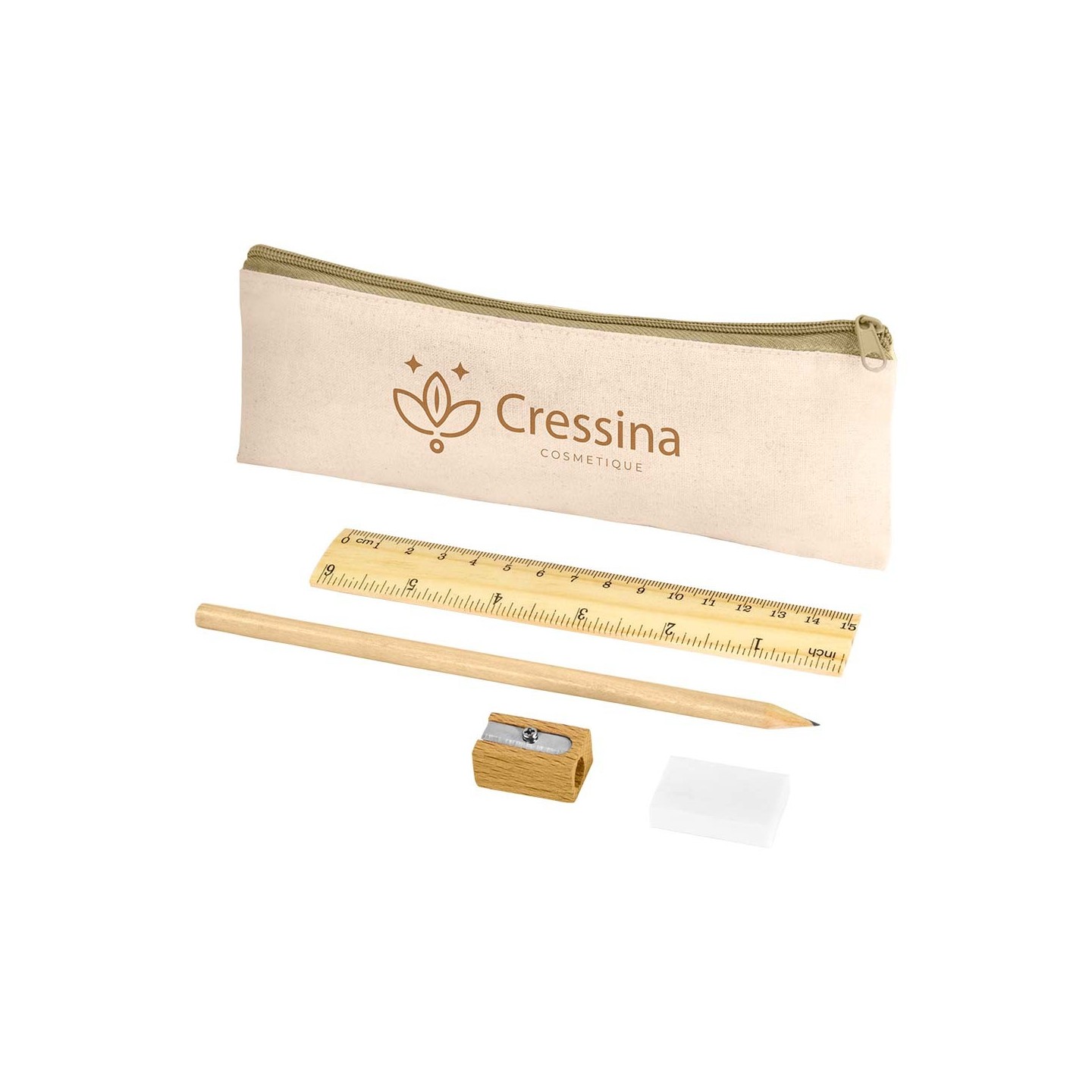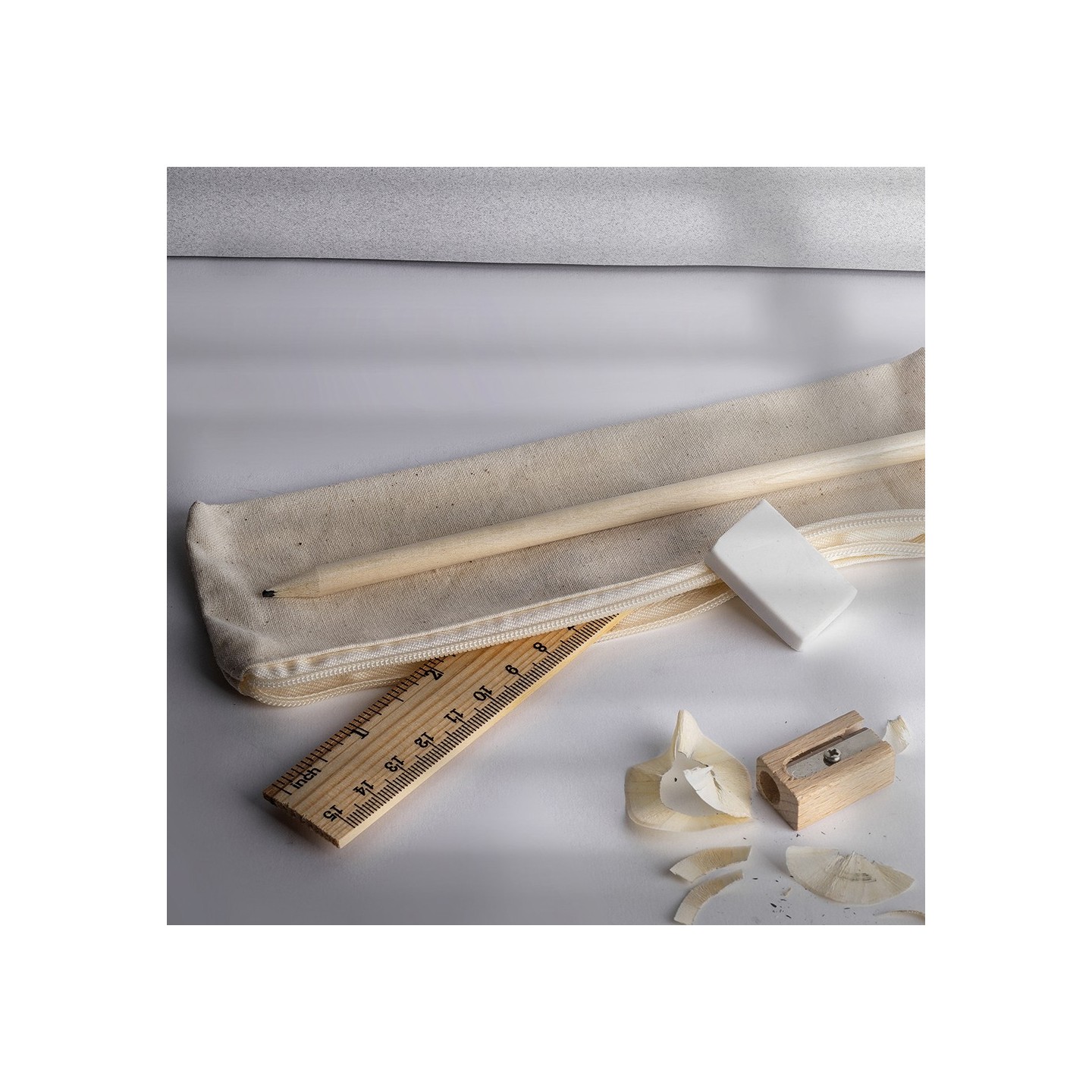 Descubre la elegancia sostenible con nuestro Set Estuche Endemic. Algodón, lápiz y accesorios de madera natural. Presentado en bolsa individual.
