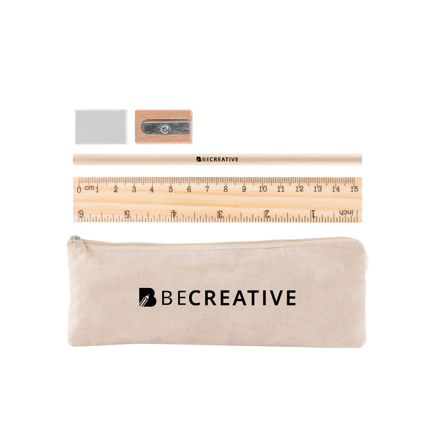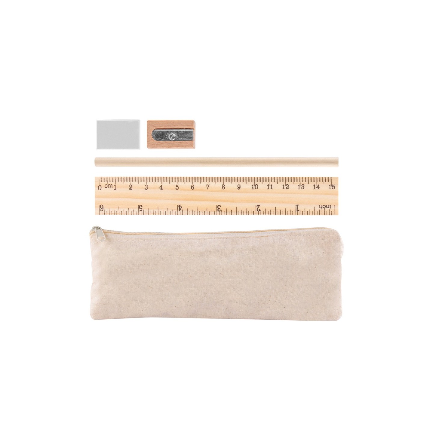 El lápiz de madera natural con mina negra de carbón no solo es una herramienta de escritura, sino también una declaración de respeto por los recursos naturales. El sacapuntas de madera natural, la goma y la regla completan este set, cada uno aportando su toque único y sostenible.