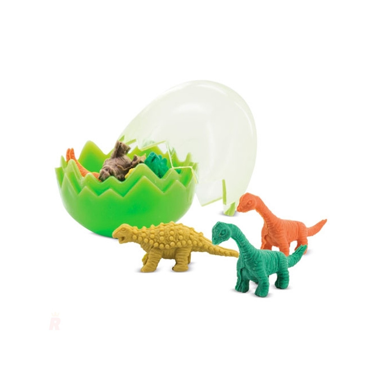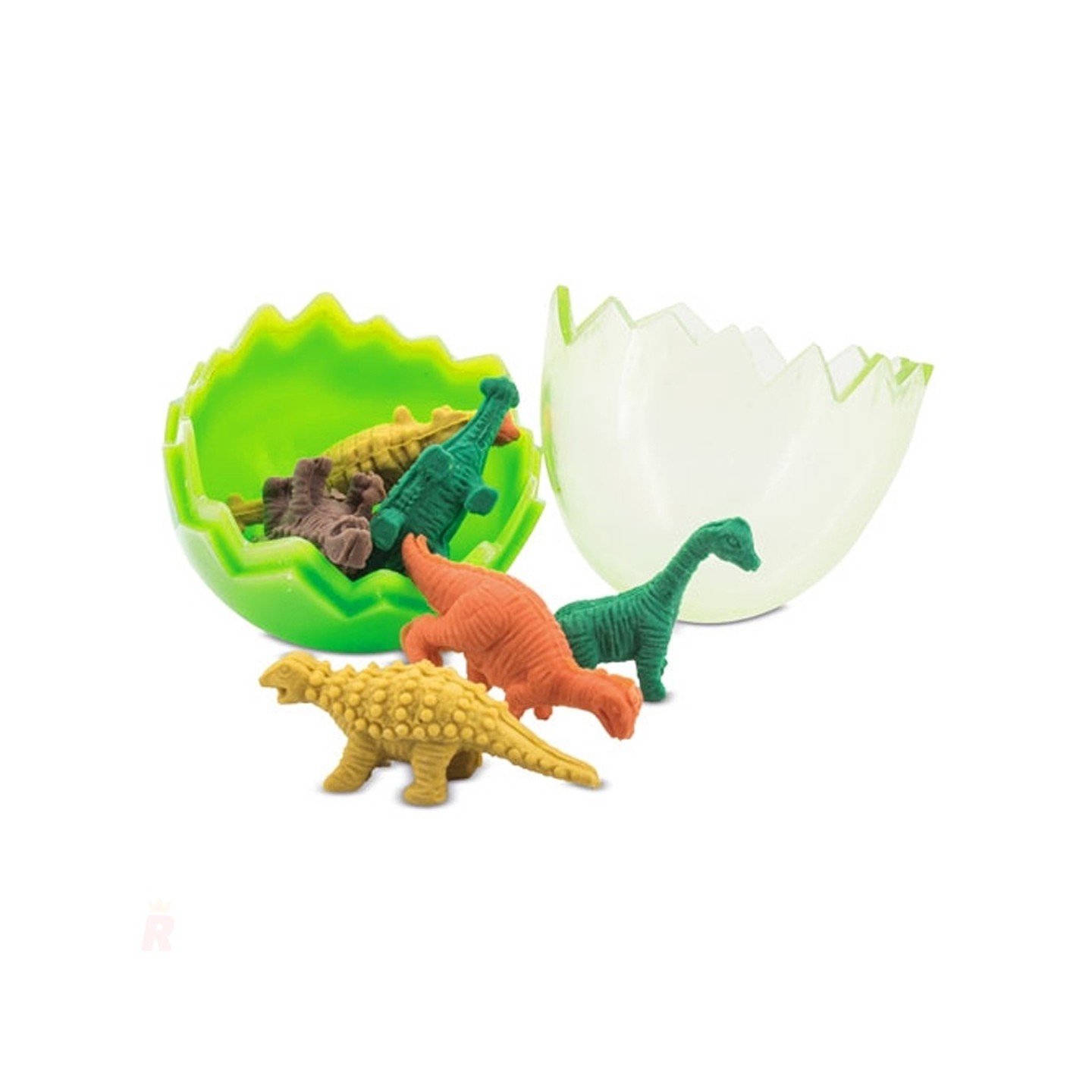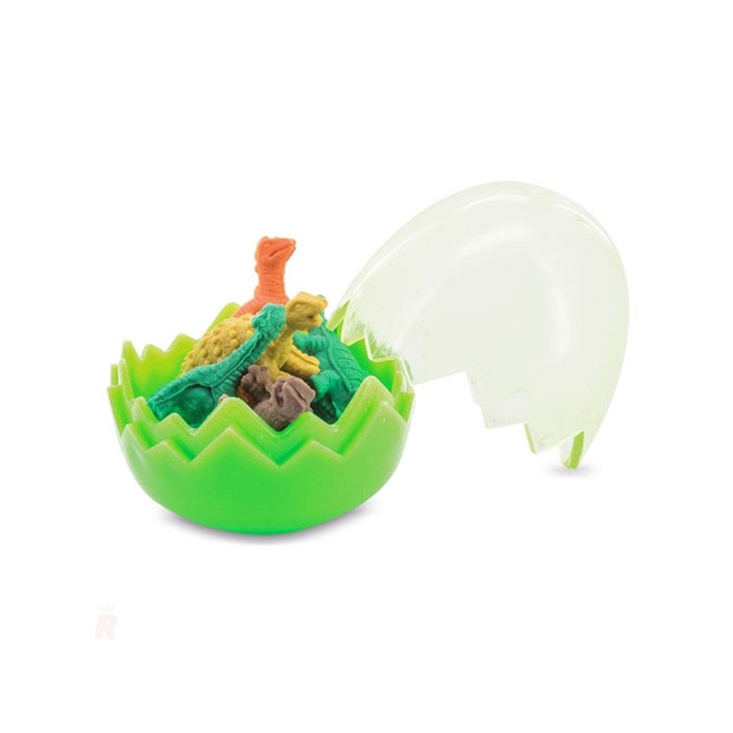 El Set Gomas Borrar Infantiles Dinosaurios DINO es un conjunto único y divertido que hará las delicias de los más pequeños. Este set infantil incluye un pequeño huevo de plástico, con tapa transparente, que en su interior esconde originales gomas de borrar con formas de dinosaurios. Estas gomas, diseñadas con colores vibrantes como verde, naranja y amarillo, no solo son útiles, sino también visualmente atractivas y llenas de detalles.