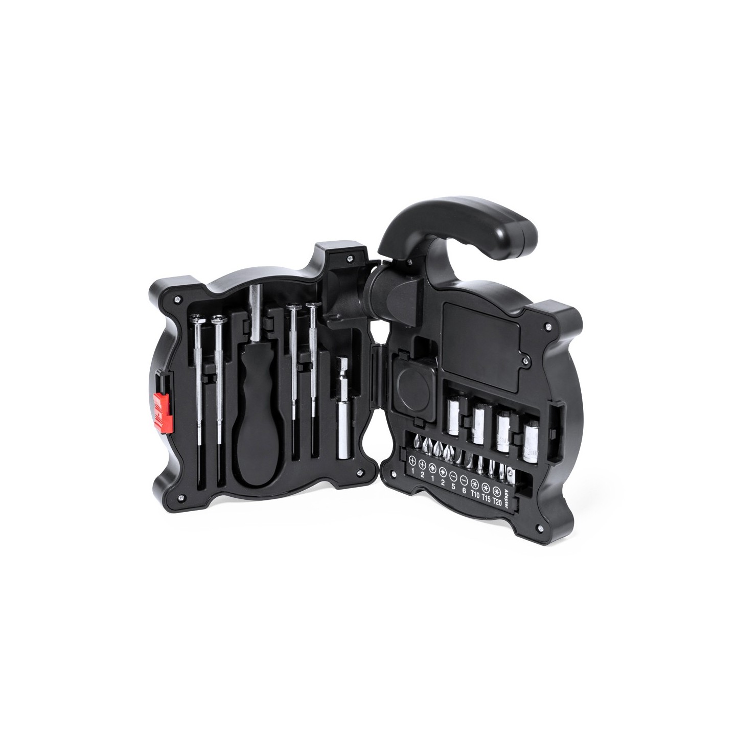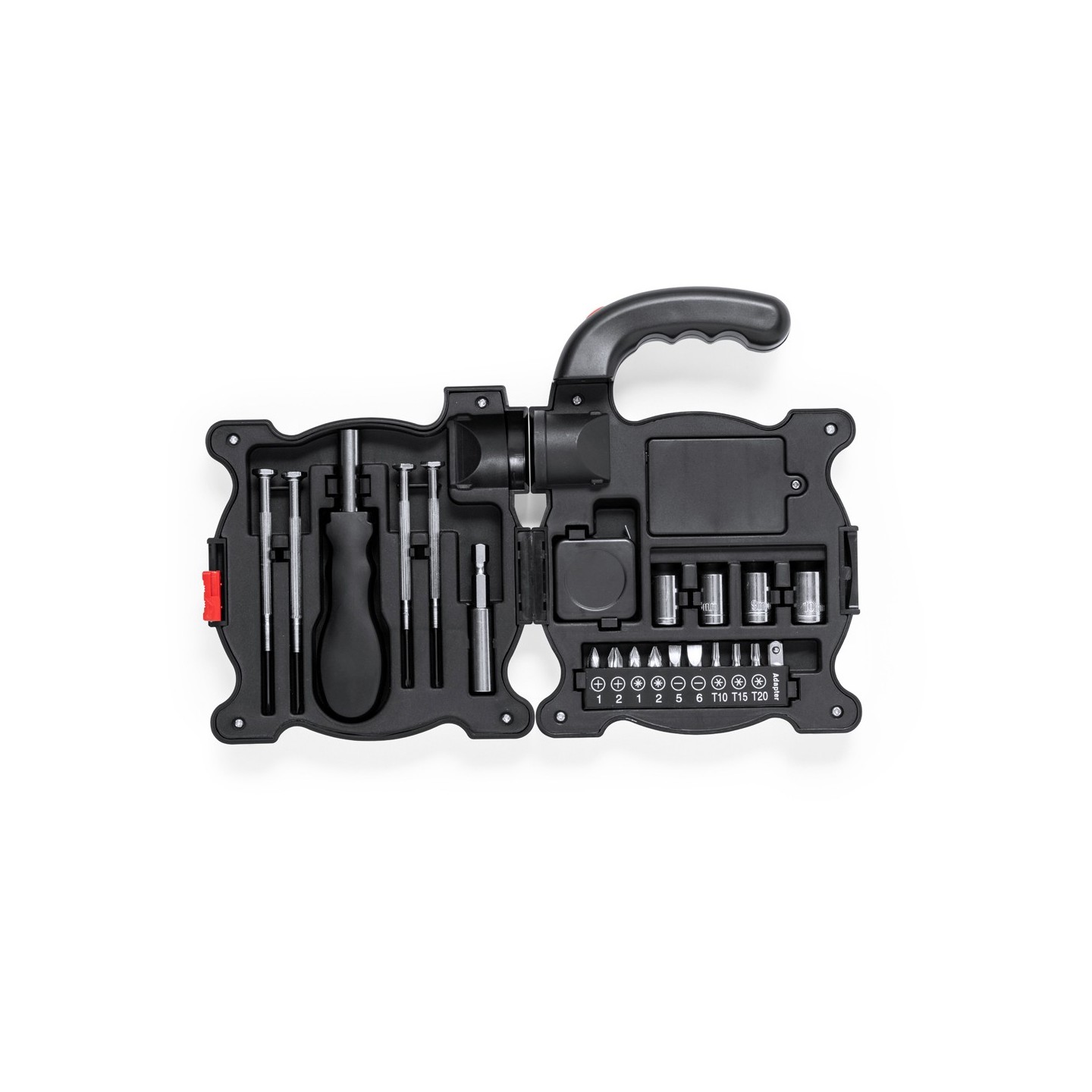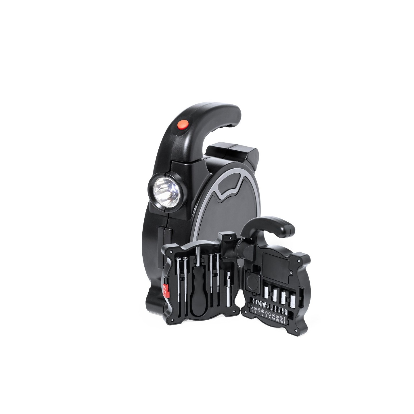 El Set Herramientas Hancuk consta de un estuche ABS con linterna y 21 accesorios. Práctico, duradero y personalizable, ideal para regalos corporativos.