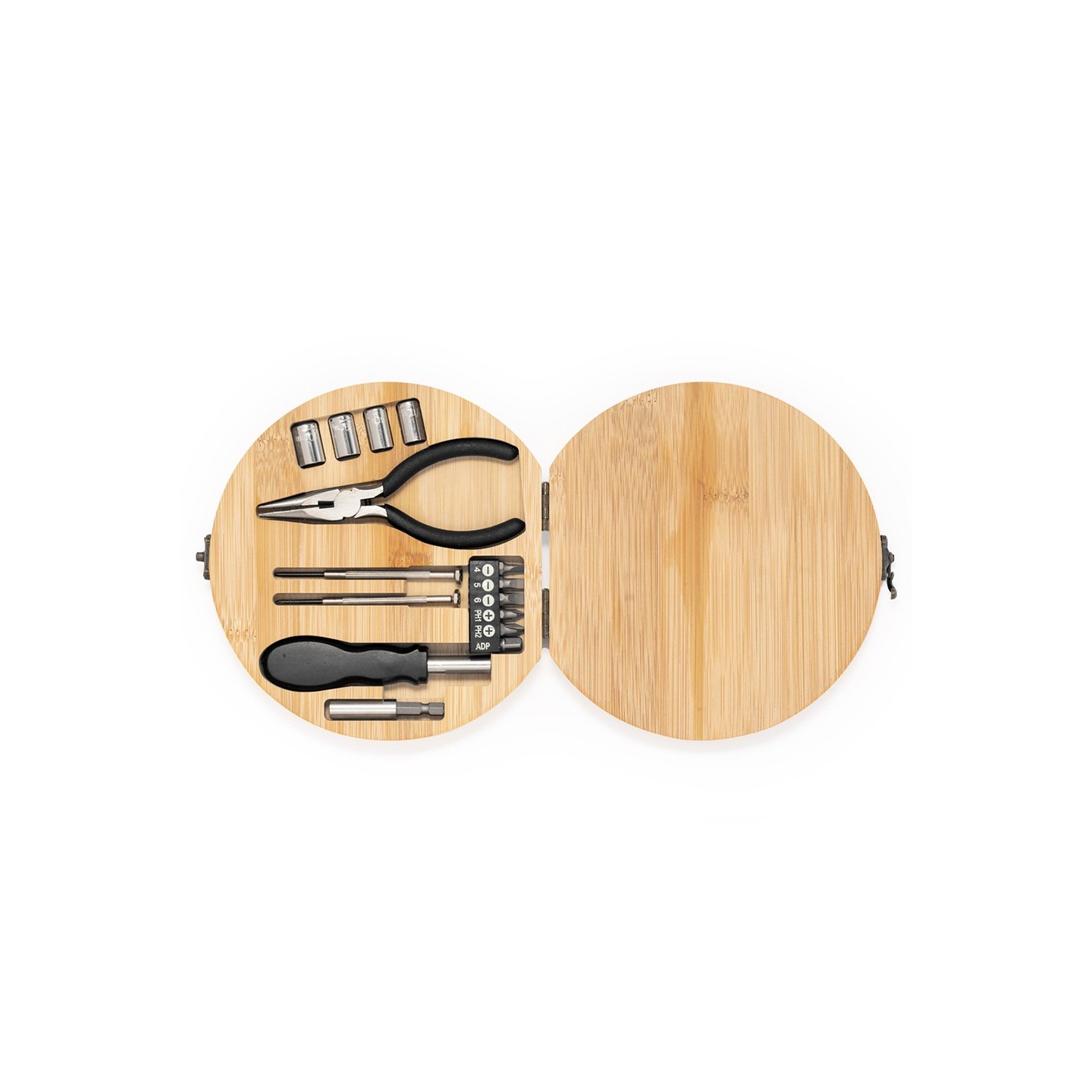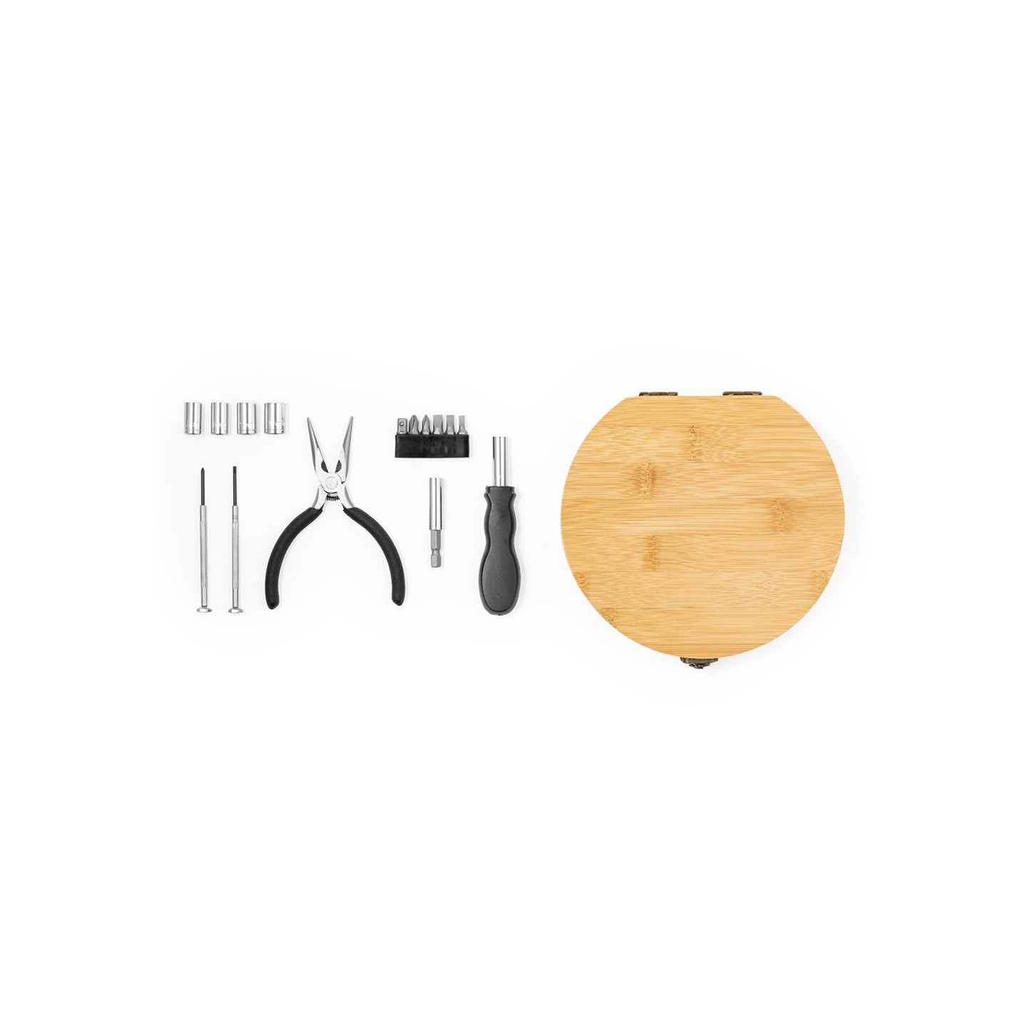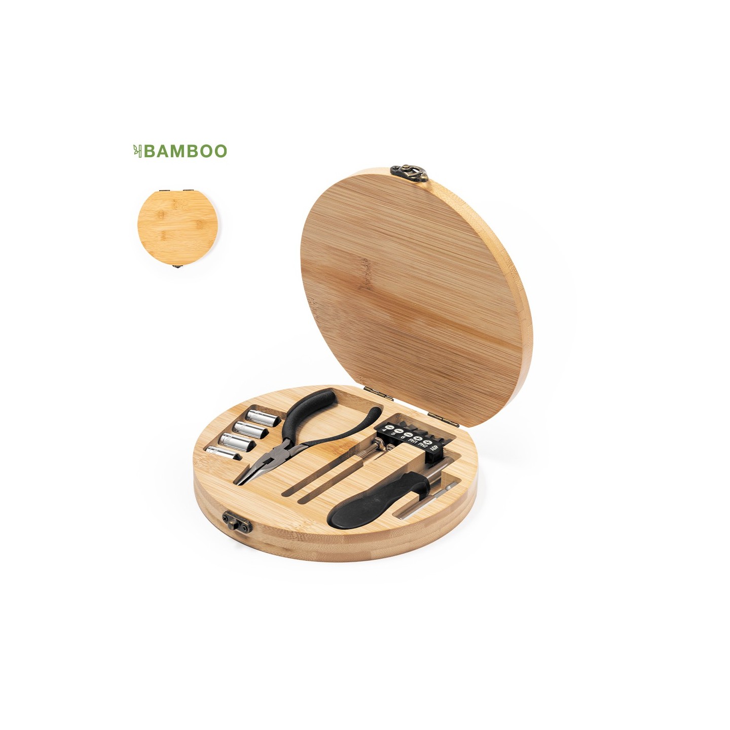 El Set Herramientas Rosen ofrece 15 accesorios en caja de bambú. Funcional y elegante. Ideal para regalos corporativos. Personalizable