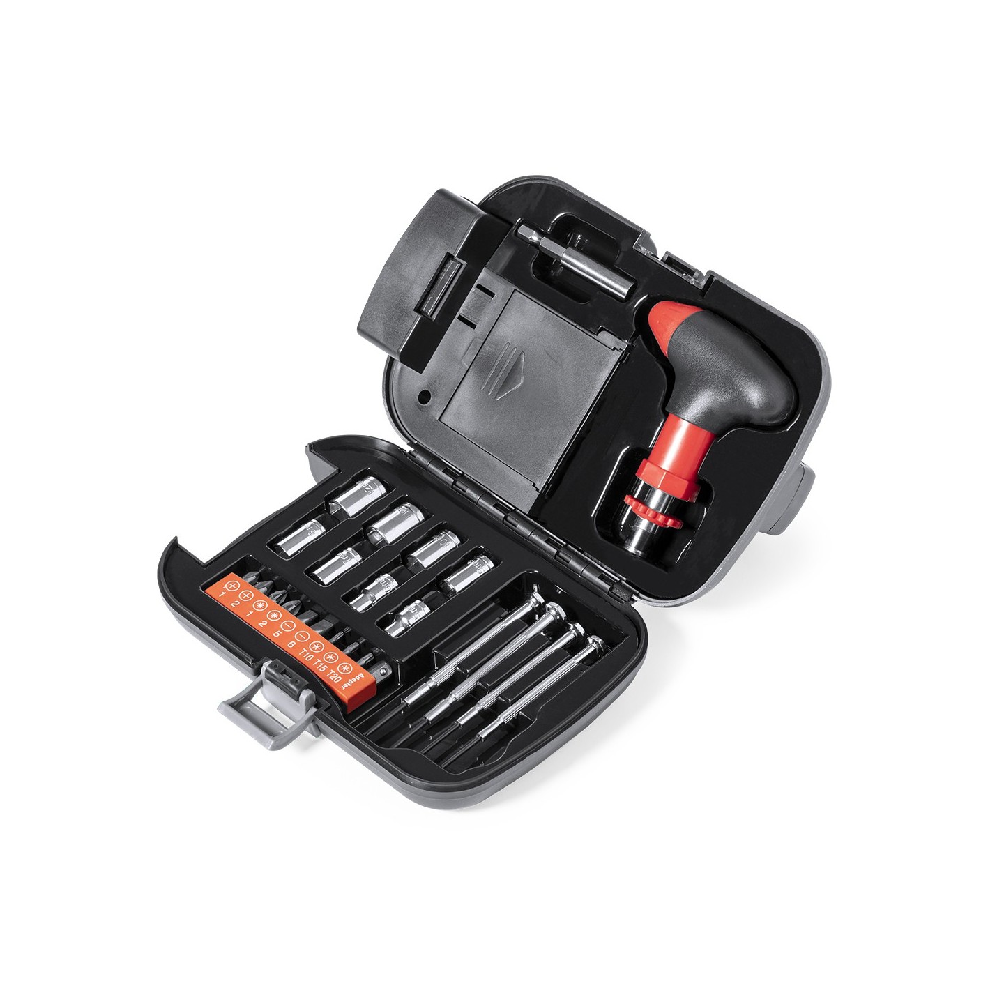 El Set Herramientas Vizcaya es perfecto para regalos personalizados, gracias a sus 24 accesorios y su práctico estuche con linterna LED. ¡Imprescindible para cualquier aficionado al bricolaje!