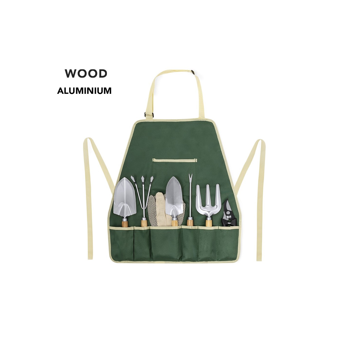 El Set Jardinería Kuruma viene con 7 accesorios y delantal ajustable. Ideal para amantes de la jardinería. Personalizable para promocionar tu marca.