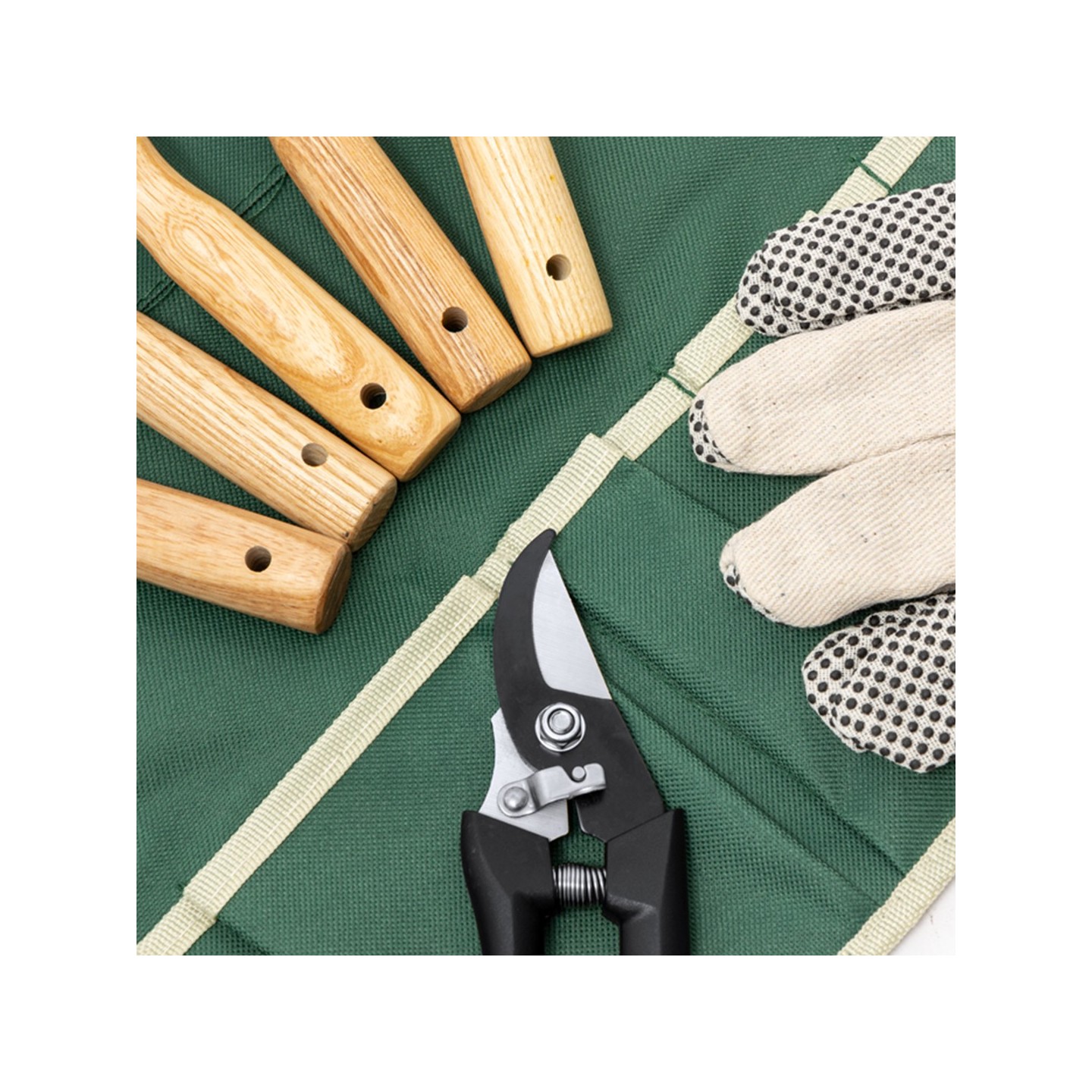 Para mayor comodidad, el set viene acompañado de un delantal ajustable con bolsillos, que te permite llevar contigo todas las herramientas necesarias mientras trabajas en tu jardín.