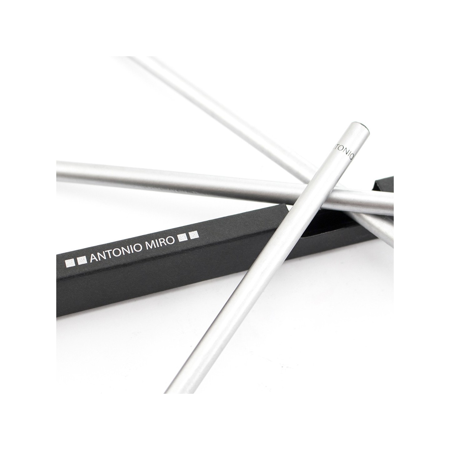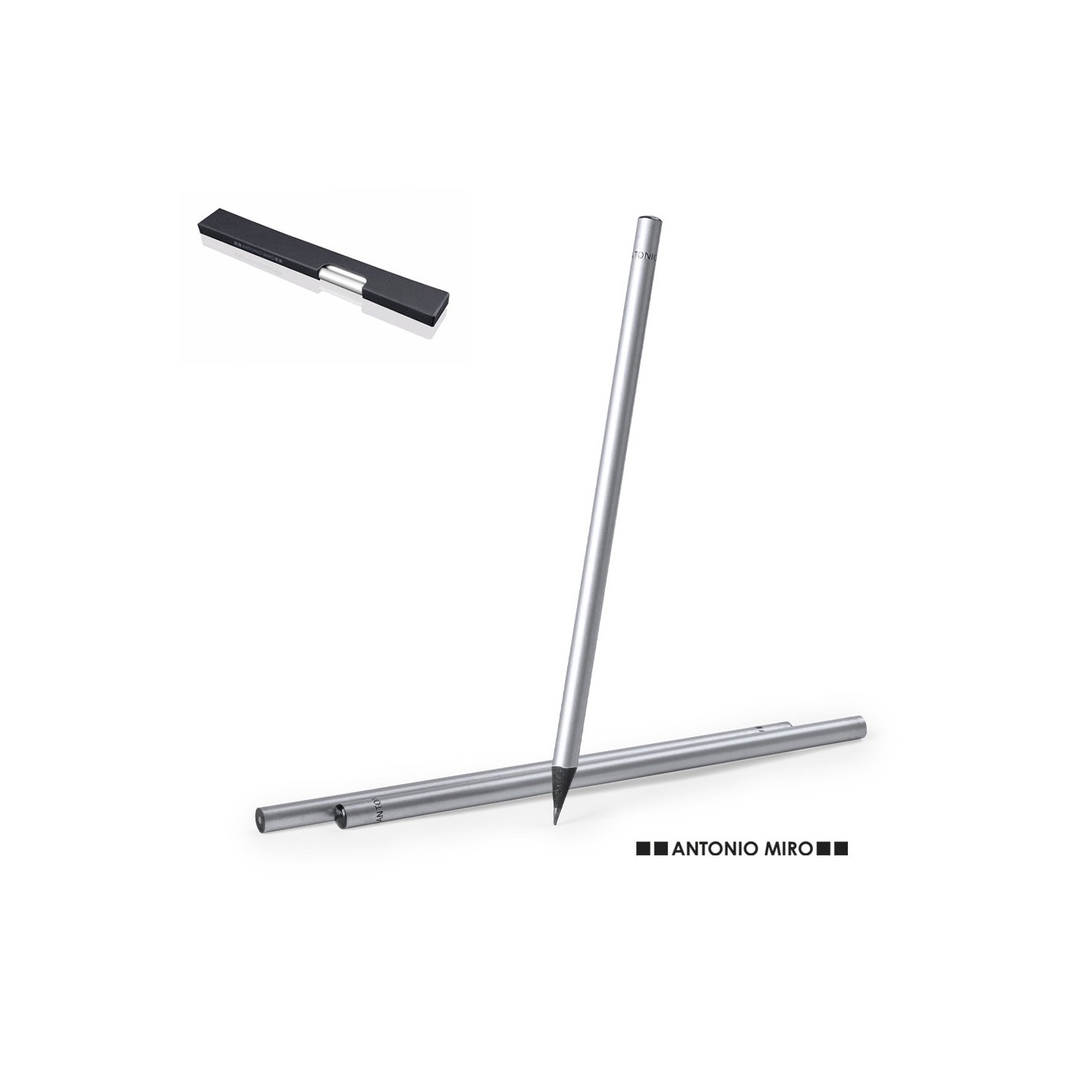 El set de lápices Sentel incluye tres lápices de madera plateados de Antonio Miró en un estuche elegante de cartón negro. Regalo personalizado para empresas.