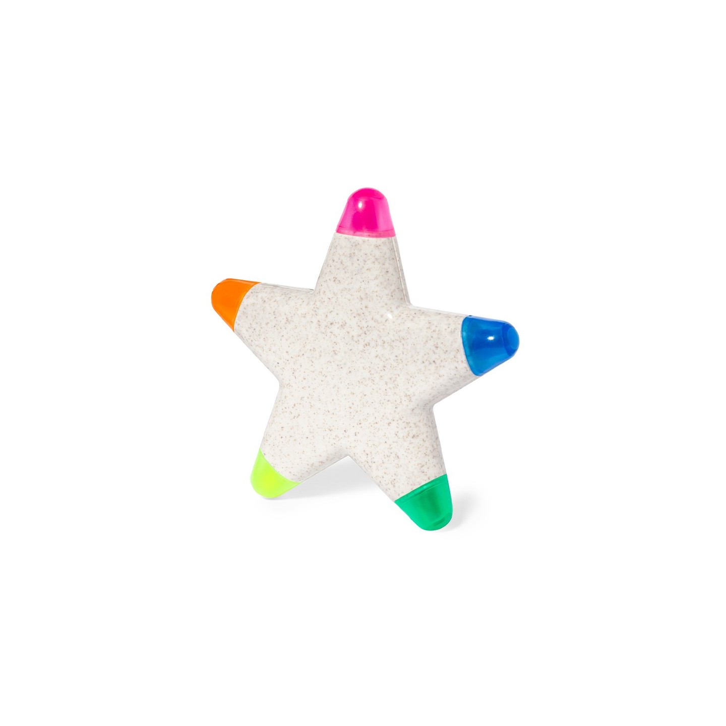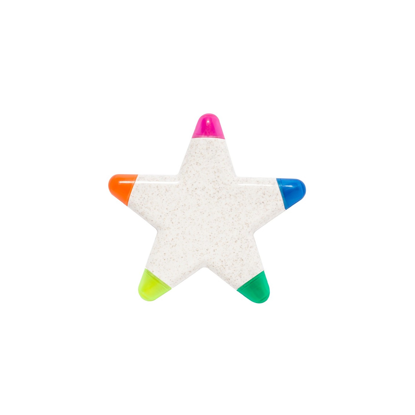 Los Marcadores Pentar son fluorescentes y vienen en un conjunto de cinco colores vibrantes, fabricados en caña de trigo, una materia prima natural que promueve la sostenibilidad ambiental. Su diseño único incluye un cuerpo en forma de estrella con un acabado brillante, especialmente diseñado para un marcaje a todo color que resalte tus mensajes de manera llamativa y creativa.
