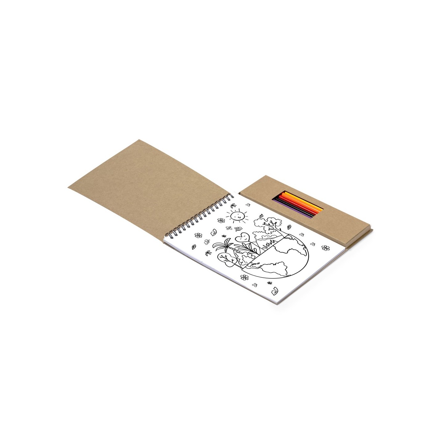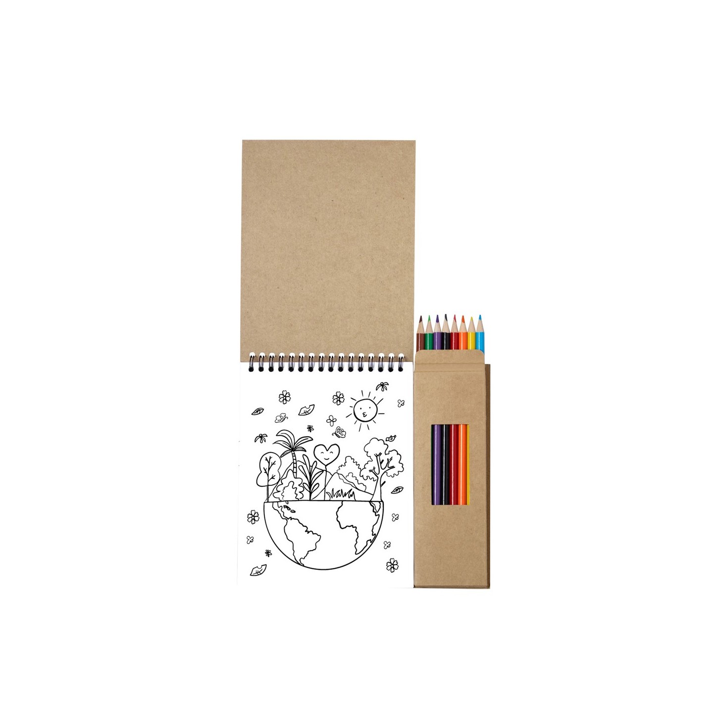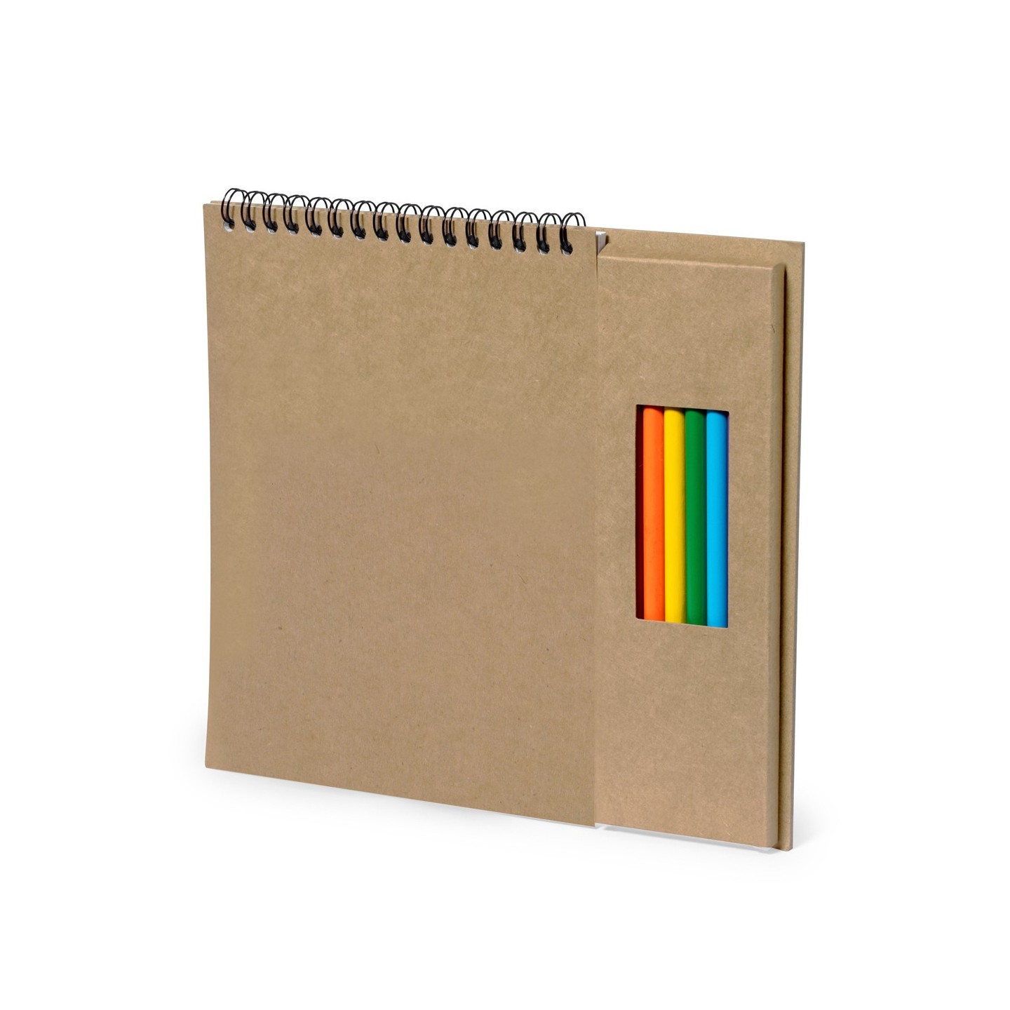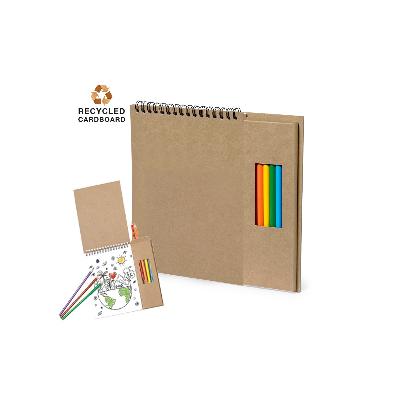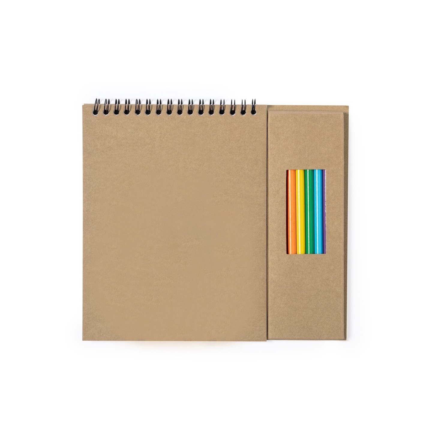 El Set Mertens consta de un estuche con 8 lápices hexagonales y bloc de notas en cartón reciclado. ¡Ideal para fomentar la creatividad! Personalizable.