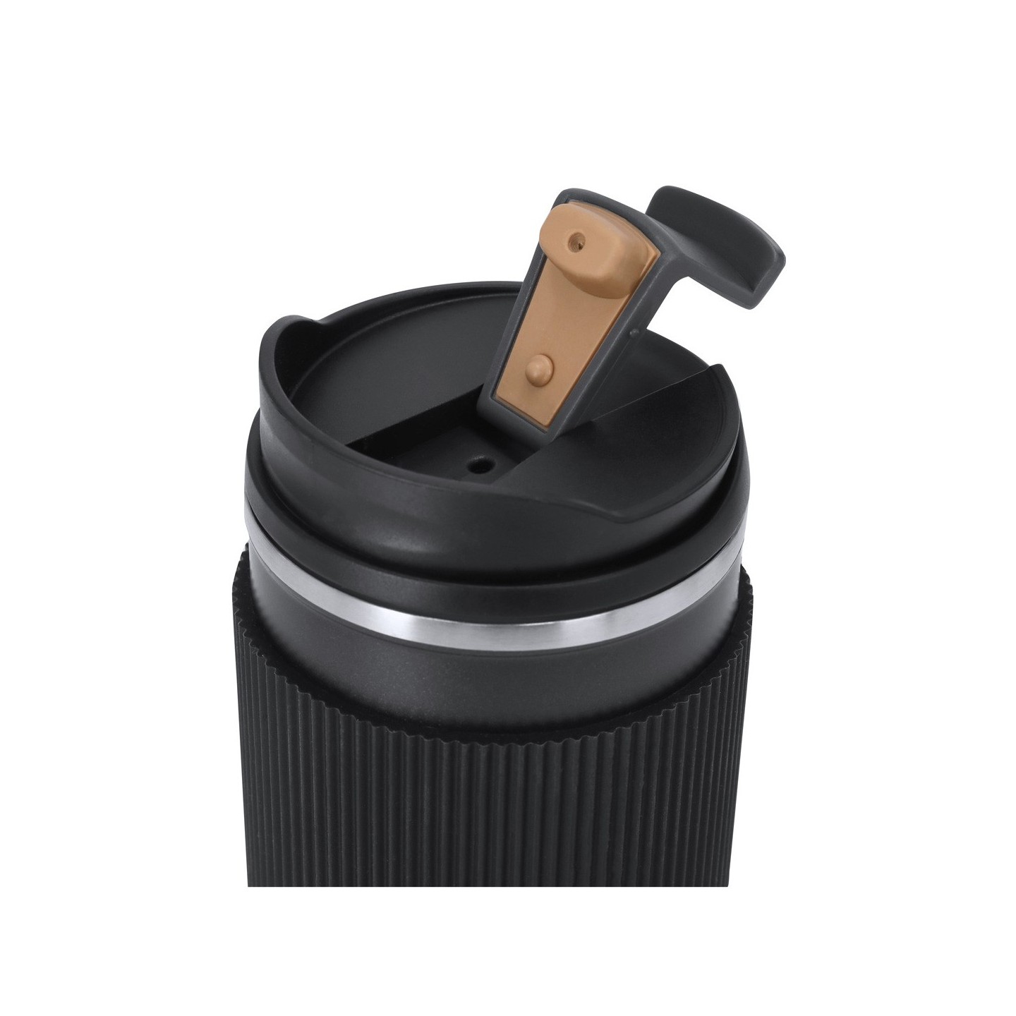 El vaso térmico, fabricado en acero inoxidable de doble pared con una capacidad de 470 ml, es ideal para mantener tus bebidas a la temperatura perfecta. Su diseño incluye un dosificador en la tapadera, libre de BPA, y un sistema de apertura fácil que facilita su uso en cualquier momento. La banda de silicona a juego no solo añade un toque estético, sino que también proporciona un agarre seguro, mientras que la base antideslizante asegura estabilidad en diversas superficies.