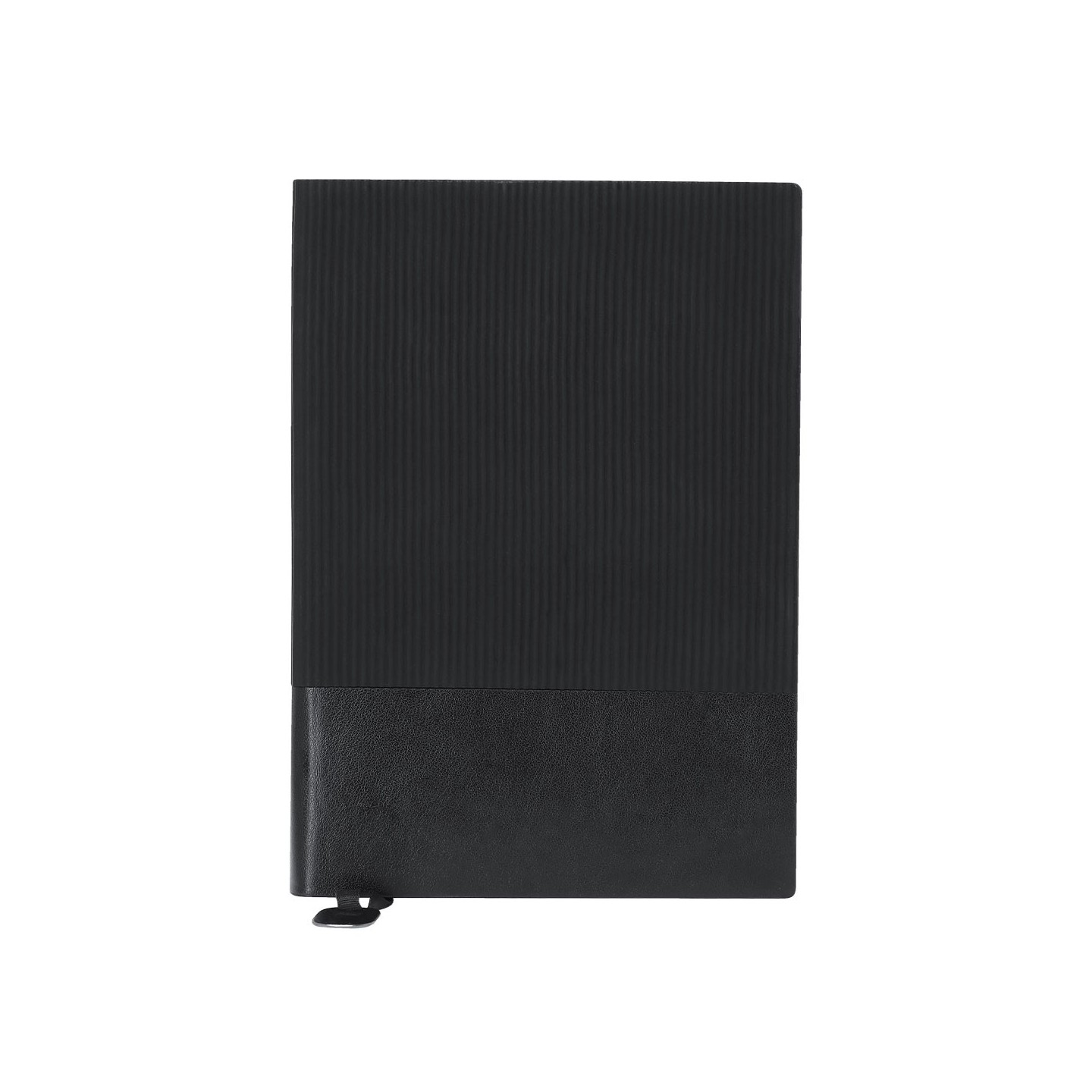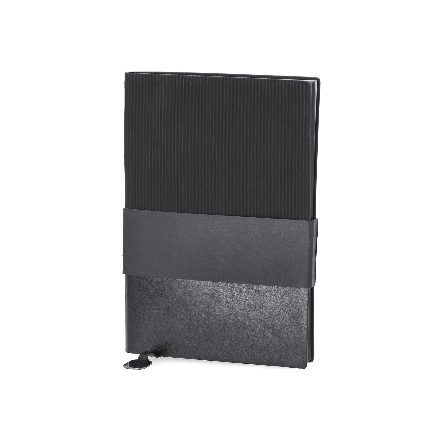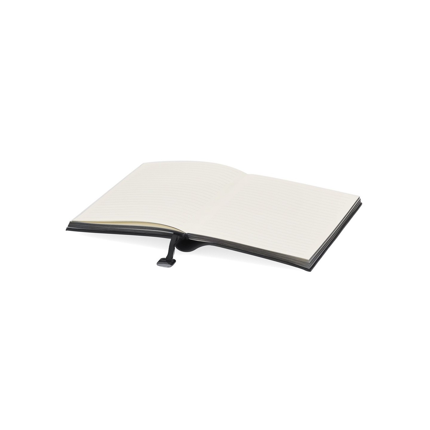 El bloc de notas complementa perfectamente el set, con tapas blandas fabricadas en elegante PU color negro. Su diseño exclusivo combina texturas lisas y biseladas, lo que lo convierte en un accesorio atractivo y funcional. Incluye un marcapáginas de tela con un accesorio metálico especial para marcaje en láser, añadiendo un toque personalizado. El interior cuenta con 100 hojas de color crema, dispuestas a una raya y con bordes en negro, ofreciendo una experiencia de escritura agradable y organizada.