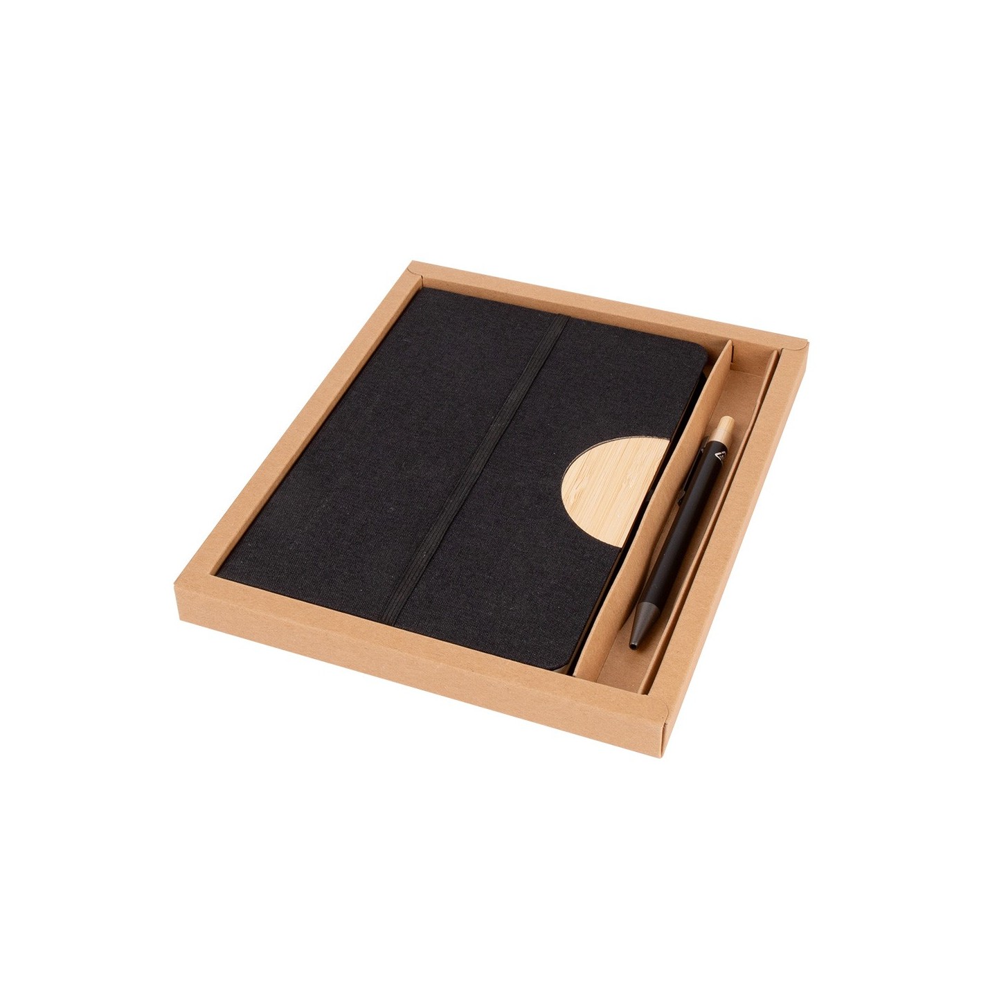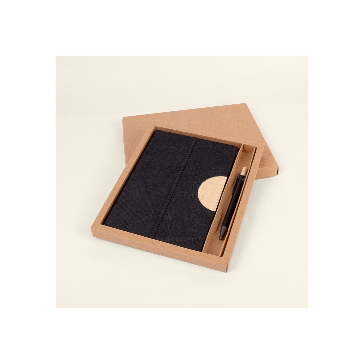 El Set MITTEL es la opción perfecta para empresas que buscan regalos promocionales con un enfoque ecológico, funcional y elegante. Este conjunto incluye una libreta fabricada en RPET, un material innovador hecho a partir de botellas de plástico recicladas, lo que lo convierte en una opción respetuosa con el medio ambiente sin sacrificar calidad ni estilo. La libreta es ideal para ser personalizada con el logotipo de la empresa, transformándola en un obsequio único y memorable para clientes, empleados y socios.