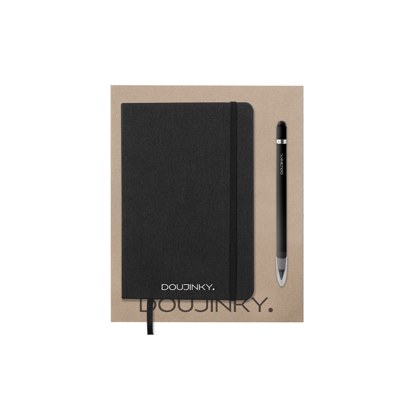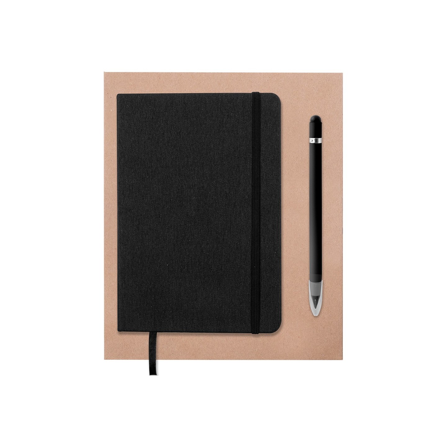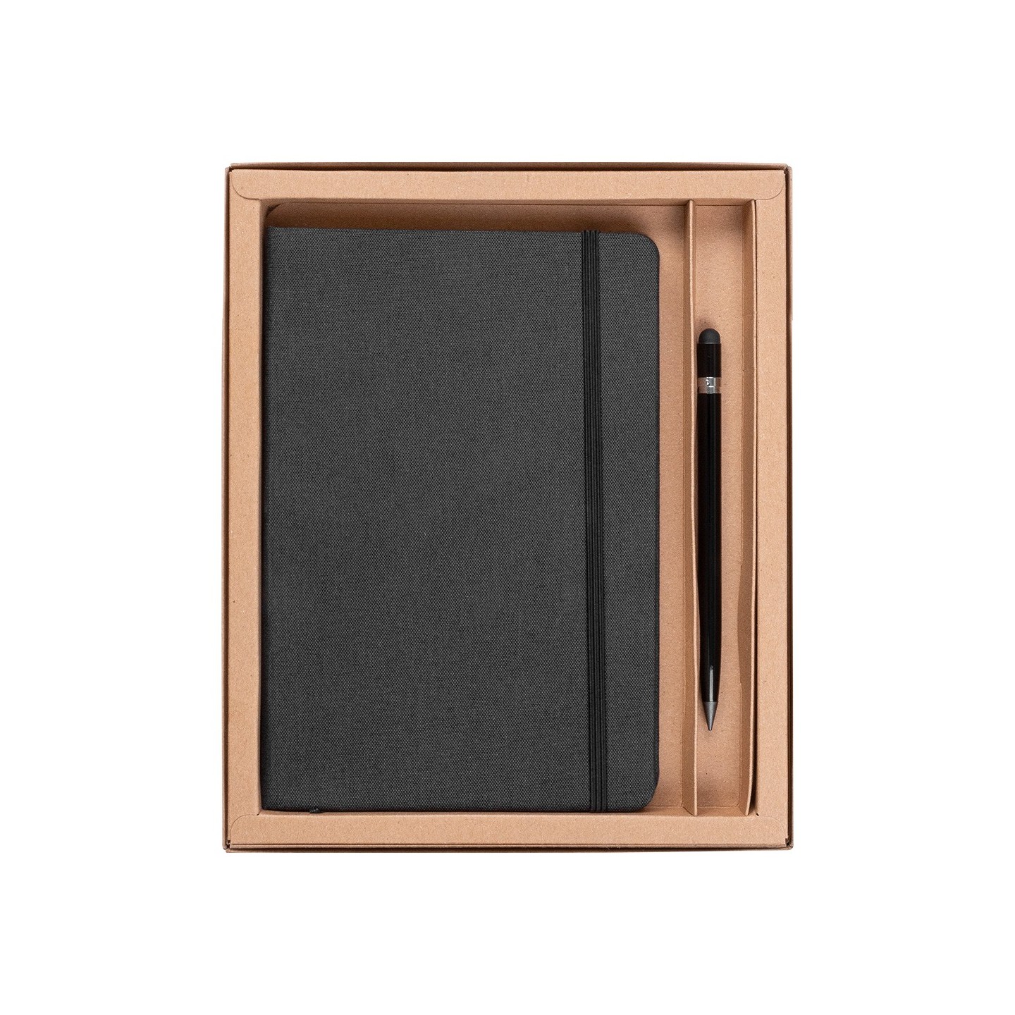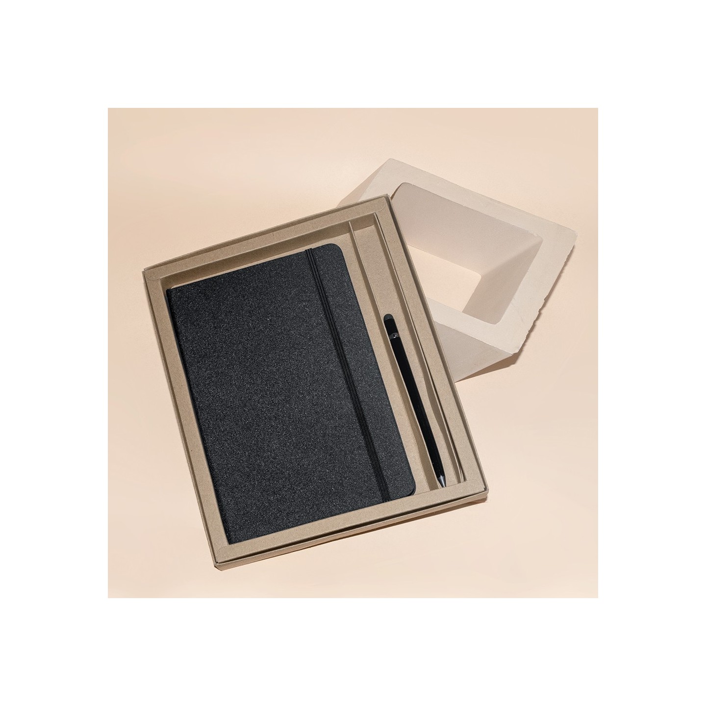 El Set Nightfall viene con una libreta RPET y bolígrafo aluminio reciclado en caja kraft. Personalizable. Ideal para regalos eco-friendly.