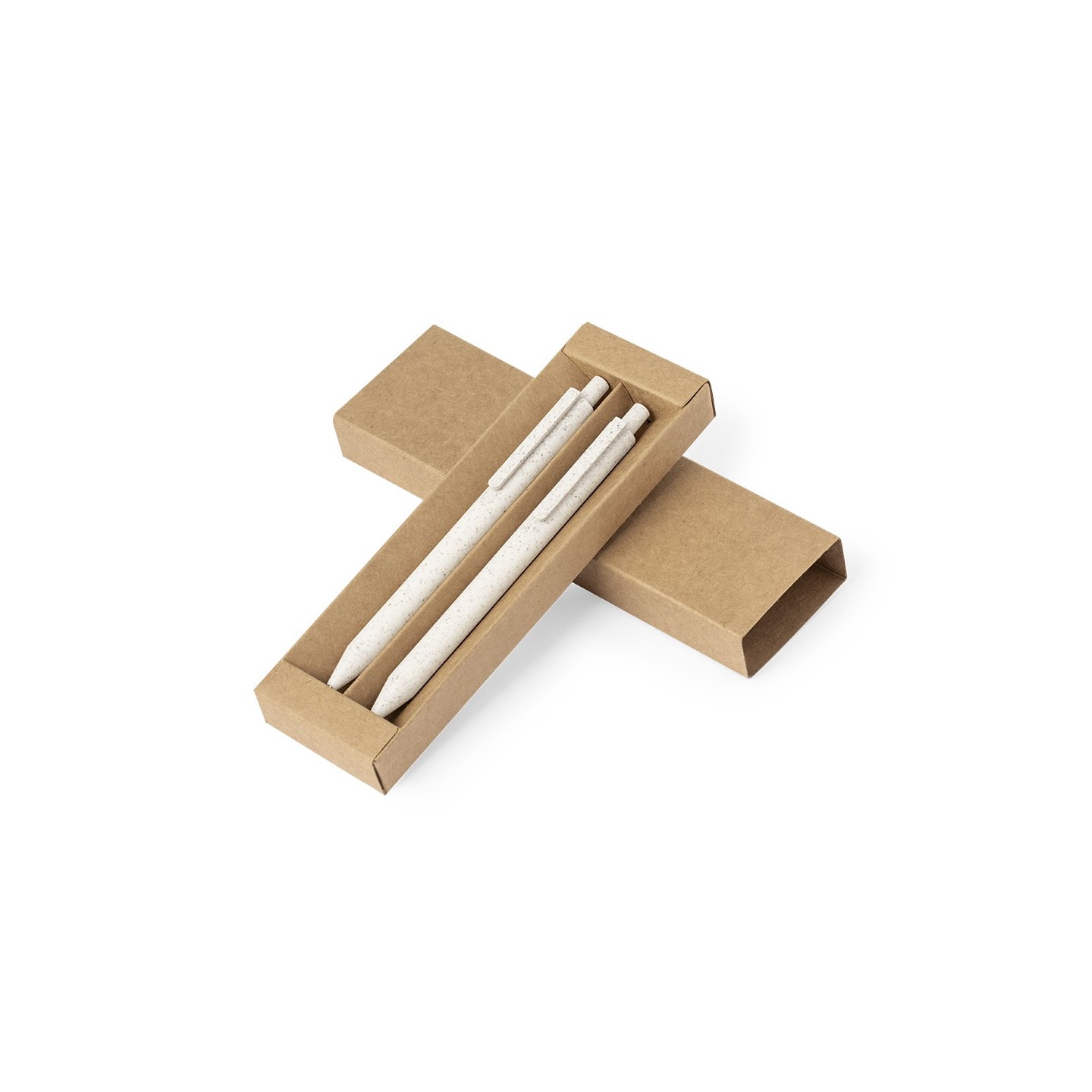 Ambos elementos del set presentan un clip que complementa su diseño y permite sujetarlos fácilmente a cuadernos, agendas o bolsillos. Además, en la parte superior tanto del bolígrafo como del portaminas, encontrarás el logotipo Wheat Straw, que identifica el uso de caña de trigo en su fabricación.