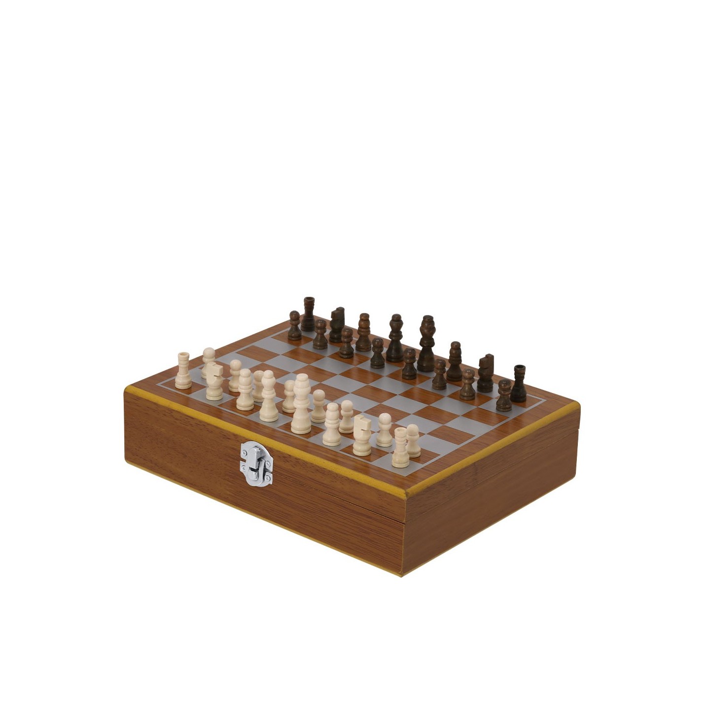 Además de los elementos para disfrutar de una bebida y un buen juego, el Set Petaca MENZIE incorpora un juego de ajedrez completo, con 16 piezas de color beige y 16 piezas de color marrón. Esto convierte al set en un regalo multifuncional que no solo será útil para disfrutar de un trago, sino también para quienes aprecian una buena partida de ajedrez. Este set es ideal para empresas que buscan regalar algo exclusivo, personalizable con logotipo, y que combine elegancia, entretenimiento y practicidad en un solo producto. Perfecto para eventos especiales, regalos corporativos o momentos de ocio con estilo.