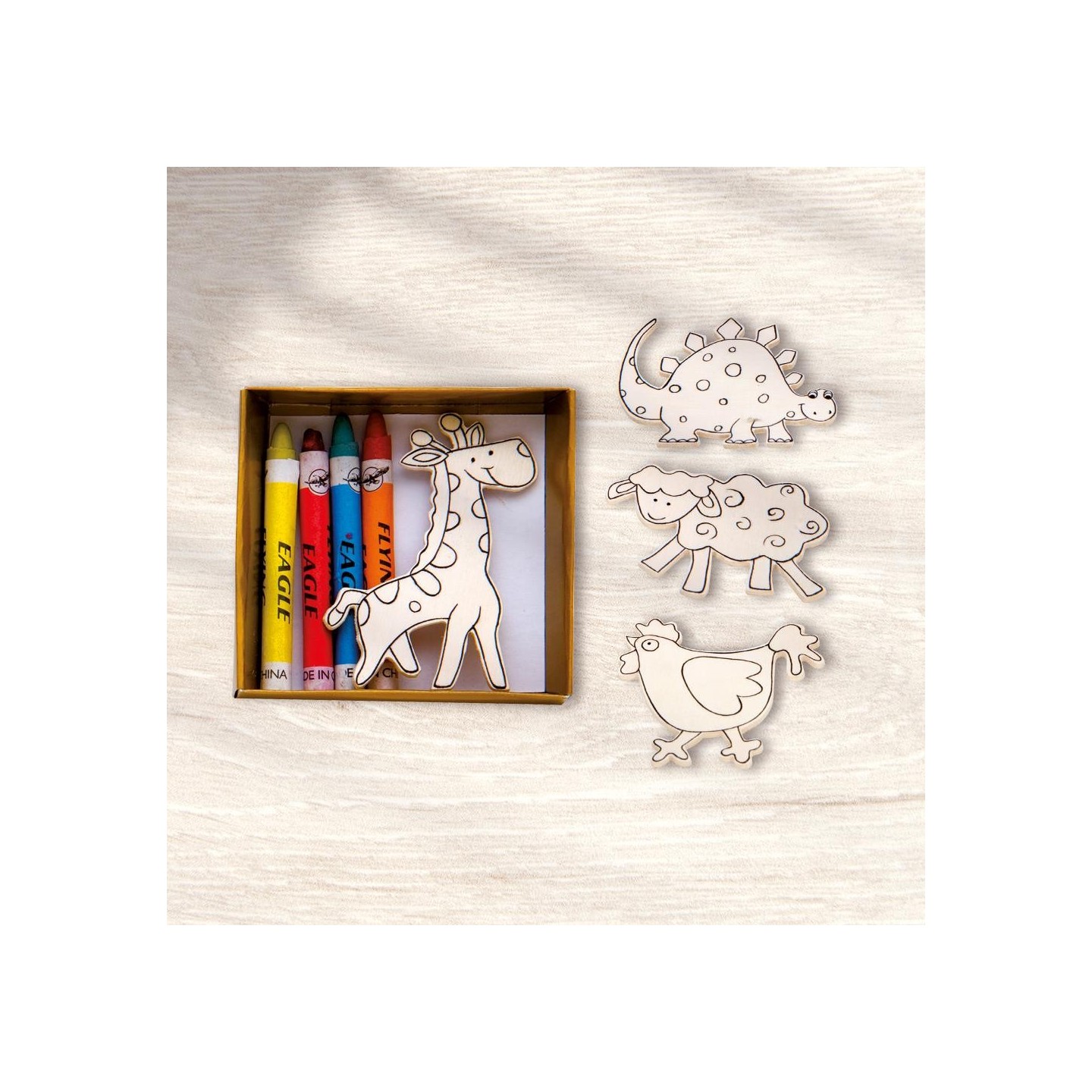 El Set Pinturas Iman Safariet consta de 4 imanes de madera con ceras para personalizar. Diviértete decorando y exhibe tus creaciones con estilo y seguridad.