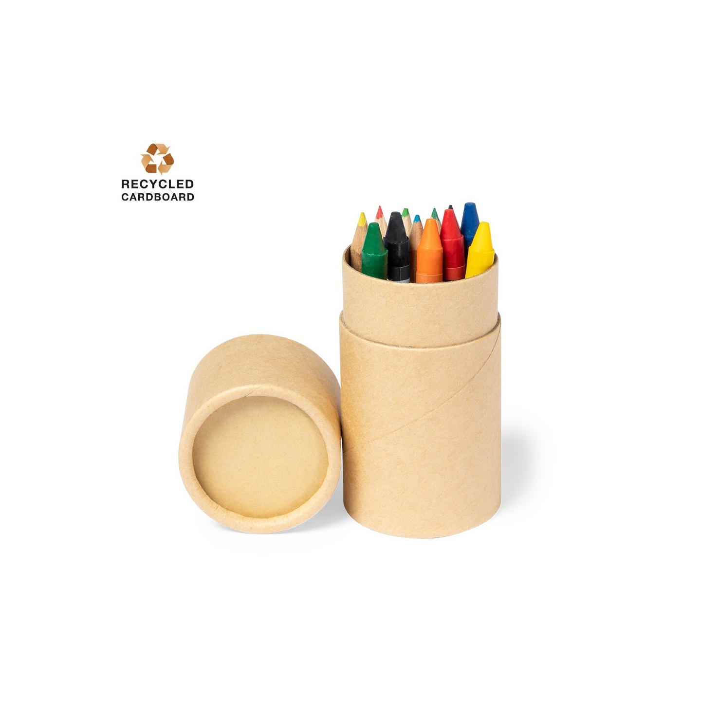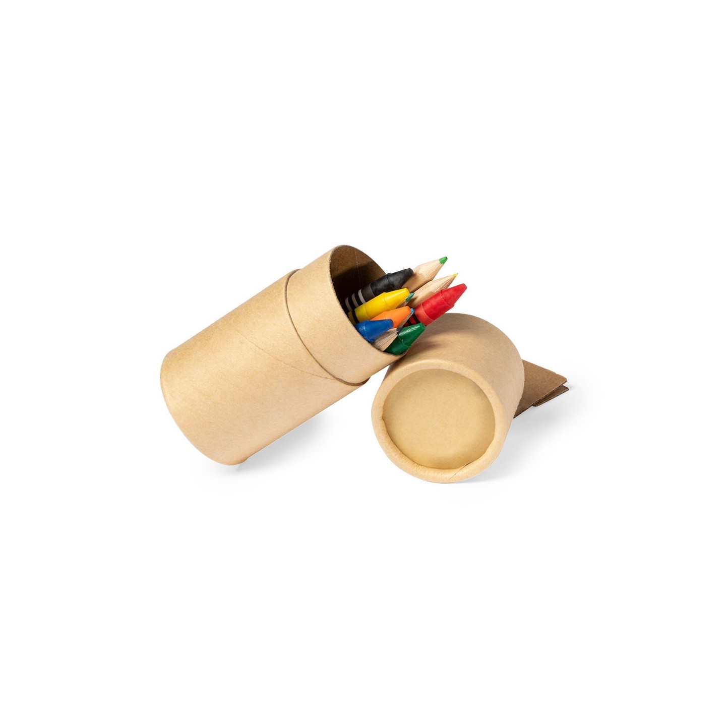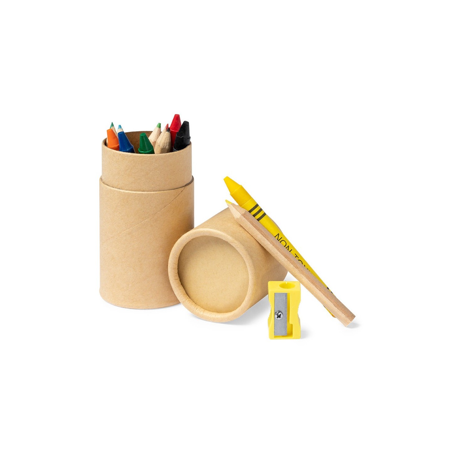 El set Pixi trata de un estuche cilíndrico con 6 lápices de colores, sacapuntas y 6 ceras vibrantes. Ideal para la creatividad y regalos personalizados.