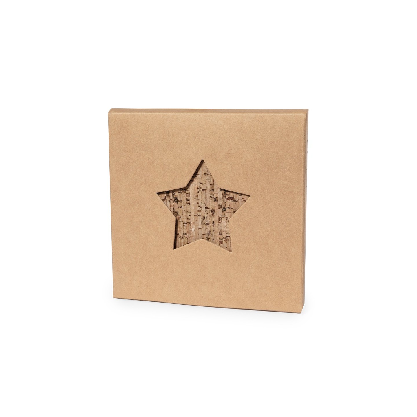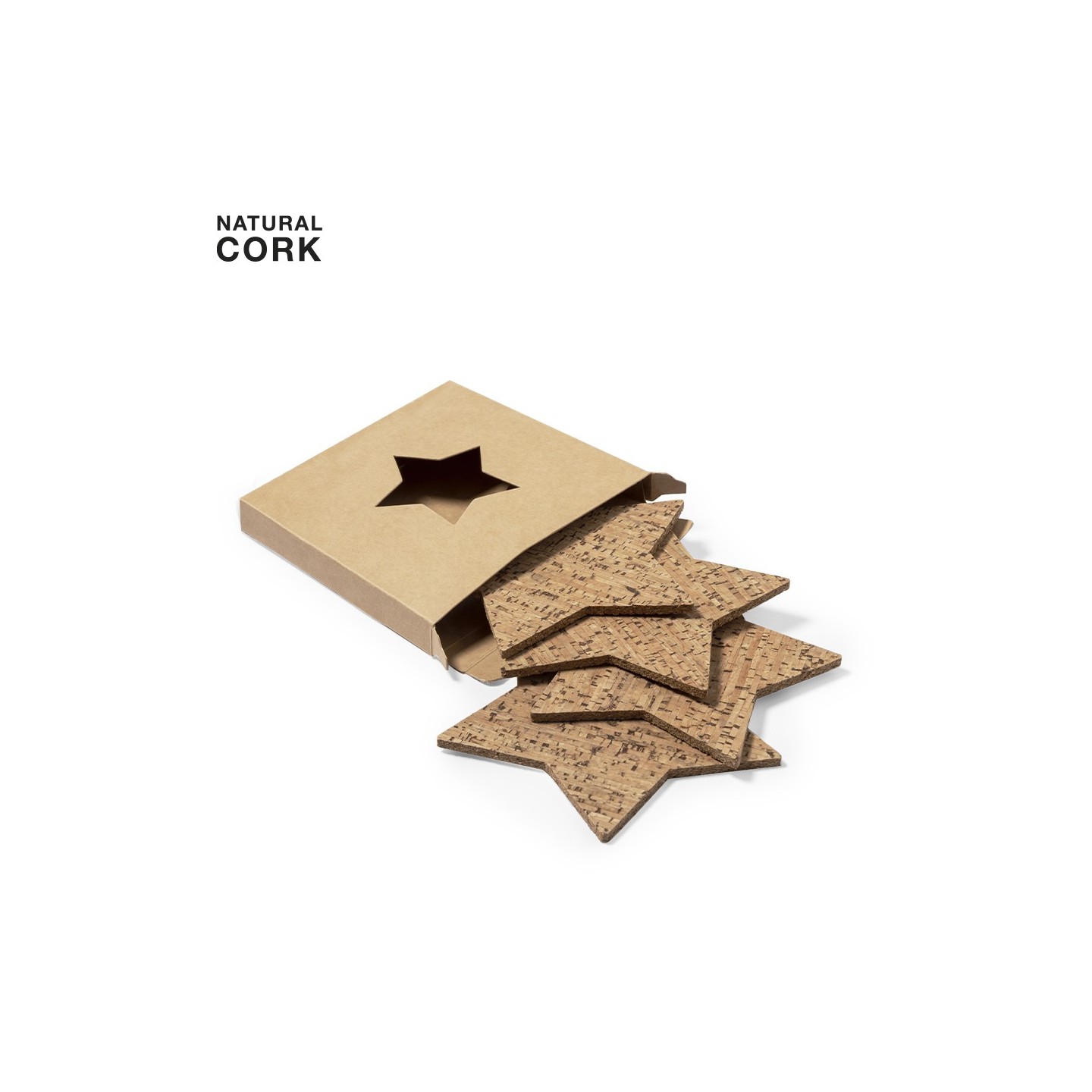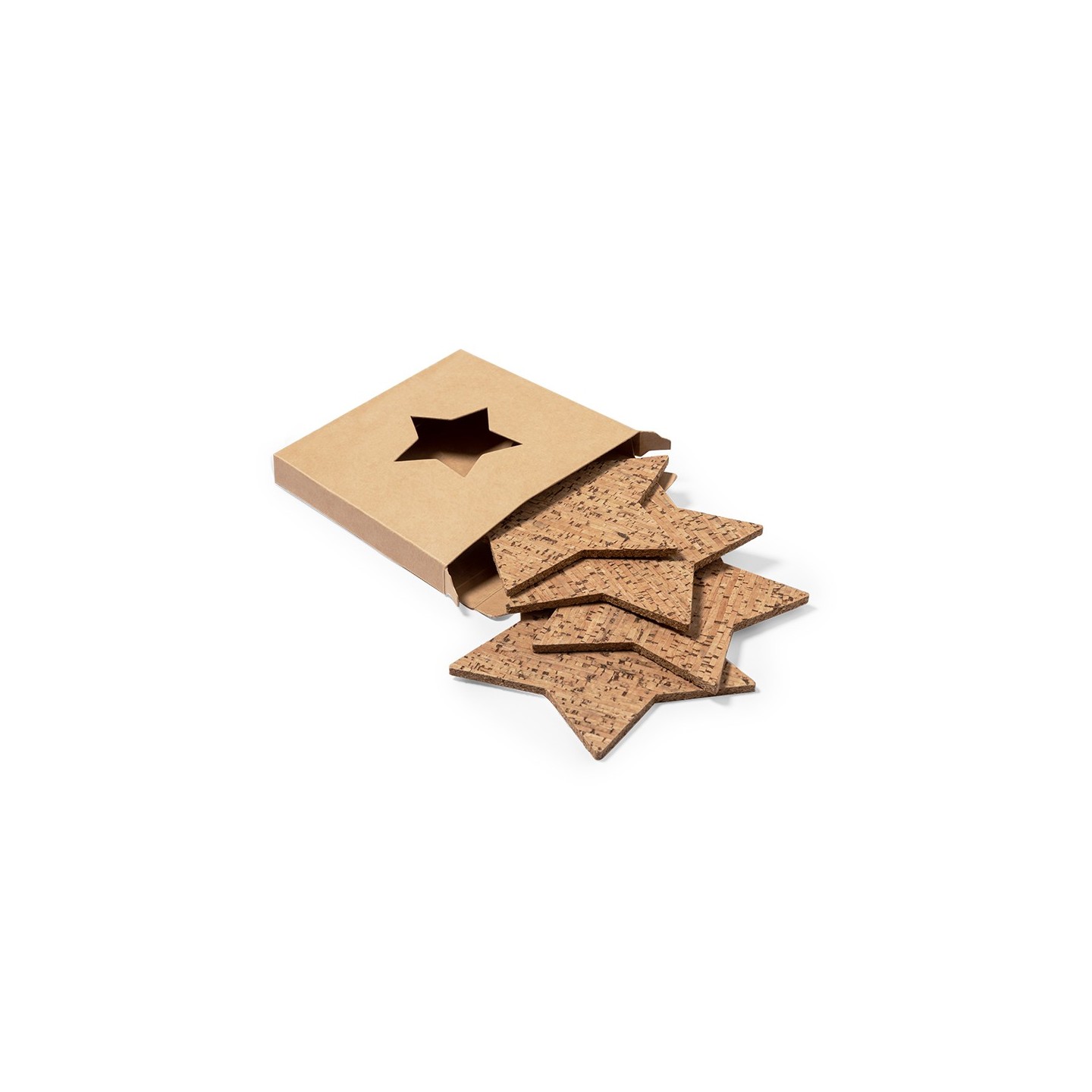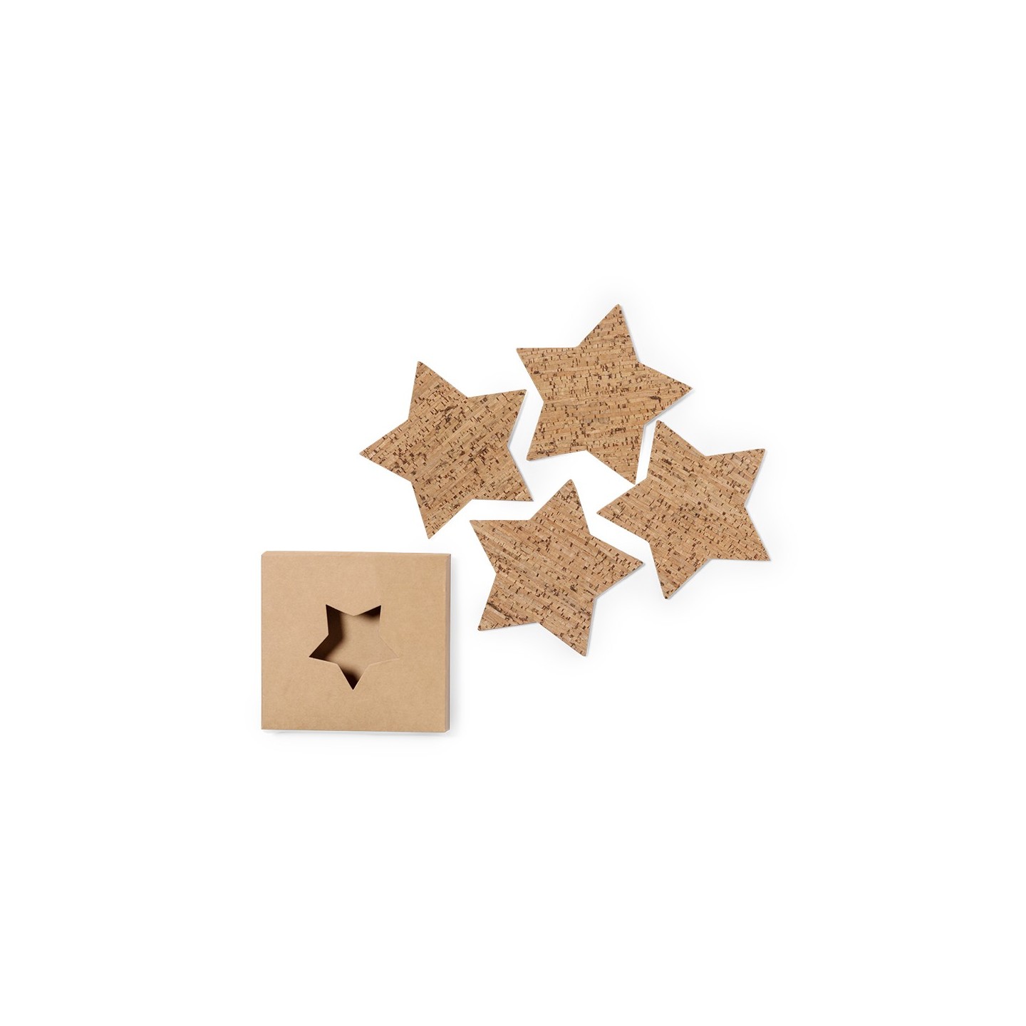 El Set Posavasos Danop consta de 4 posavasos en corcho con forma de estrella, presentados en elegante caja de diseño kraft, ideal como regalo o para tu mesa.