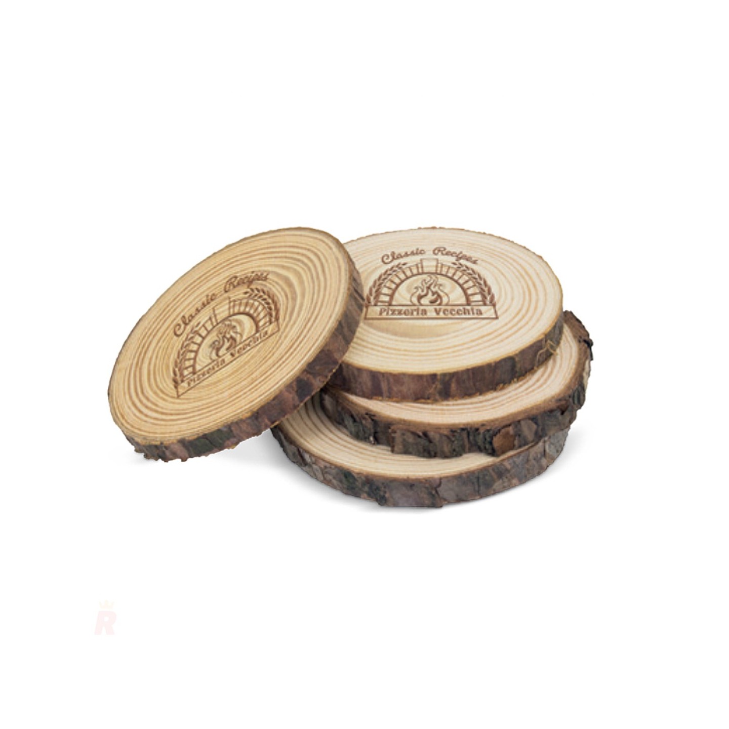 Set de posavasos de madera natural con estilo rústico. Texturas únicas, presentación individual y acabado auténtico. Ideal para decoración y obsequios