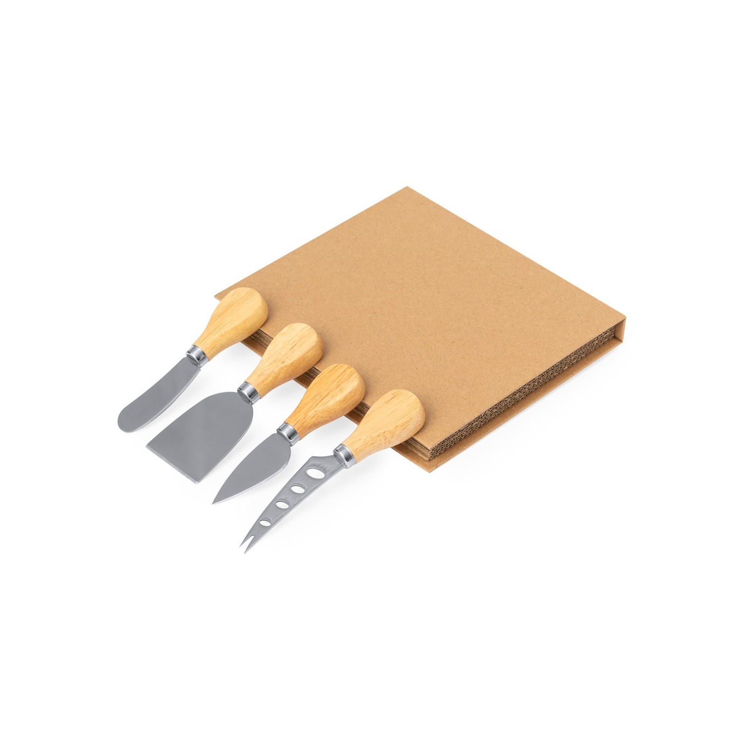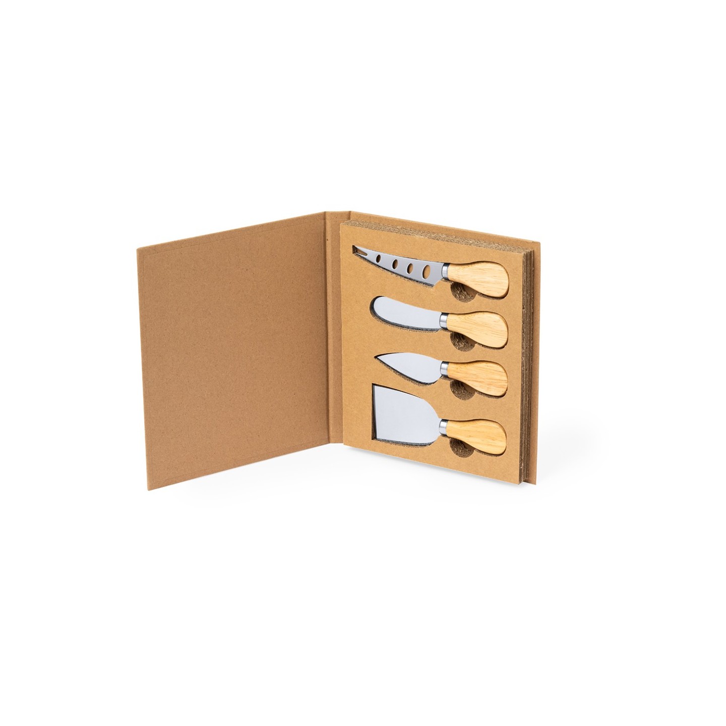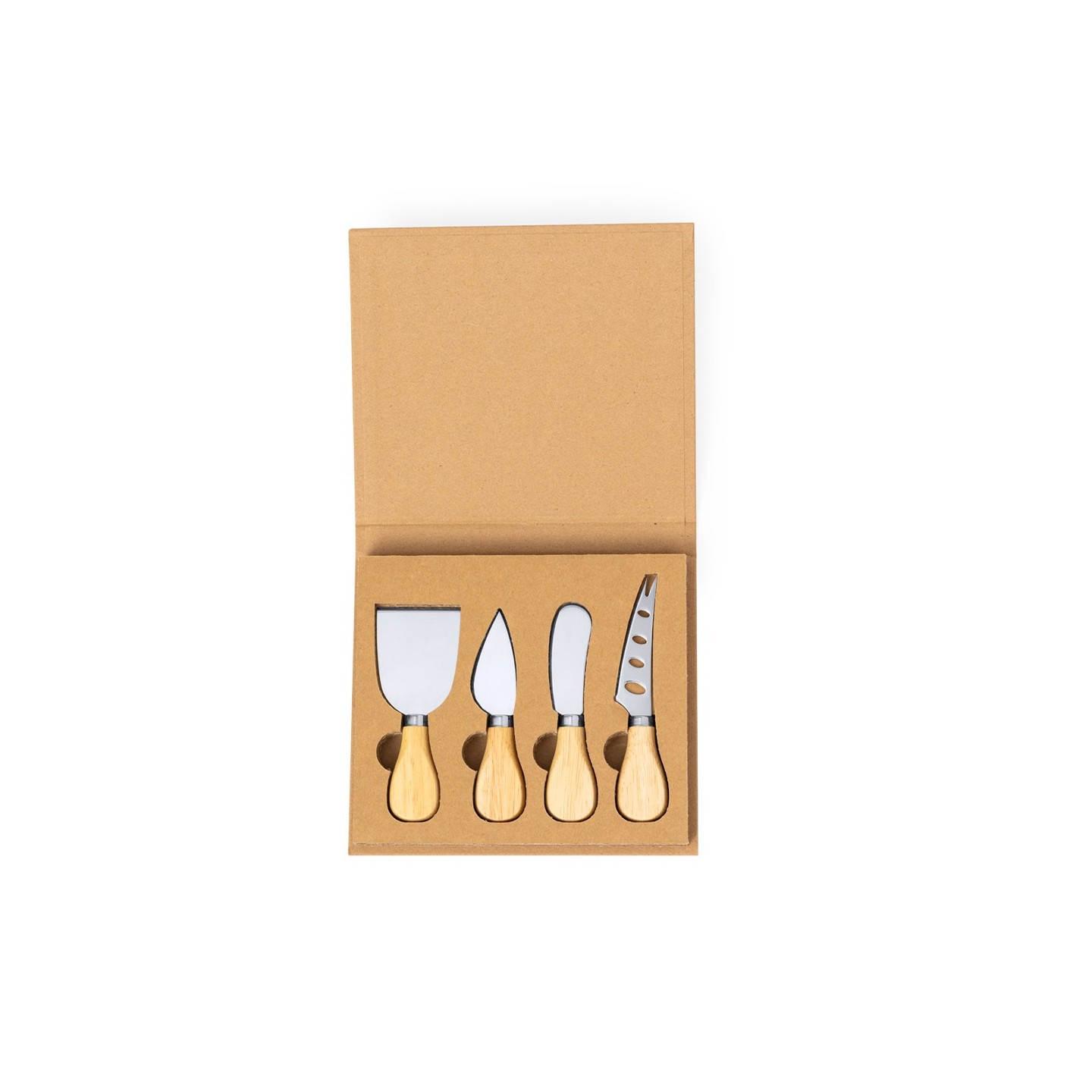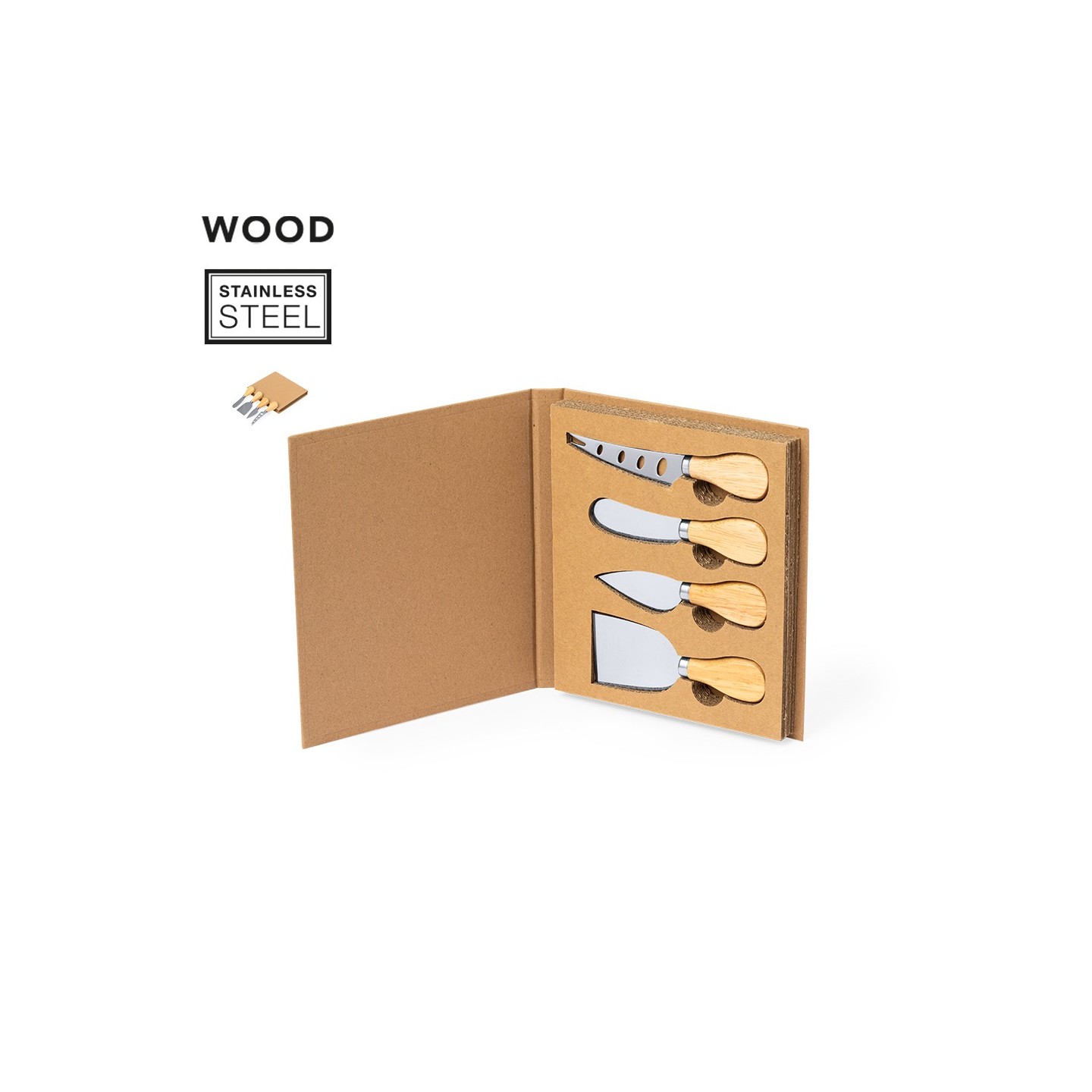 El Set de Quesos Kubin es elegante y funcional, fabricado en madera y acero inoxidable. Ideal para regalos empresariales, personalizable con tu logotipo