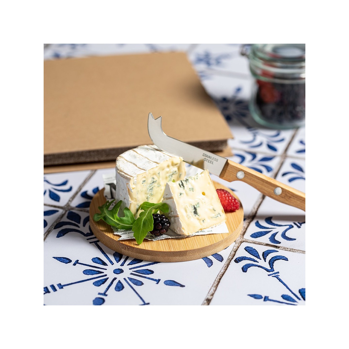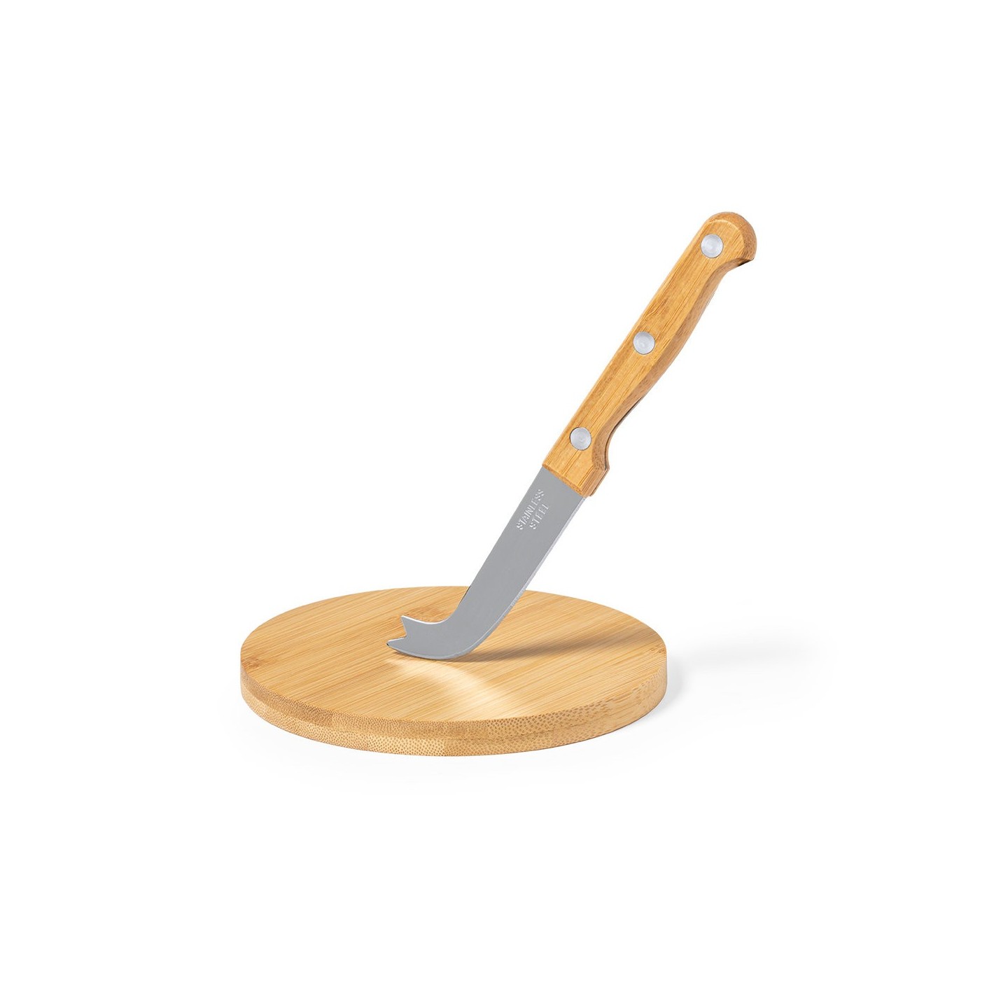 Incluye una tabla de corte y presentación redonda, ideal para mostrar tus quesos favoritos de manera atractiva. Además, cuenta con un cuchillo especial para queso, diseñado específicamente para cortar y servir de forma precisa.