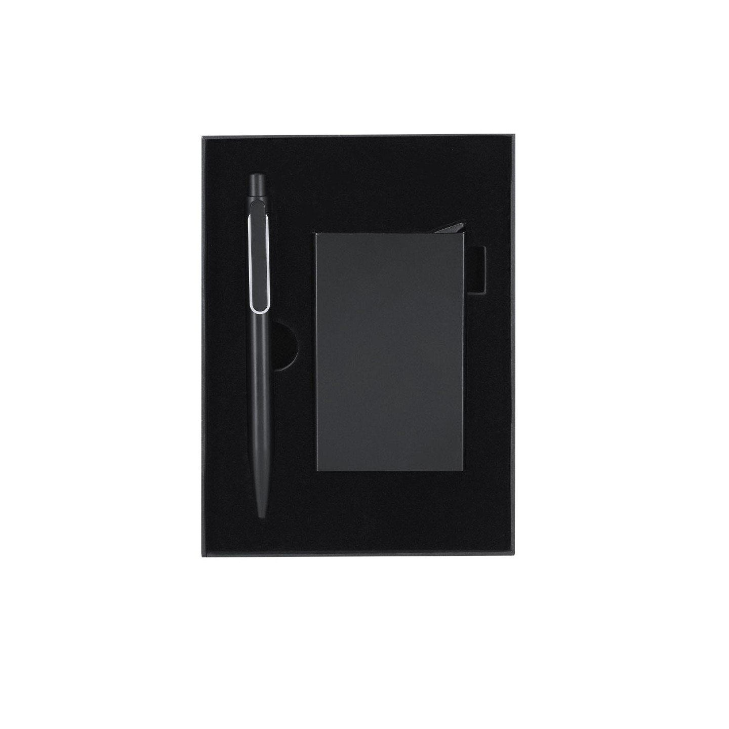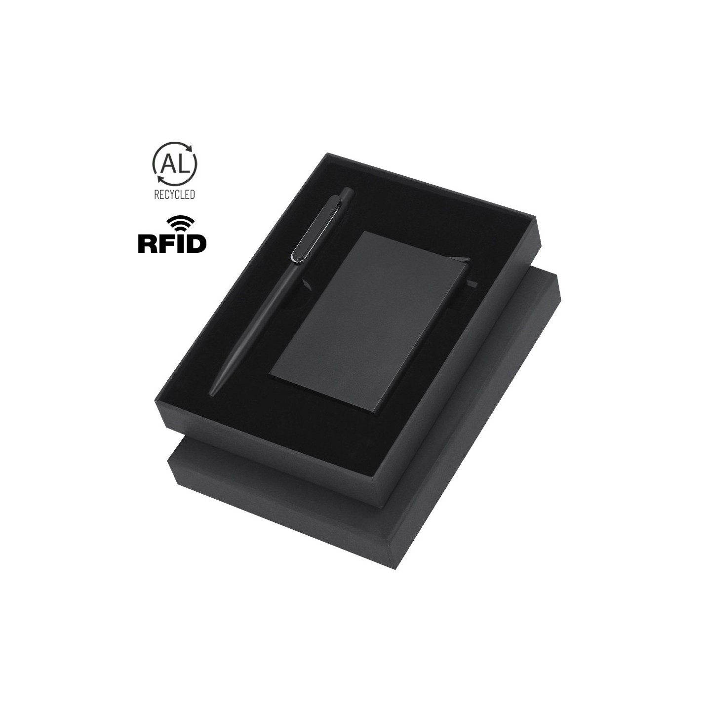 Set Randolph: bolígrafo y tarjetero en Aluminio Reciclado con mecanismo pulsador y tecnología RFID. Personalizable, elegante y eco-friendly. Ideal para empresas.