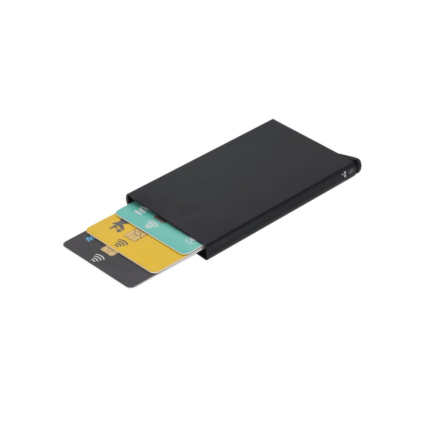 El tarjetero, también fabricado en Aluminio Reciclado, tiene capacidad para 6 tarjetas y está diseñado con tecnología RFID para proteger la información personal de las tarjetas. Su mecanismo pulsador facilita la extracción rápida y segura de las tarjetas, añadiendo una capa extra de comodidad y seguridad.