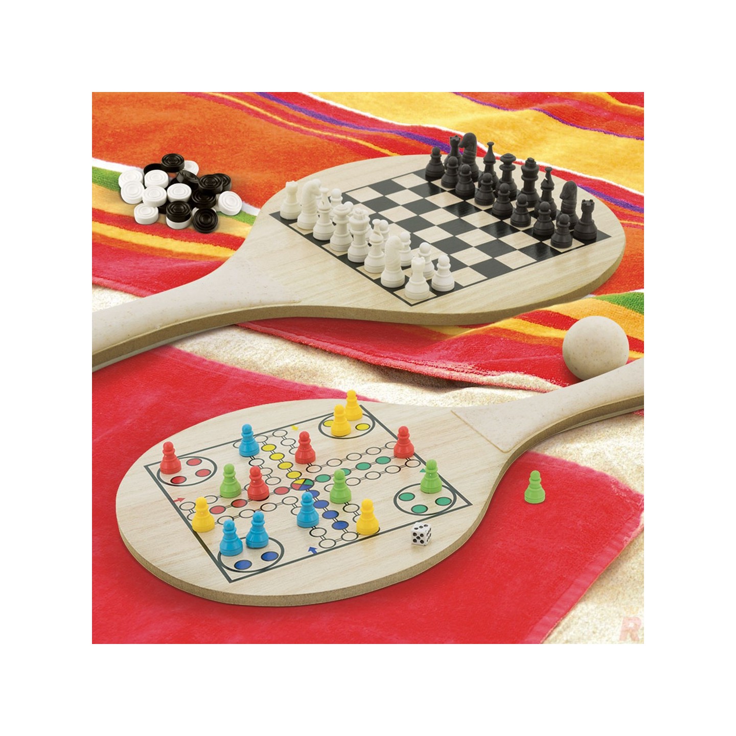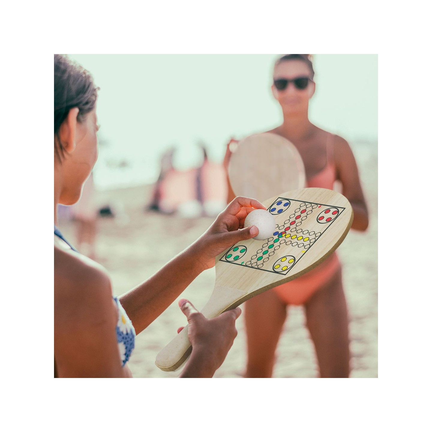 Lo que hace único a este set es su diseño multifuncional: por un lado de cada raqueta encontrarás un juego de ajedrez, mientras que por el otro lado se presenta un clásico juego de parchís. ¡Diversión asegurada para todas las edades!