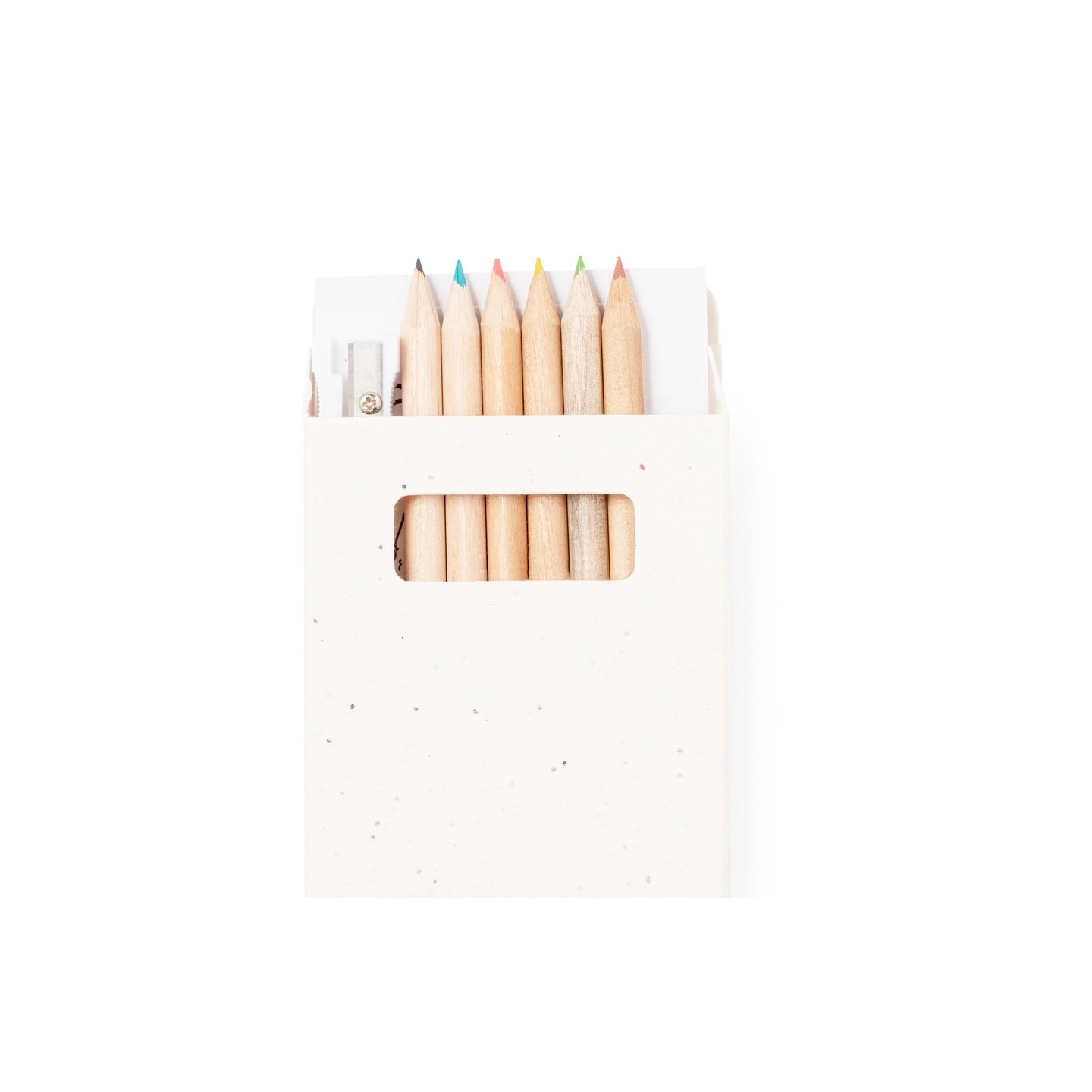 Además de los lápices, el set viene acompañado de plantillas para colorear y un práctico sacapuntas, todo presentado en una caja de cartón natural. Pero lo que hace que este set sea verdaderamente especial es que la caja contiene semillas de petunia, convirtiéndola en cartón plantable al final de su vida útil.