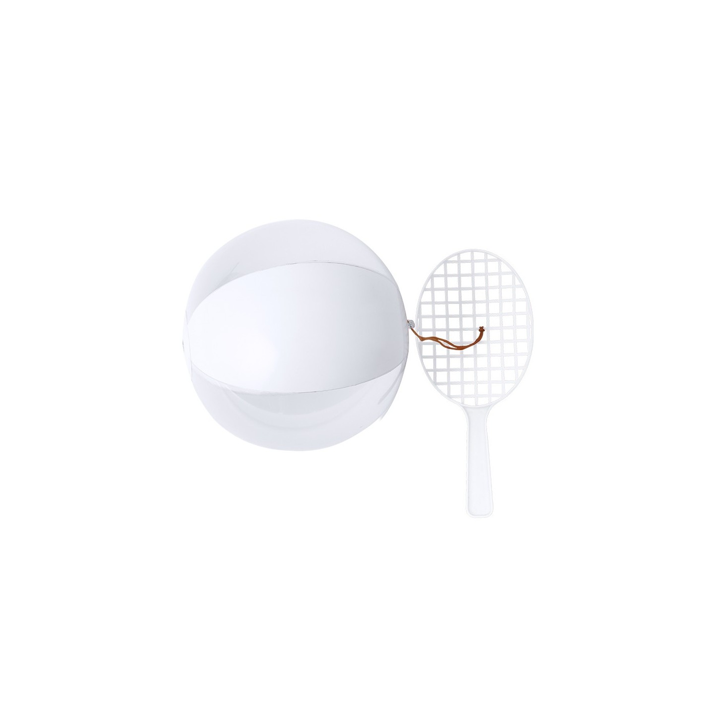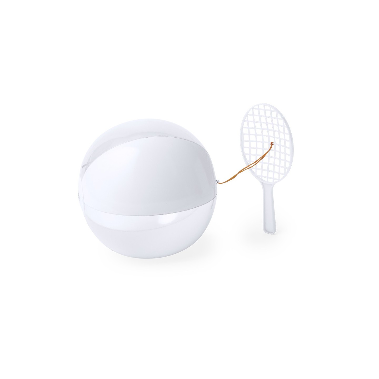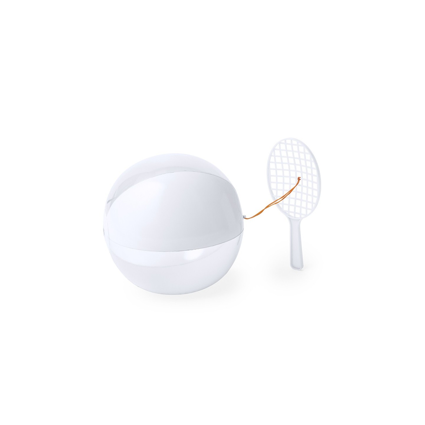El Set Skippy se compone de una raqueta y balón en blanco y translúcido. Divertido y versátil. Personalizable con tu logo