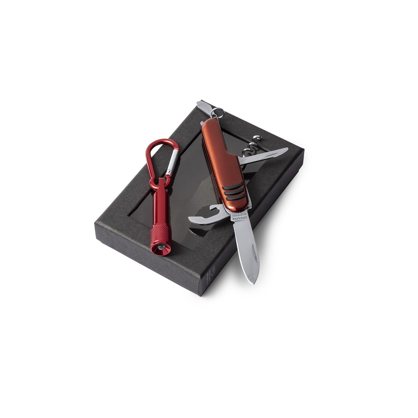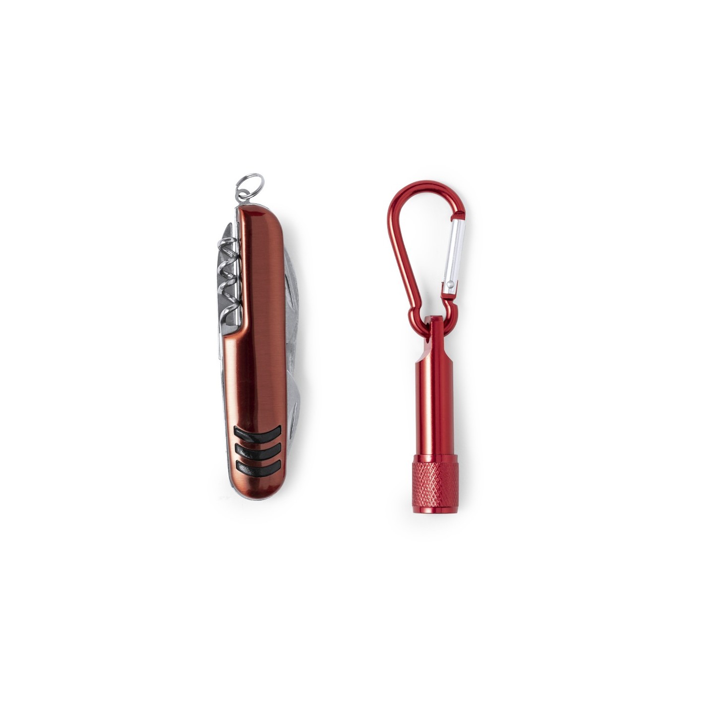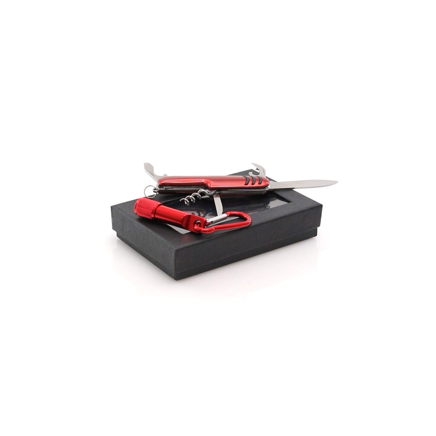 Descubre el Set Sufli, el compañero perfecto para tus aventuras al aire libre. Este set incluye una navaja multiusos de aluminio con 7 funciones, que te brinda la versatilidad necesaria en cualquier situación. Además, viene acompañada de una práctica linterna mosquetón para iluminar tu camino.