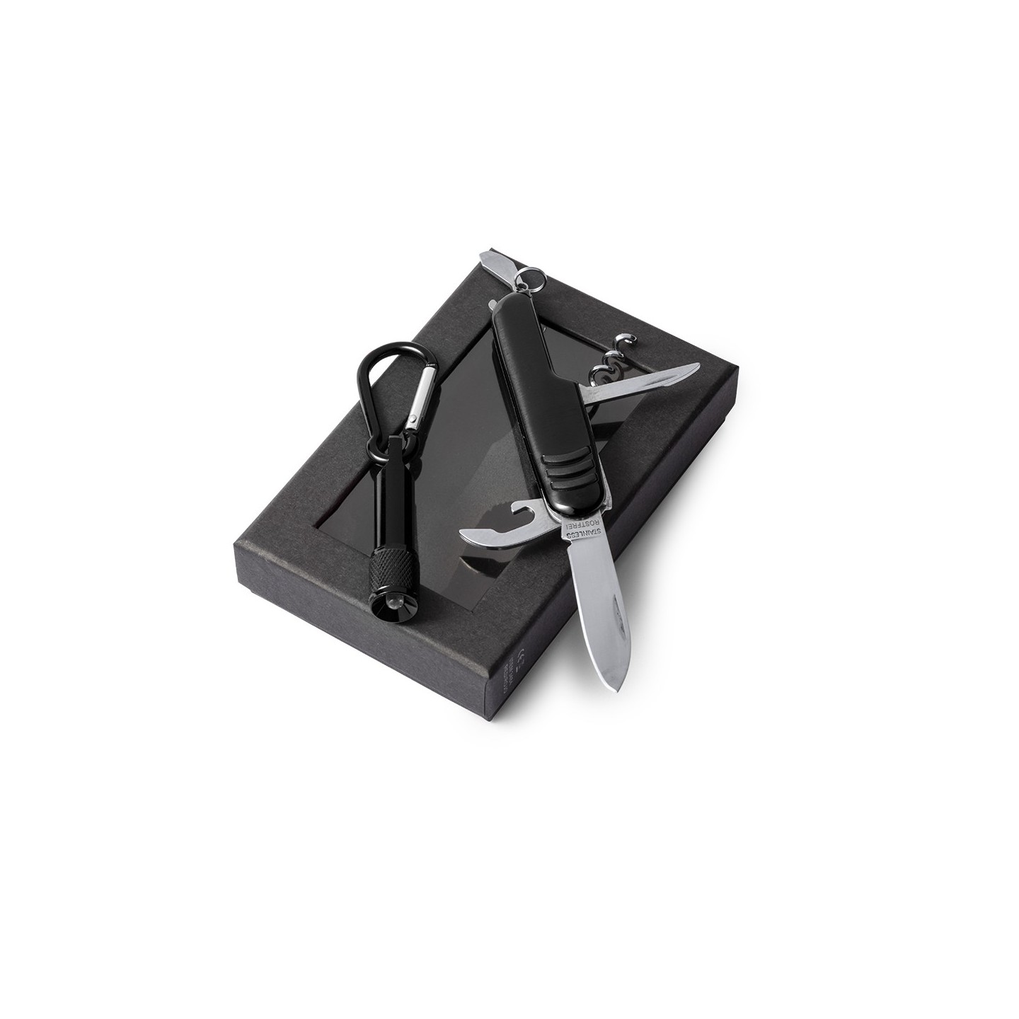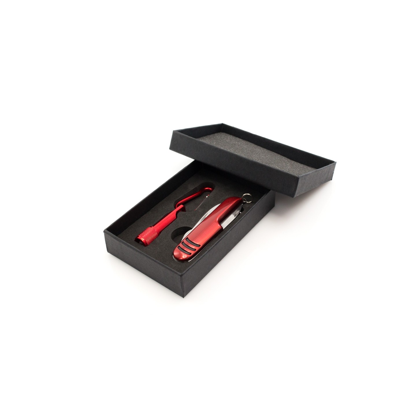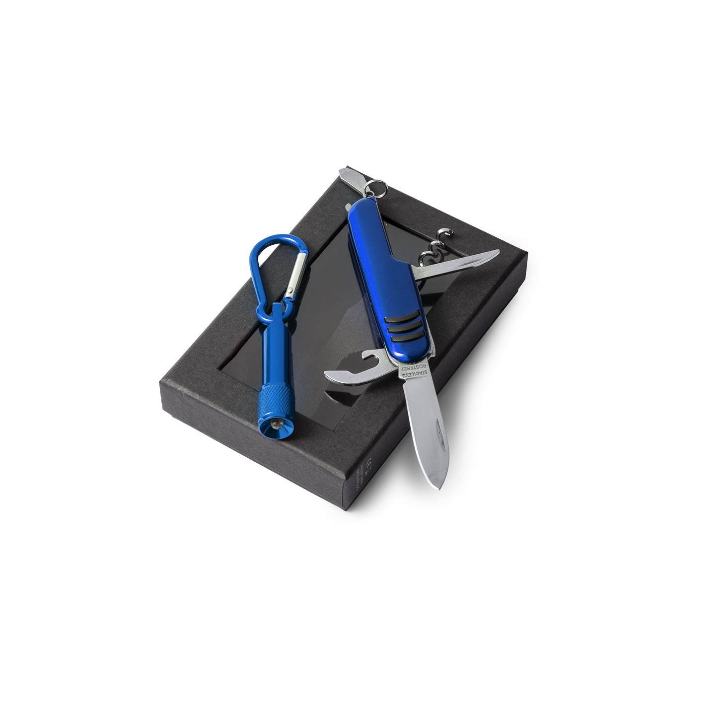 Descubre el Set Sufli, el compañero perfecto para tus aventuras al aire libre. Este set incluye una navaja multiusos de aluminio con 7 funciones, que te brinda la versatilidad necesaria en cualquier situación. Además, viene acompañada de una práctica linterna mosquetón para iluminar tu camino.