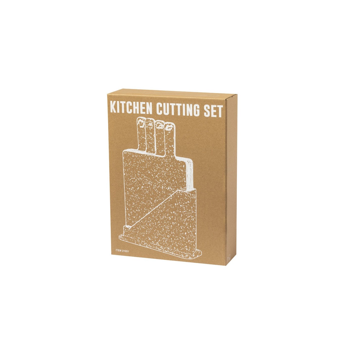 Este set de tablas está fabricado en resistente PP, lo que garantiza durabilidad y facilidad de limpieza. Incluye cuatro tablas con un soporte para un almacenamiento ordenado, lo que facilita su acceso y organización en la cocina.