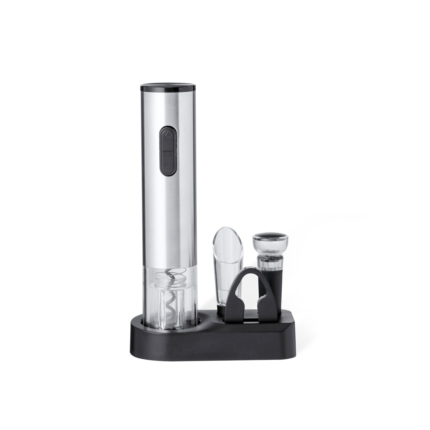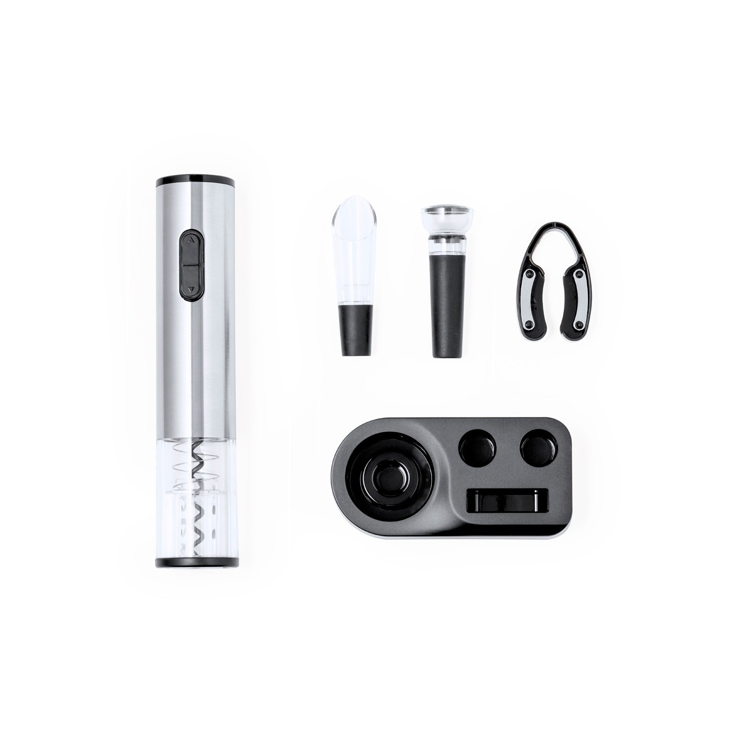 El Set Vinos Magnar es completo y elegante, con sacacorchos eléctrico, decantador, tapón y cortacápsulas. Ideal para regalos personalizados.