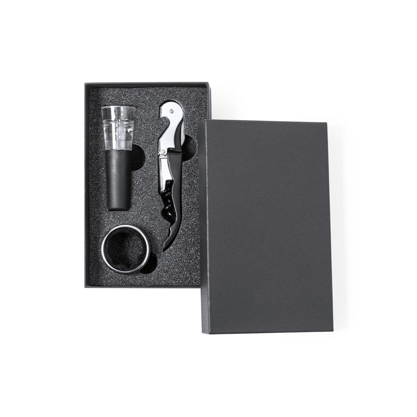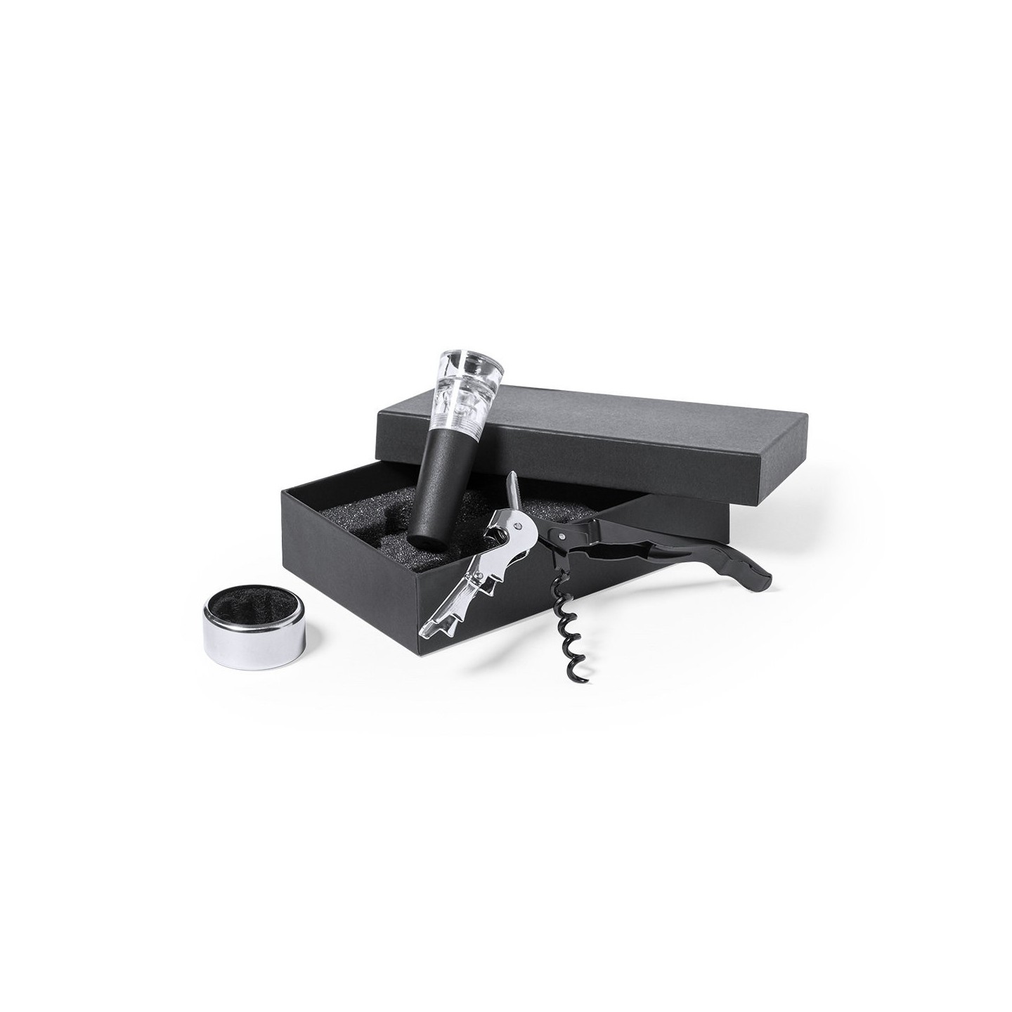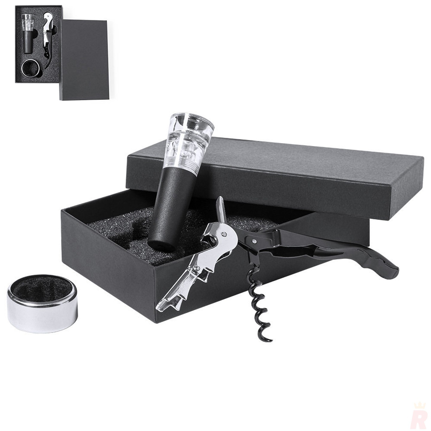 Set de vinos elegante y completo, con accesorios de alta calidad. Perfecto regalo para los amantes del vino.